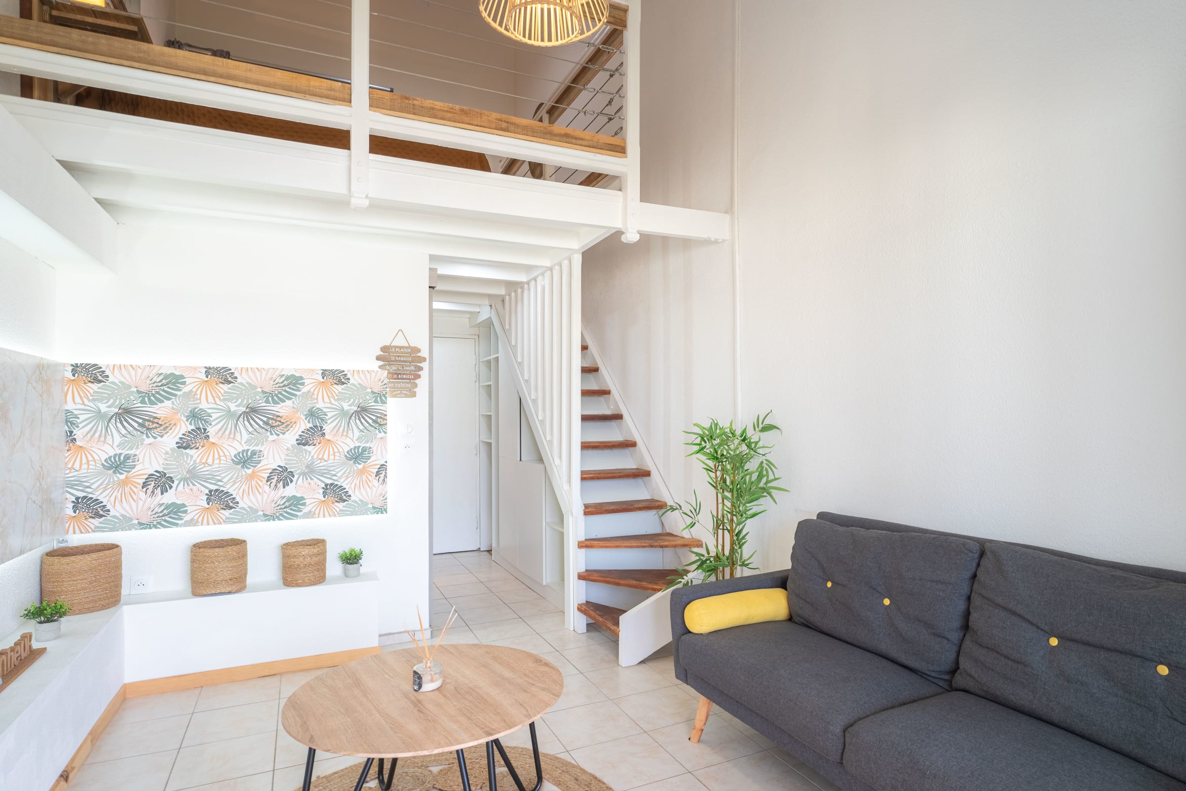 Nestled on the second floor of a secure residence in the heart of Saint-François. This elegant 32 m2 2-room apartment offers an air-conditioned bedroom with a comfortable 160 cm bed, and the possibility of accommodating two additional people on the sofa bed in the living room. A beautiful bathroom, a fully equipped kitchen and a TV corner ensure a comfortable stay. Enjoy a small view of the port and marina from the balcony, ideal for sunny breakfasts.