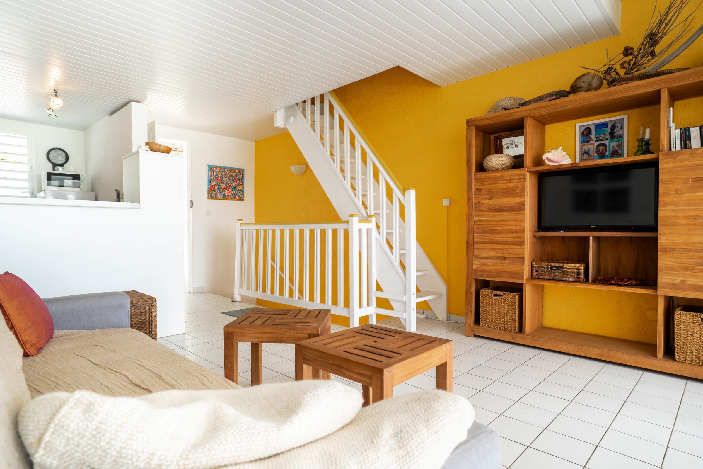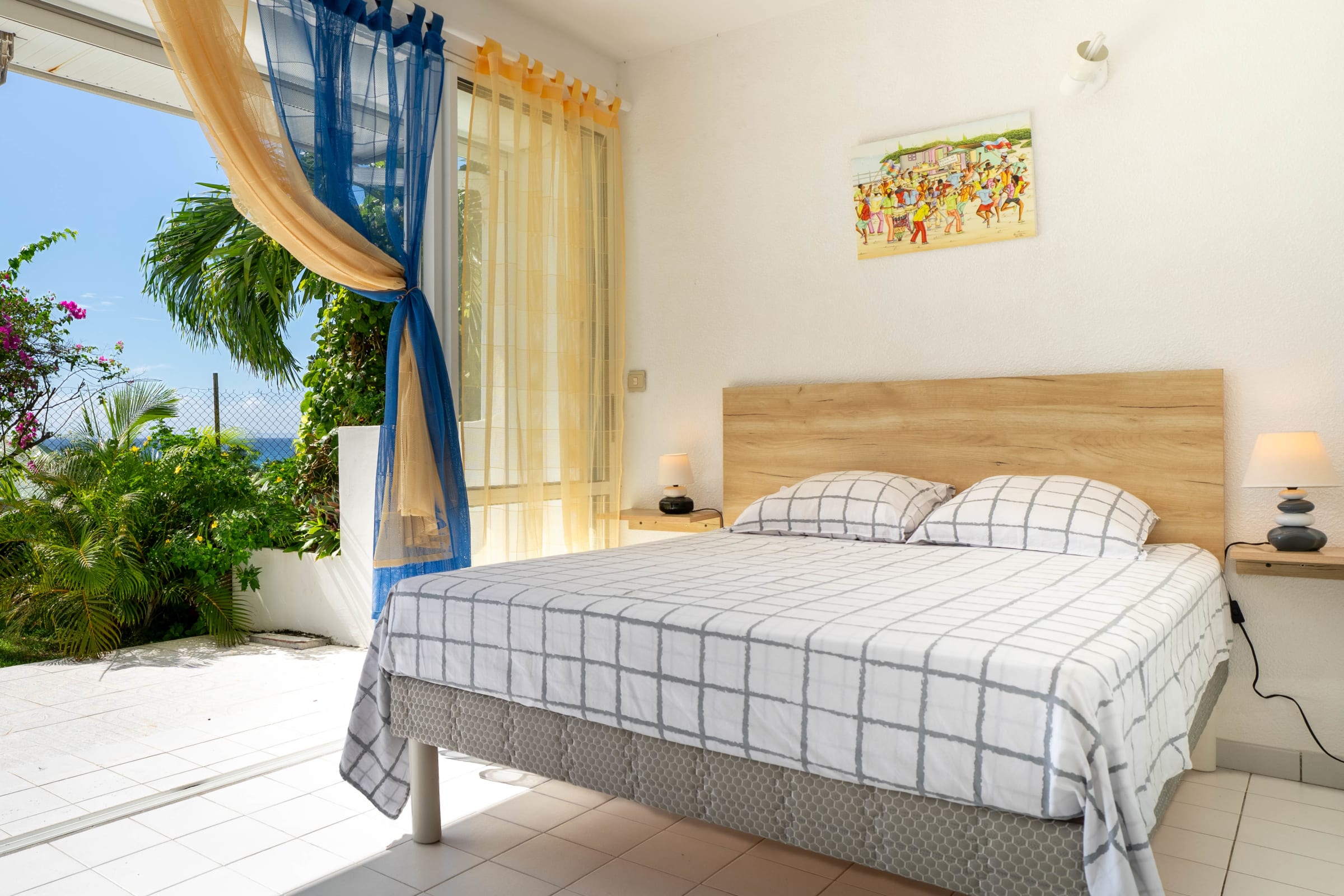 A 70m2 cocoon. With 2 air-conditioned bedrooms, one of which is on the mezzanine, a fully equipped kitchen and a terrace offering a breathtaking view of the sea, this space offers a unique and cosy experience. The colorful decor creates a warm, welcoming atmosphere. The terrace, ideal for a leisurely breakfast, offers direct access to a white sandy beach for unforgettable moments of relaxation.