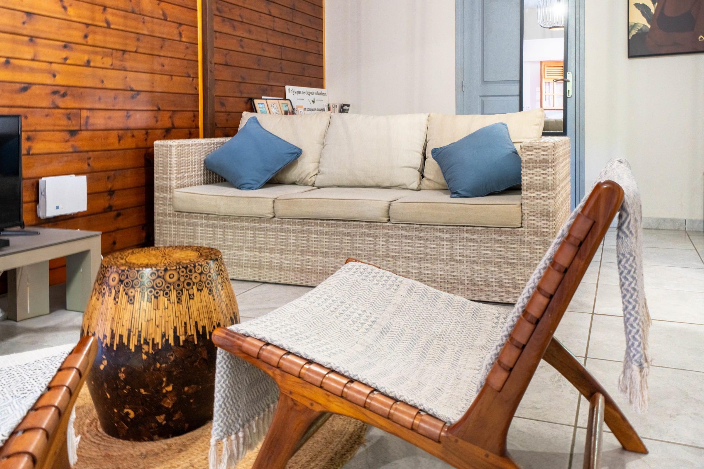 The functional and fully equipped kitchen will delight lovers of local cuisine. Oven, microwave, refrigerator, dishwasher: everything you need to cook with ease. The bright living room invites you to relax after a day at the beach, while the outdoor terrace allows you to enjoy your meals in the open air. You can also enjoy a pleasant communal swimming pool surrounded by a tropical garden, a real green oasis for your moments of rest. A charcoal barbecue is available for your convivial evenings with family or friends.