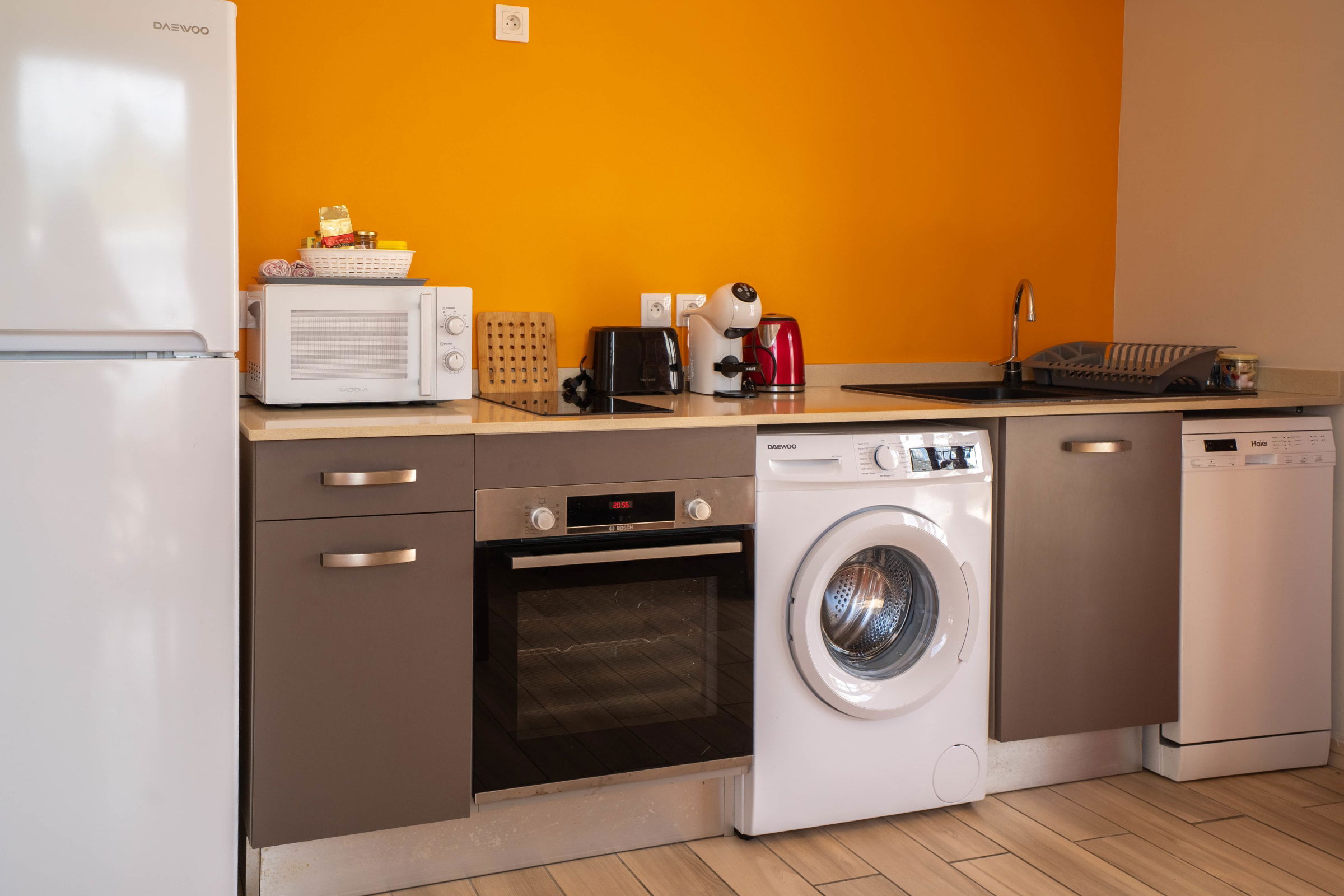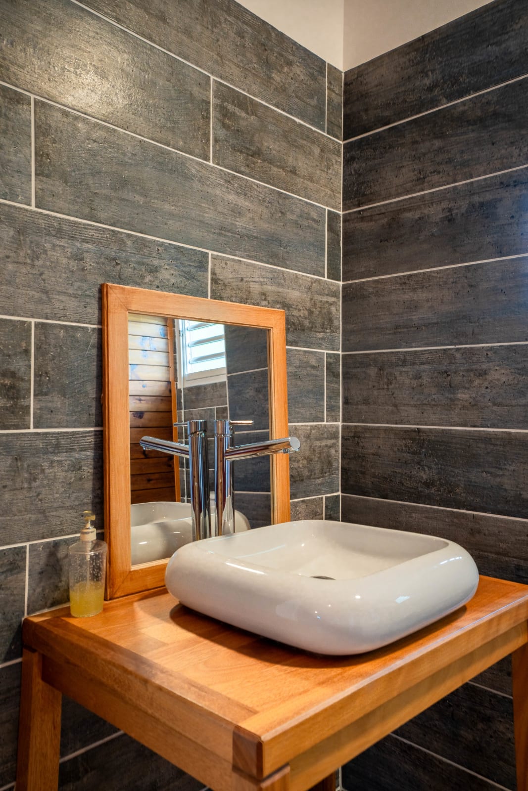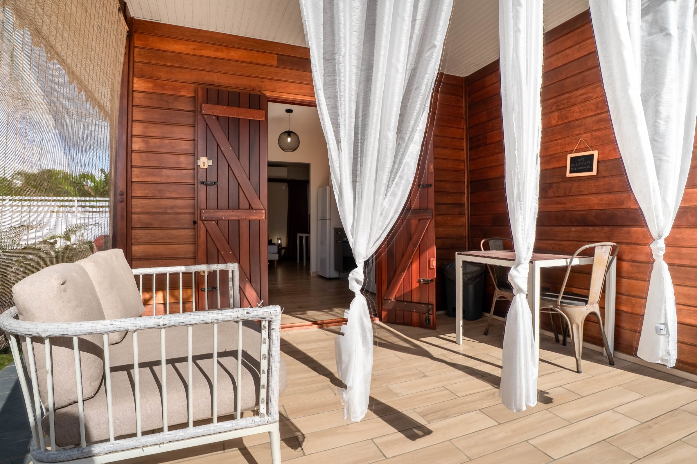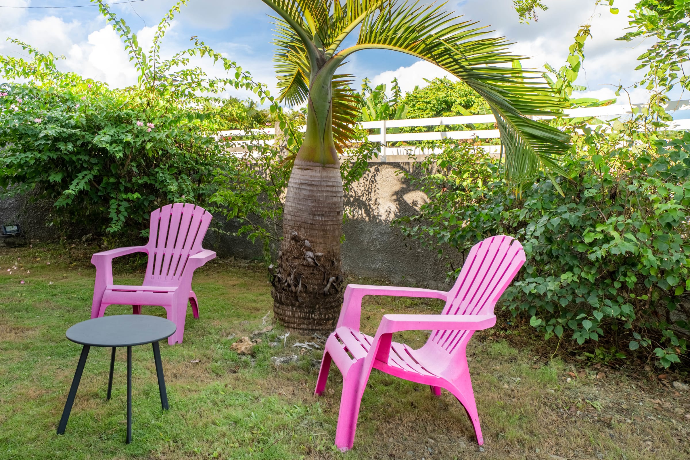 The light-filled living room opens onto a fully equipped kitchen: dishwasher, oven, microwave, fridge and everything you need to cook like at home. Enjoy your meals outside on the terrace, lulled by the sounds of the tropical garden. A charcoal barbecue is also available.