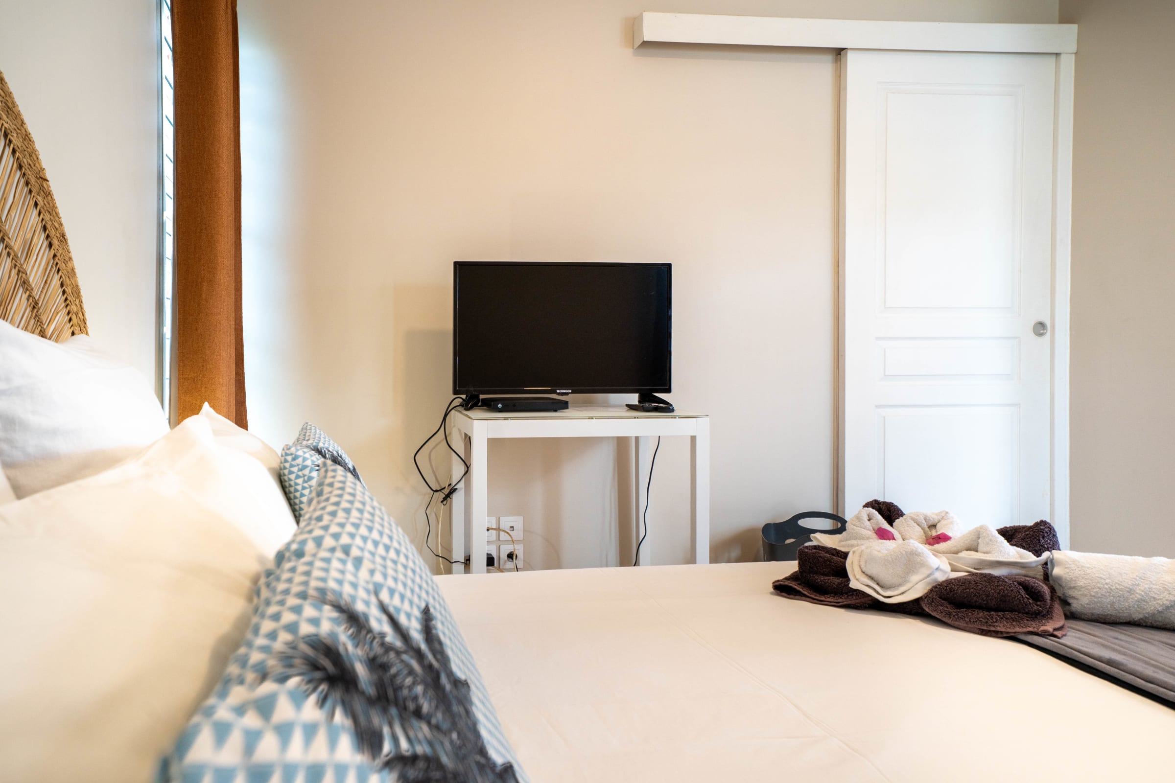 Fully air-conditioned and soundproofed, the accommodation offers a relaxing atmosphere, perfect for unwinding after a day at the beach. Relax in front of the flat-screen TV or enjoy the green surroundings for a moment of pure une conciergerie.