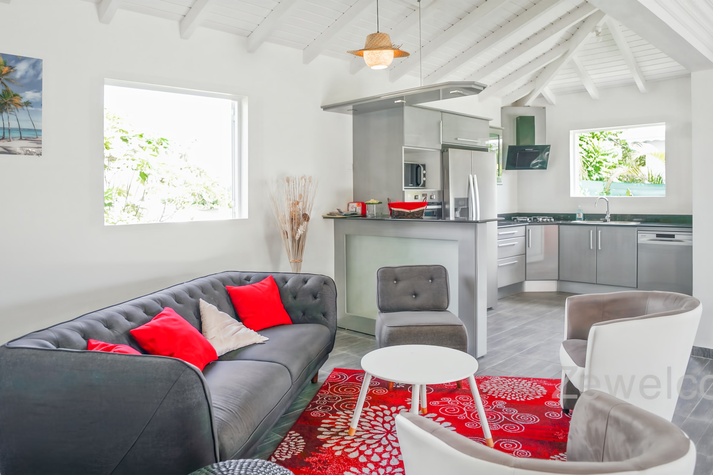 The villa is located in the commune of Saint-François, on the eastern part of Guadeloupe called Grande-Terre. At 45 minutes drive from Pointe-à-Pitre airport, it will take you less than 5 minutes to reach the town of Saint-François and find all the conveniences: shopping area, supermarket, bakery, pharmacy, fish and spice market.