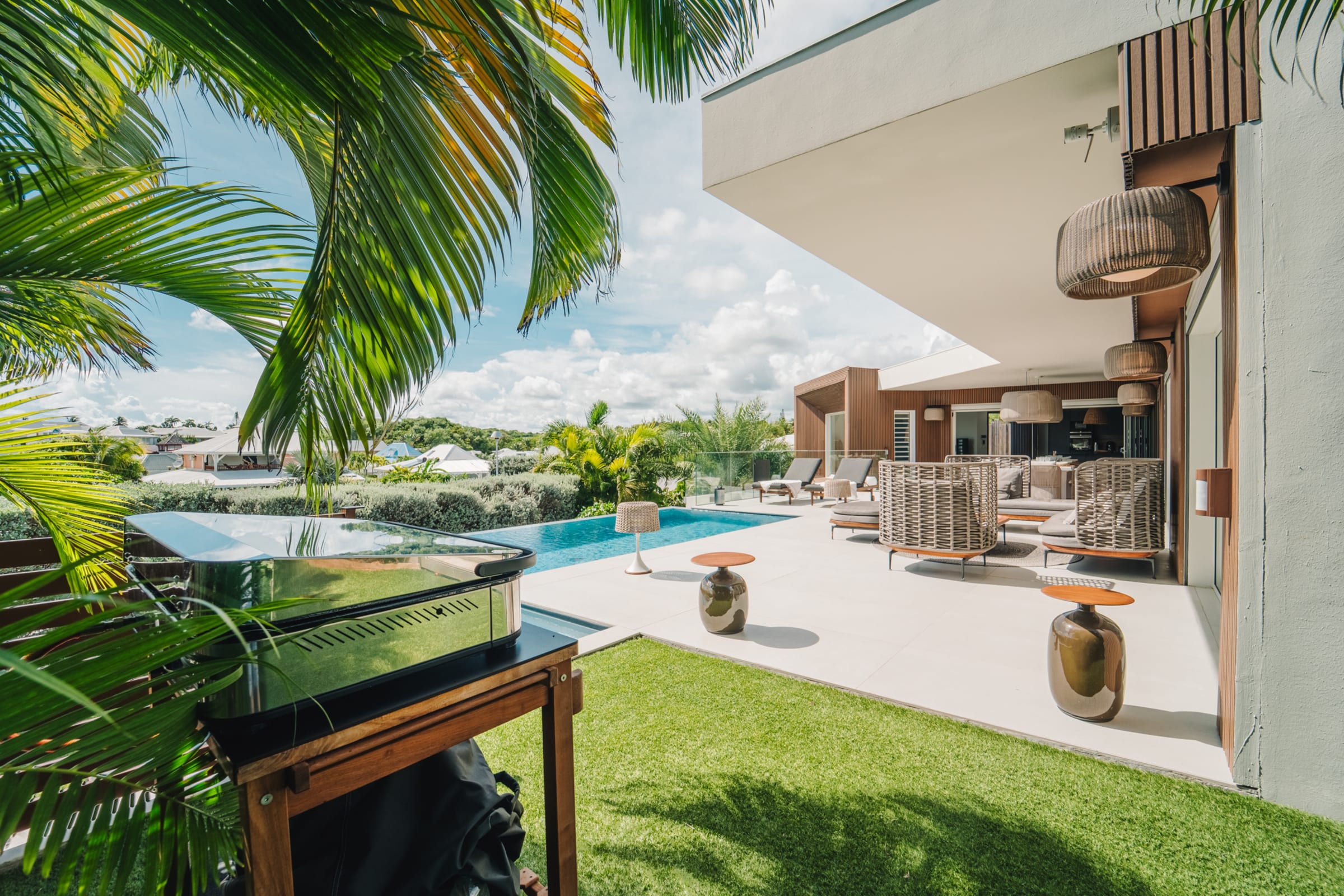 Located in Saint-François, just 100 meters from the beach, Villa Karamiso transports you into a world of chic, elegance, and refinement. This carefully designed architect villa offers high-end amenities, tasteful decor, and optimal comfort. Perfect for a serene and relaxing stay.