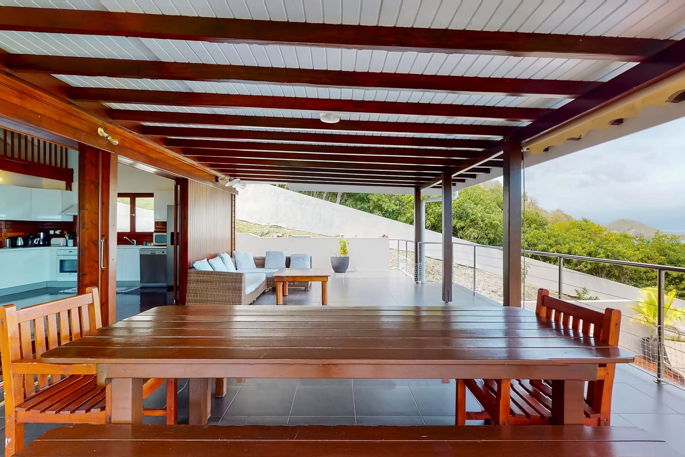 Welcome to Villa Mangouste, a peaceful haven perched on the hills of Terre-de-Haut. Overlooking the crystal-clear waters of Les Saintes, this villa is designed for those seeking both luxury and tranquility. With 240 m² of living space, it comfortably accommodates up to 8 guests.