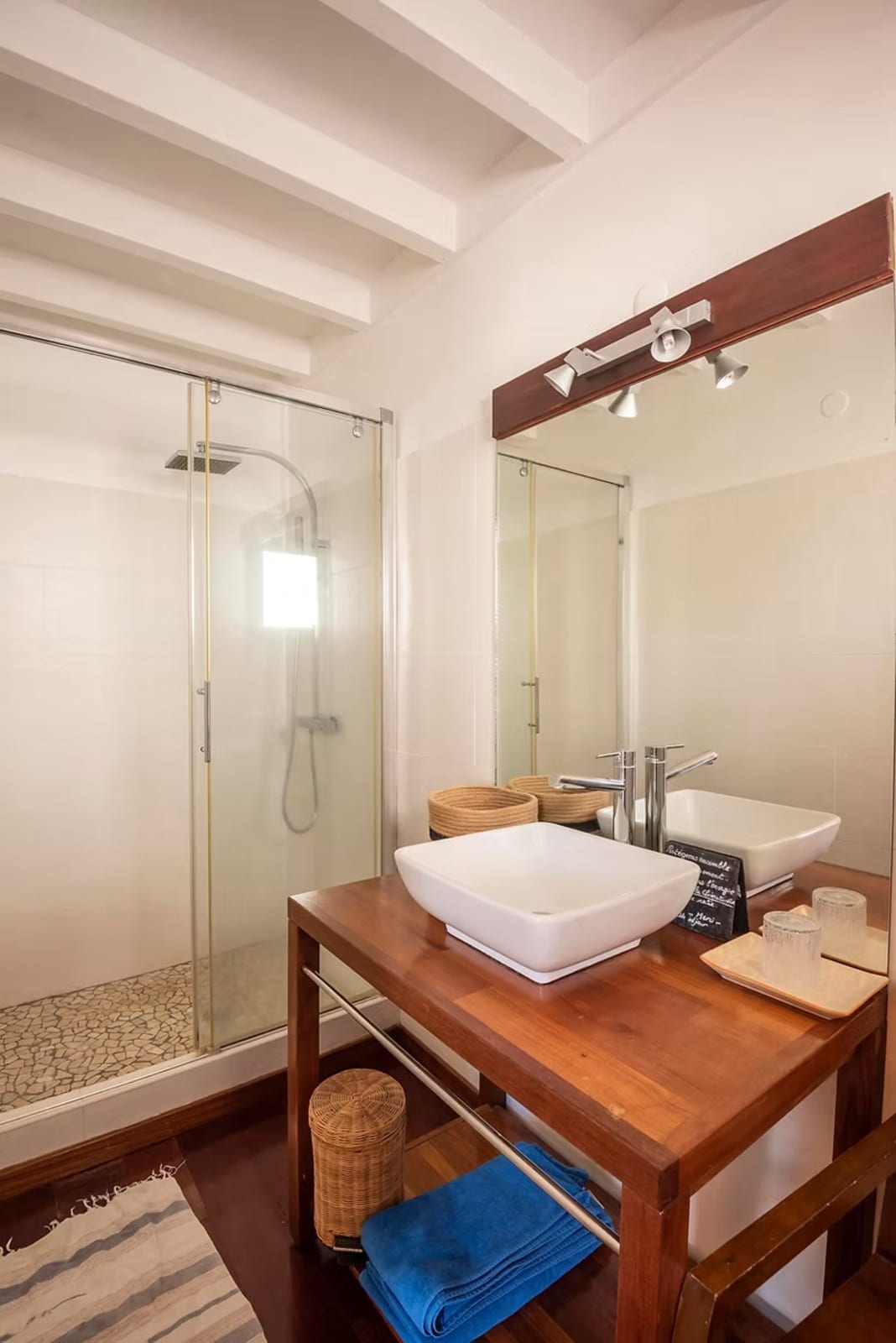 Each bedroom features a queen-size bed (160 × 200 cm) and air conditioning, ensuring peaceful nights. The villa offers four modern bathrooms, each equipped with a spacious shower for maximum comfort. At the heart of the house lies a bright, open kitchen, fully equipped with high-end appliances — perfect for turning every meal into a culinary experience.