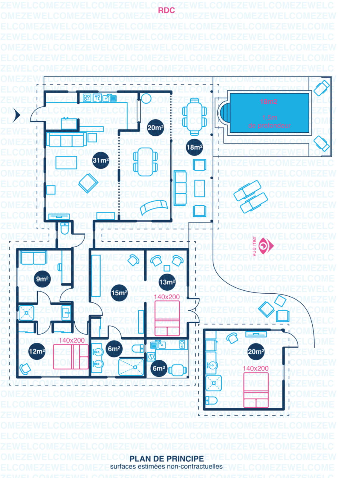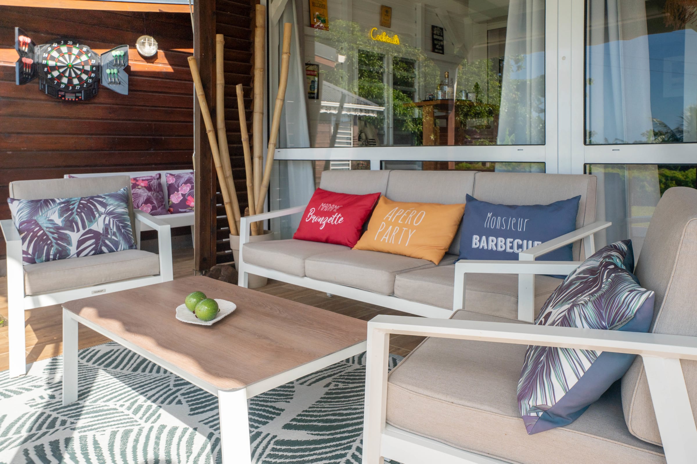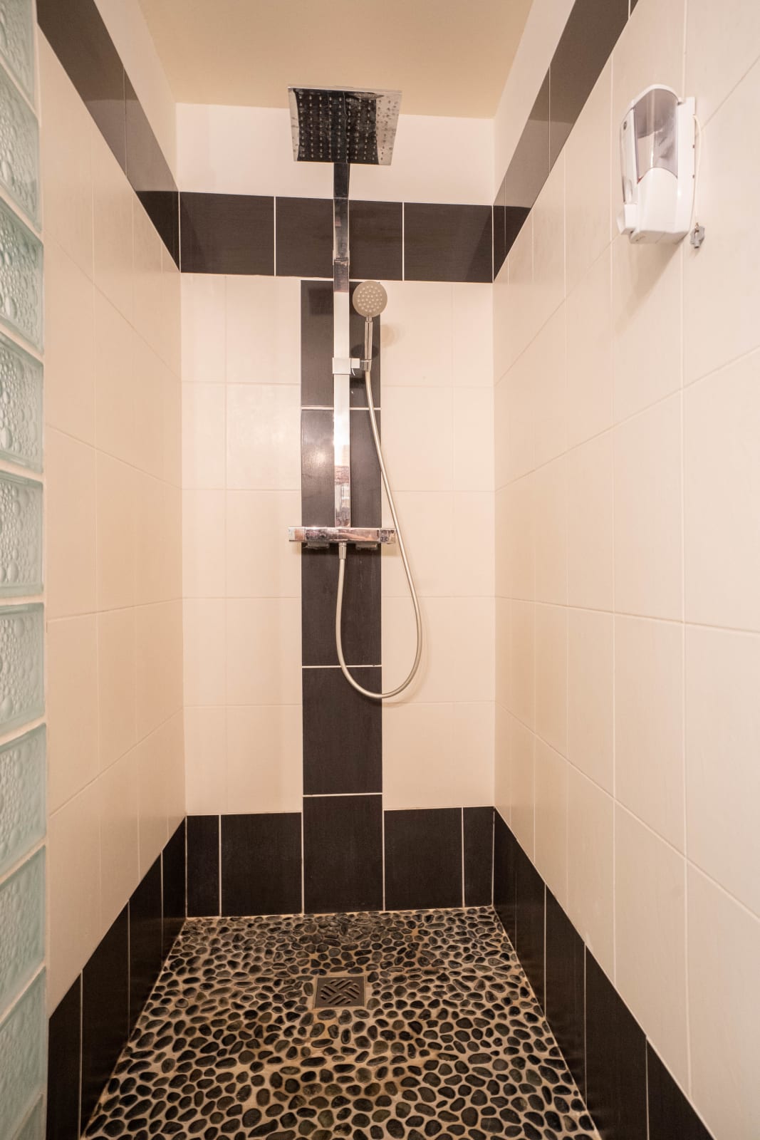 The kitchen is a real asset for food lovers: equipped with everything you need, including an oven, microwave, and even an ice machine, it encourages you to prepare delicious local dishes. A large, cozy living room, equipped with effective air conditioning and fans, ensures you can enjoy moments of togetherness in complete comfort.