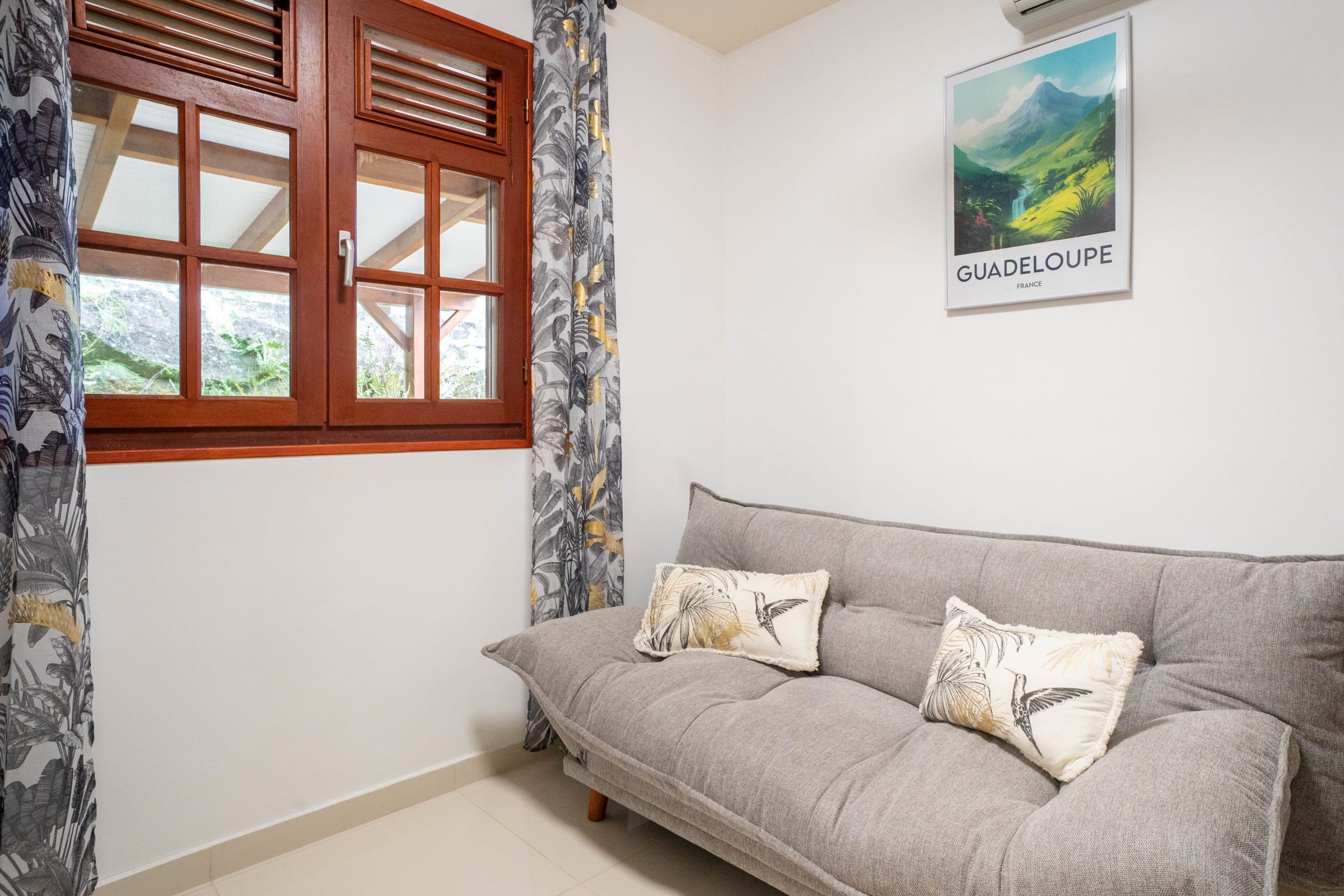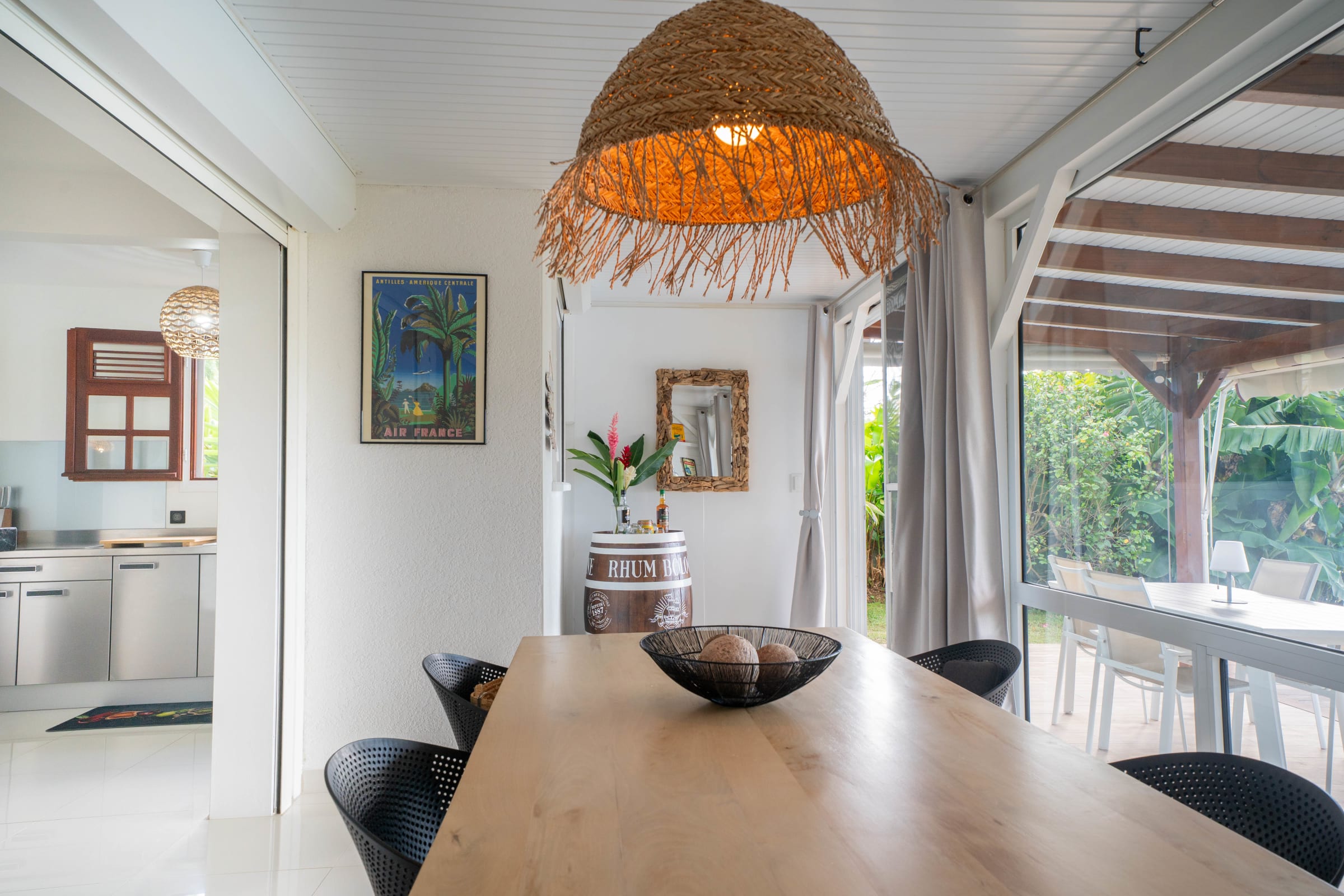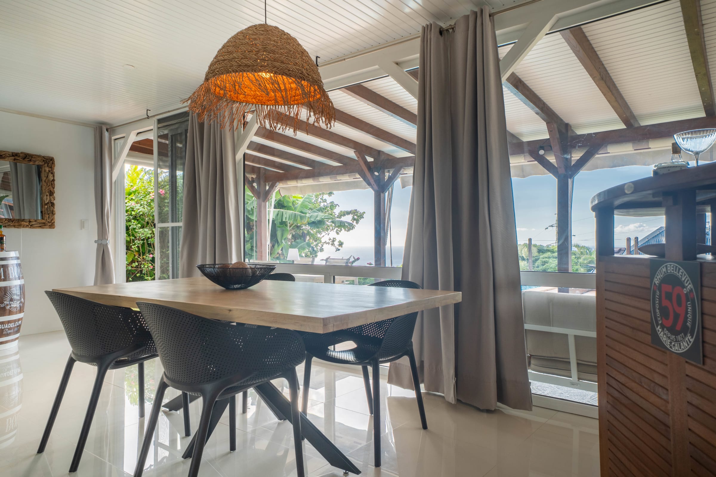 Welcome to Villa Le Nid des Colibris, a charming retreat nestled in the heart of Guadeloupe's natural surroundings. This haven of une conciergerie offers 130 m² of Caribbean comfort. The villa has two bedrooms, each equipped with a 140 cm bed. Both rooms have air conditioning located in the adjoining open-plan rooms. The third bedroom is located in a small bungalow next door, also equipped with a 140cm bed and air conditioning.