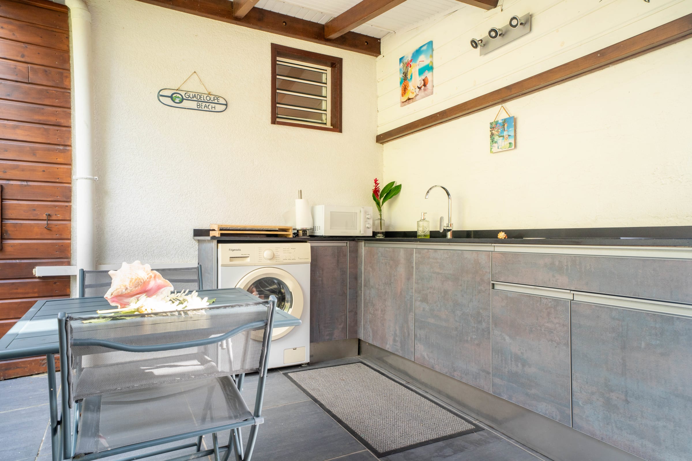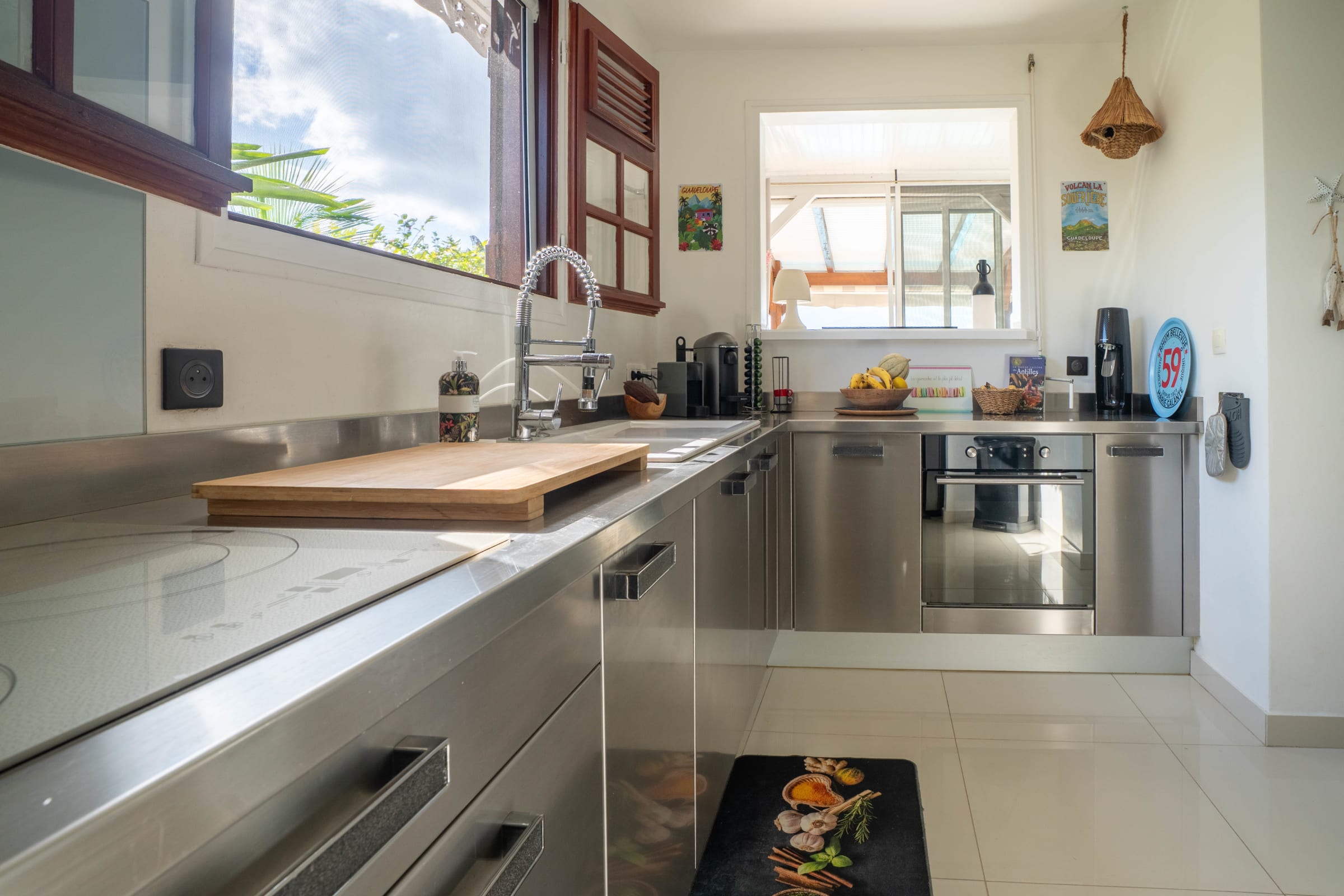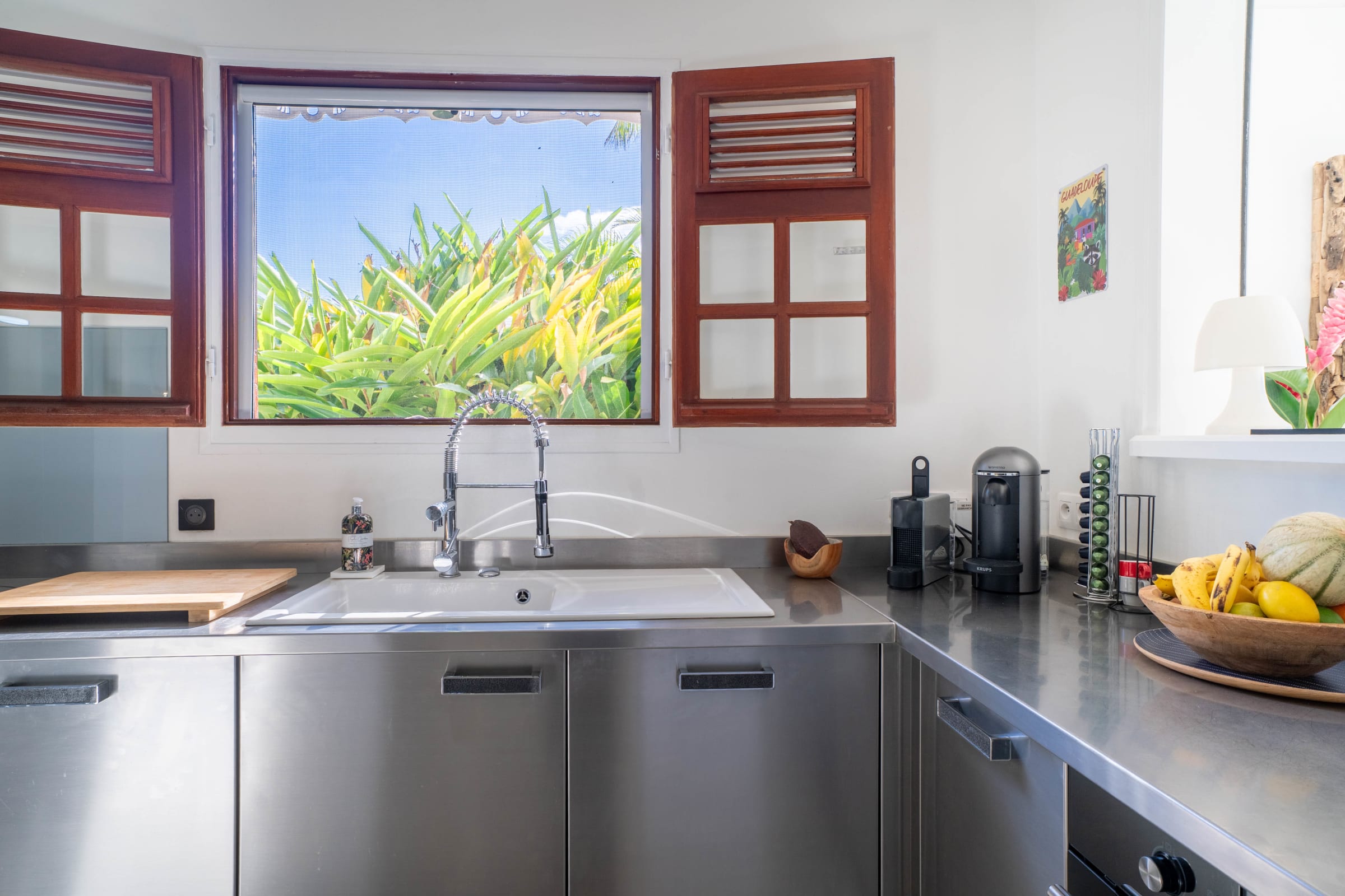 Welcome to Villa Le Nid des Colibris, a charming retreat nestled in the heart of Guadeloupe's natural surroundings. This haven of une conciergerie offers 130 m² of Caribbean comfort. The villa has two bedrooms, each equipped with a 140 cm bed. Both rooms have air conditioning located in the adjoining open-plan rooms. The third bedroom is located in a small bungalow next door, also equipped with a 140cm bed and air conditioning.