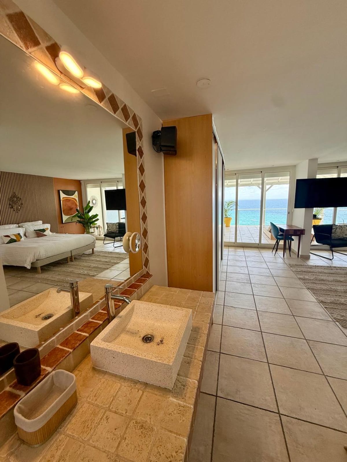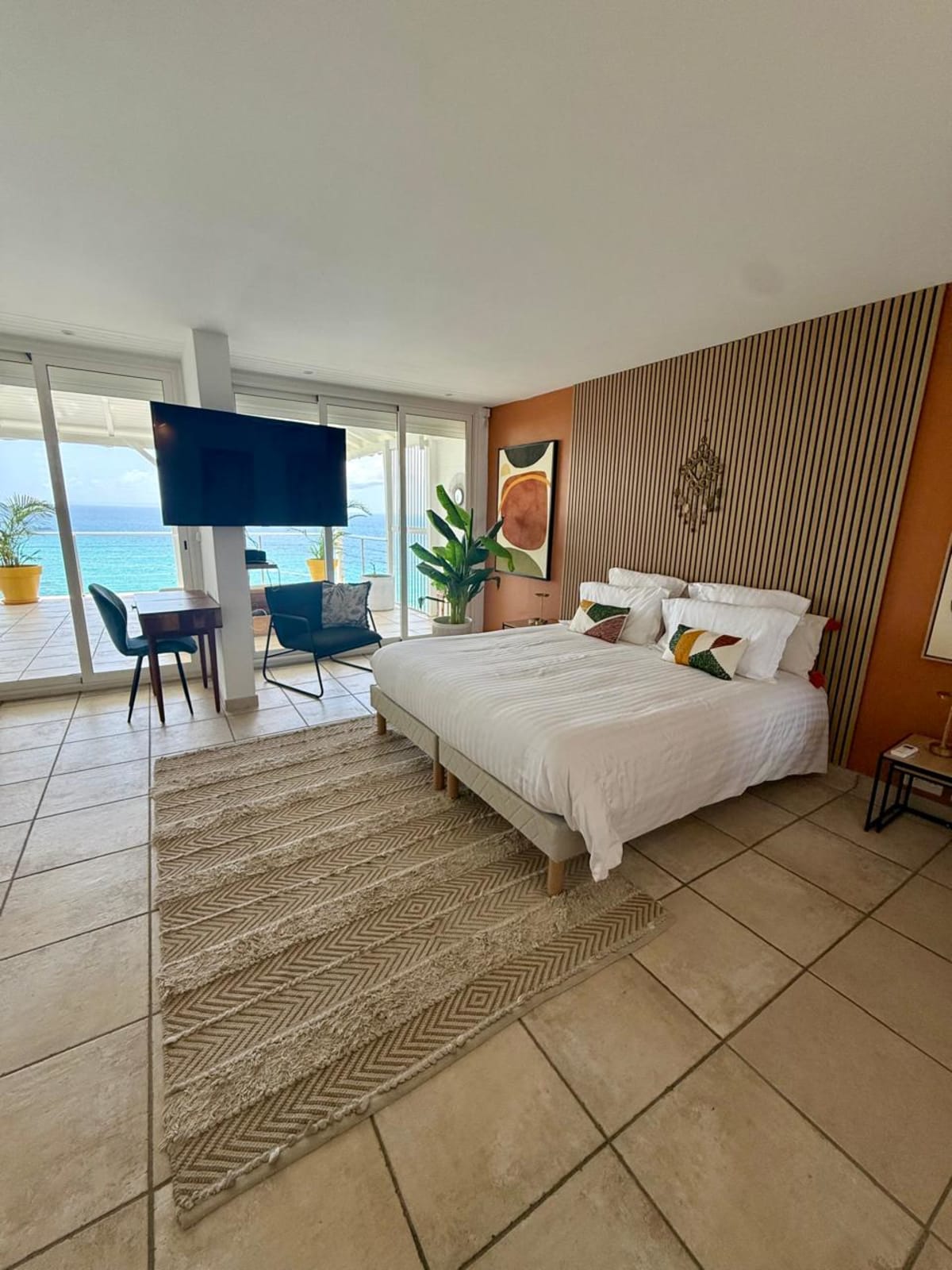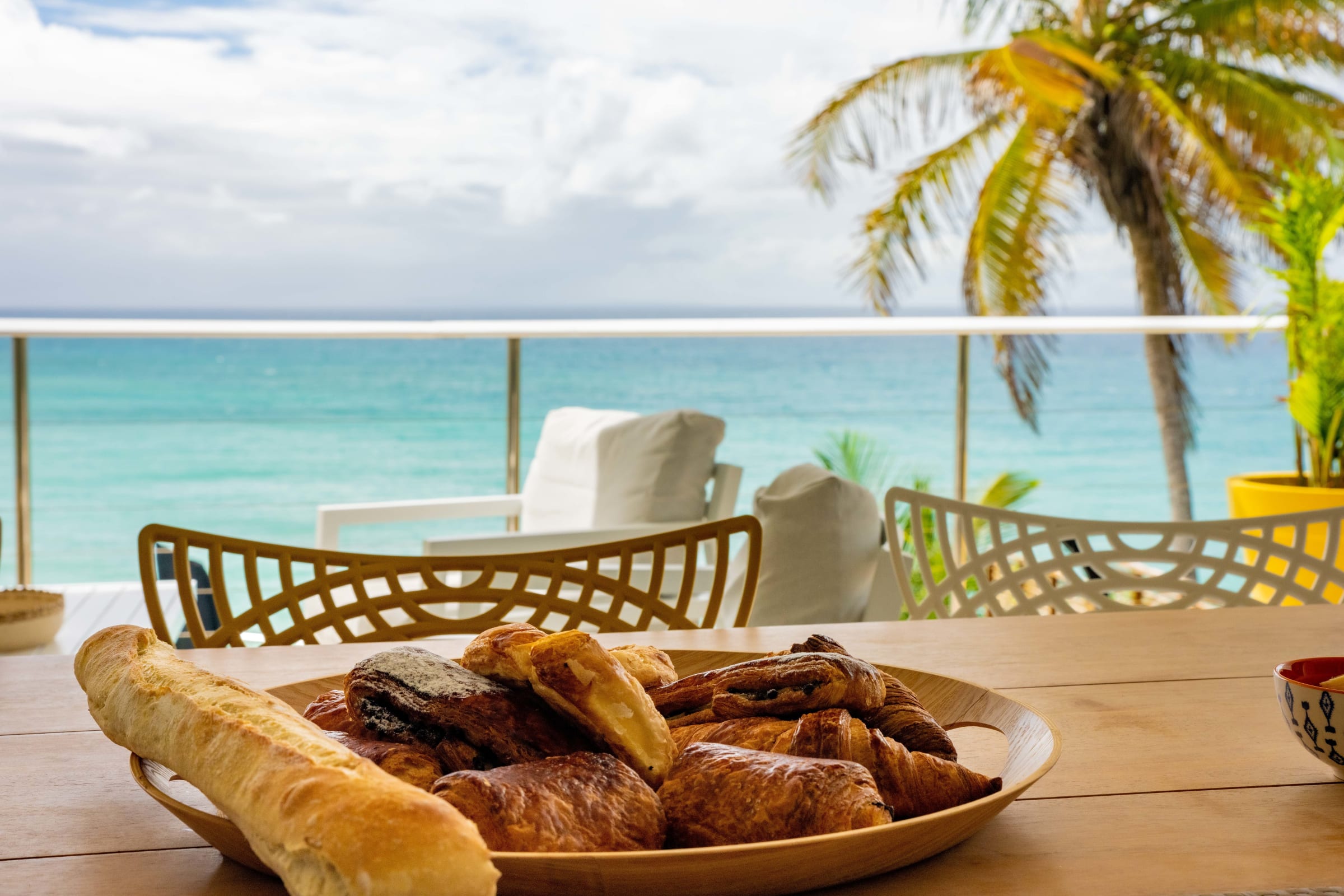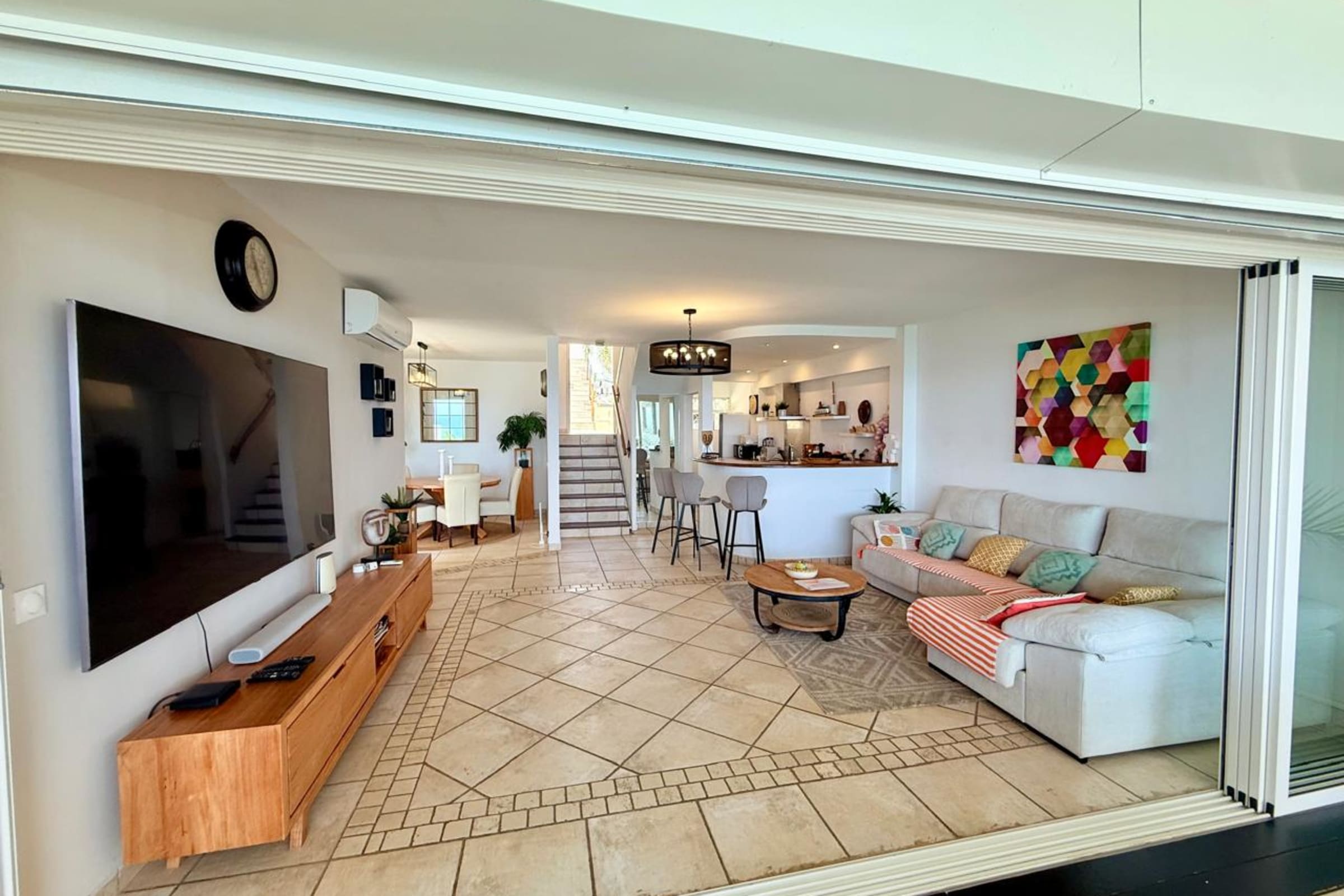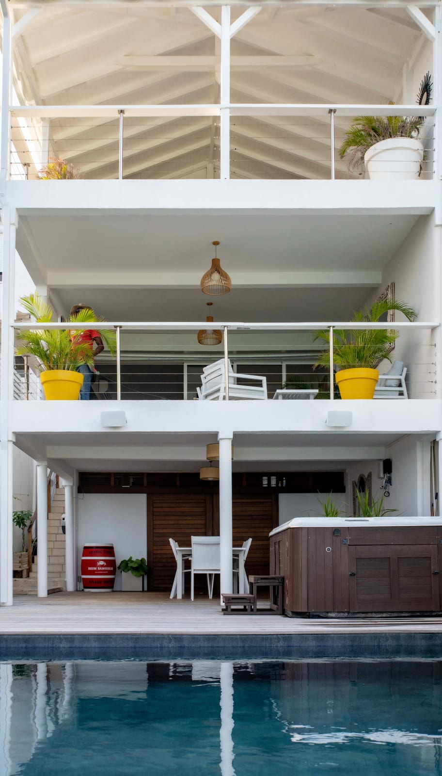 Perched atop a cliff, the villa offers a breathtaking view of the sea, Basse Terre, Marie-Galante, and even Dominica when the sky is clear.