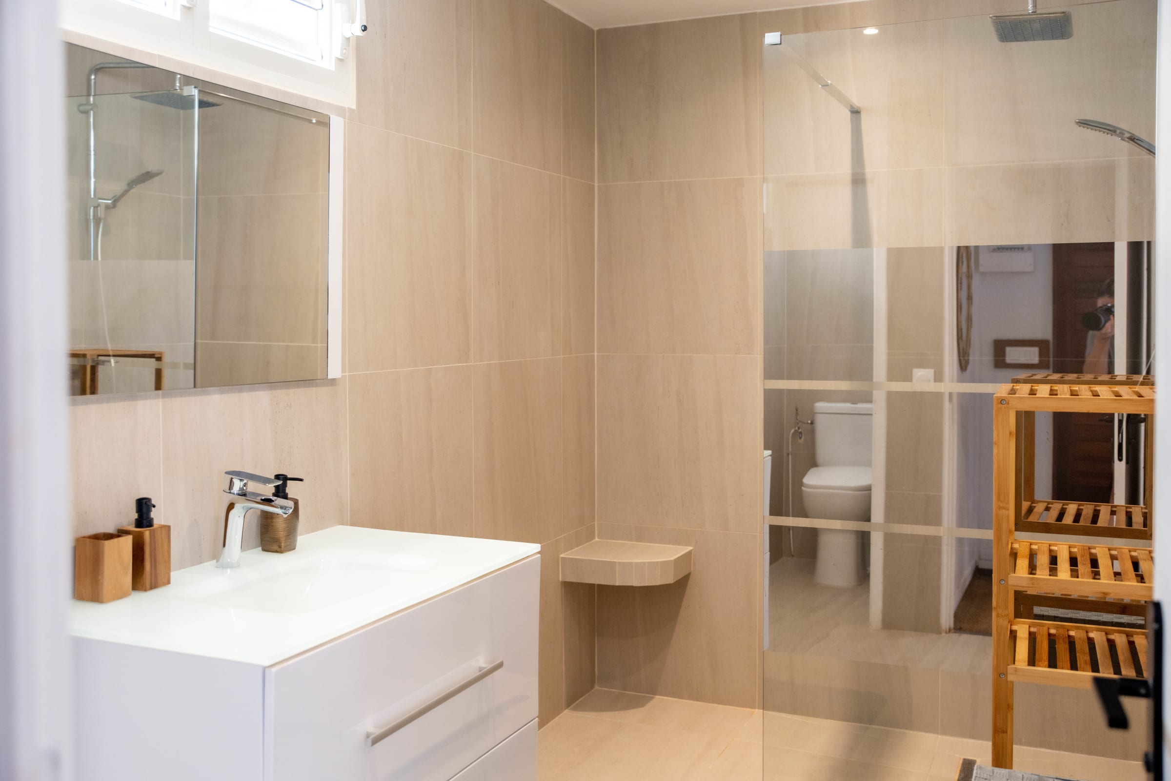 The pool level is accessible by an outdoor staircase from the living area. On this lower level, there is a fourth bedroom with an en-suite bathroom. This room faces the jacuzzi, the pool, and its sunbathing area suspended over the cliff.