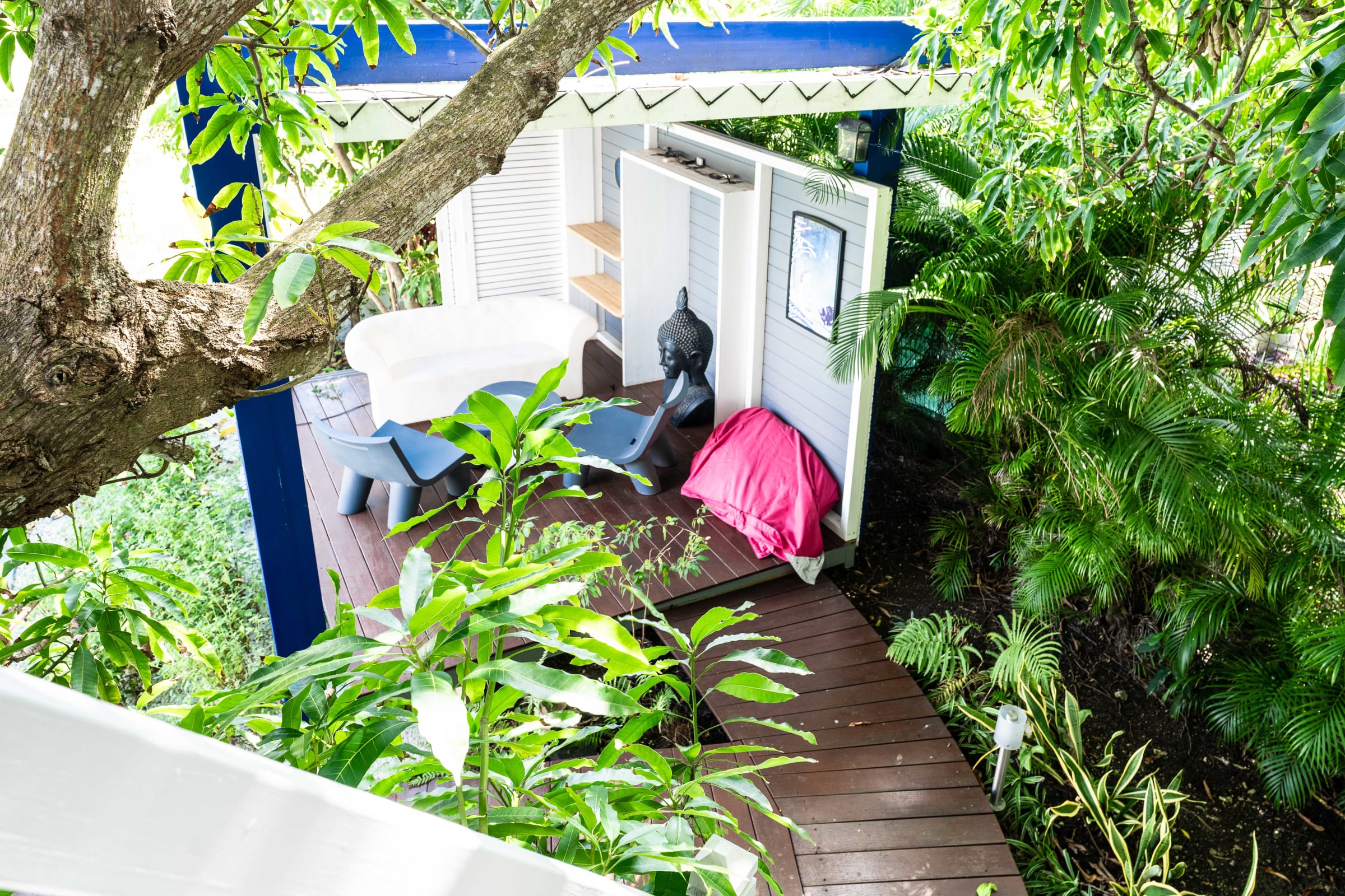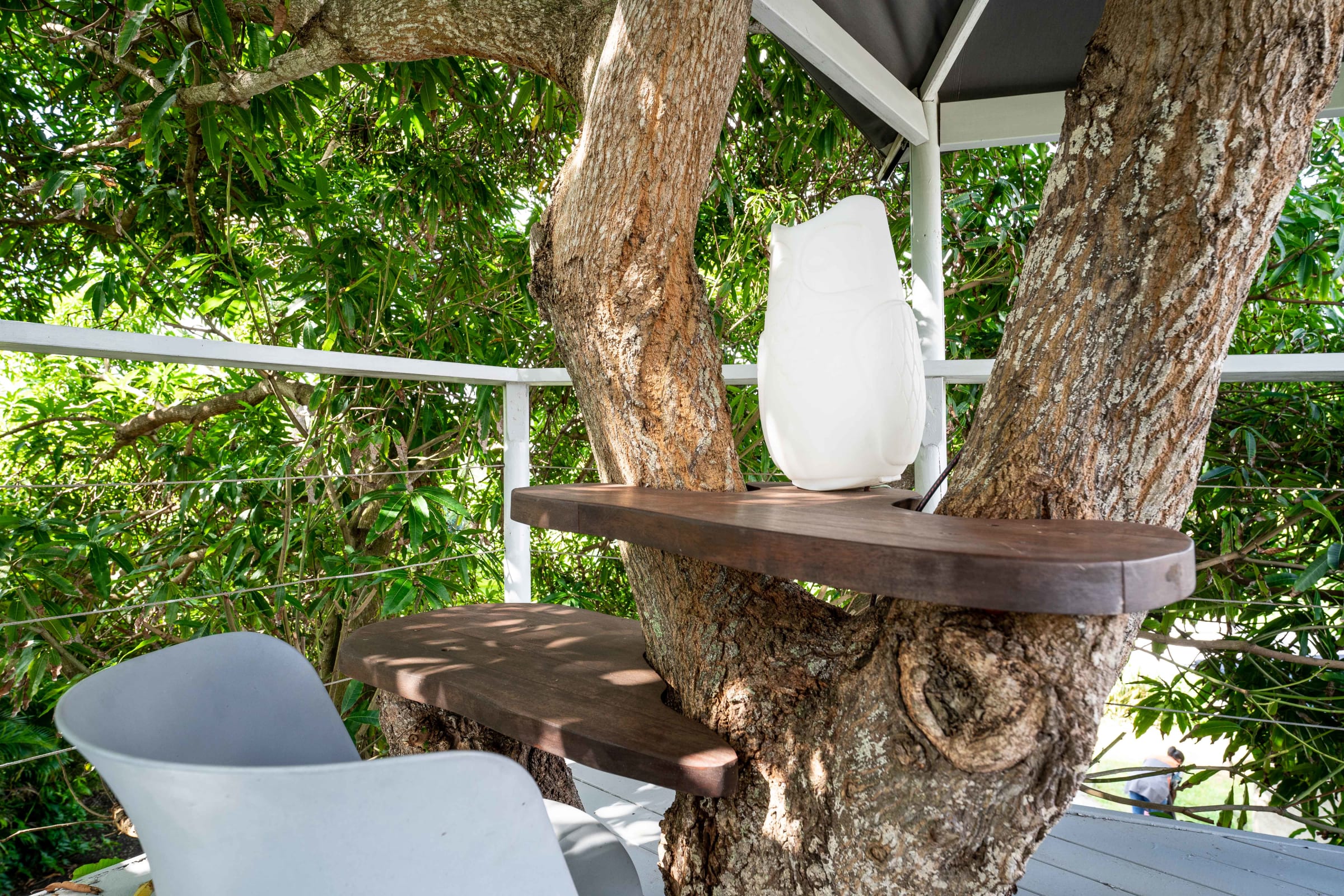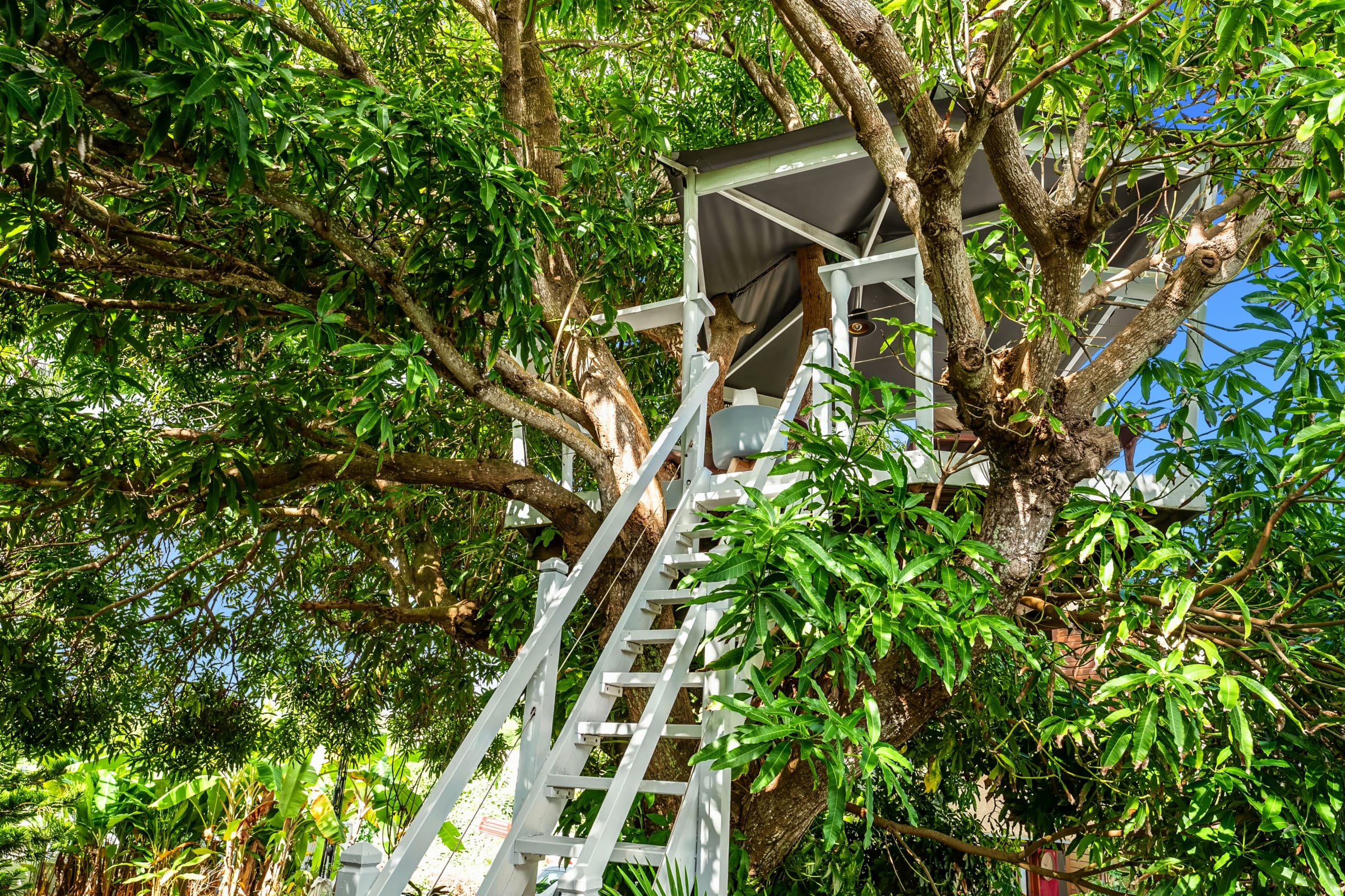 A pretty cabin in a magnificent mango tree with a bed and a small desk, ideal for a nap or to write your next novel.