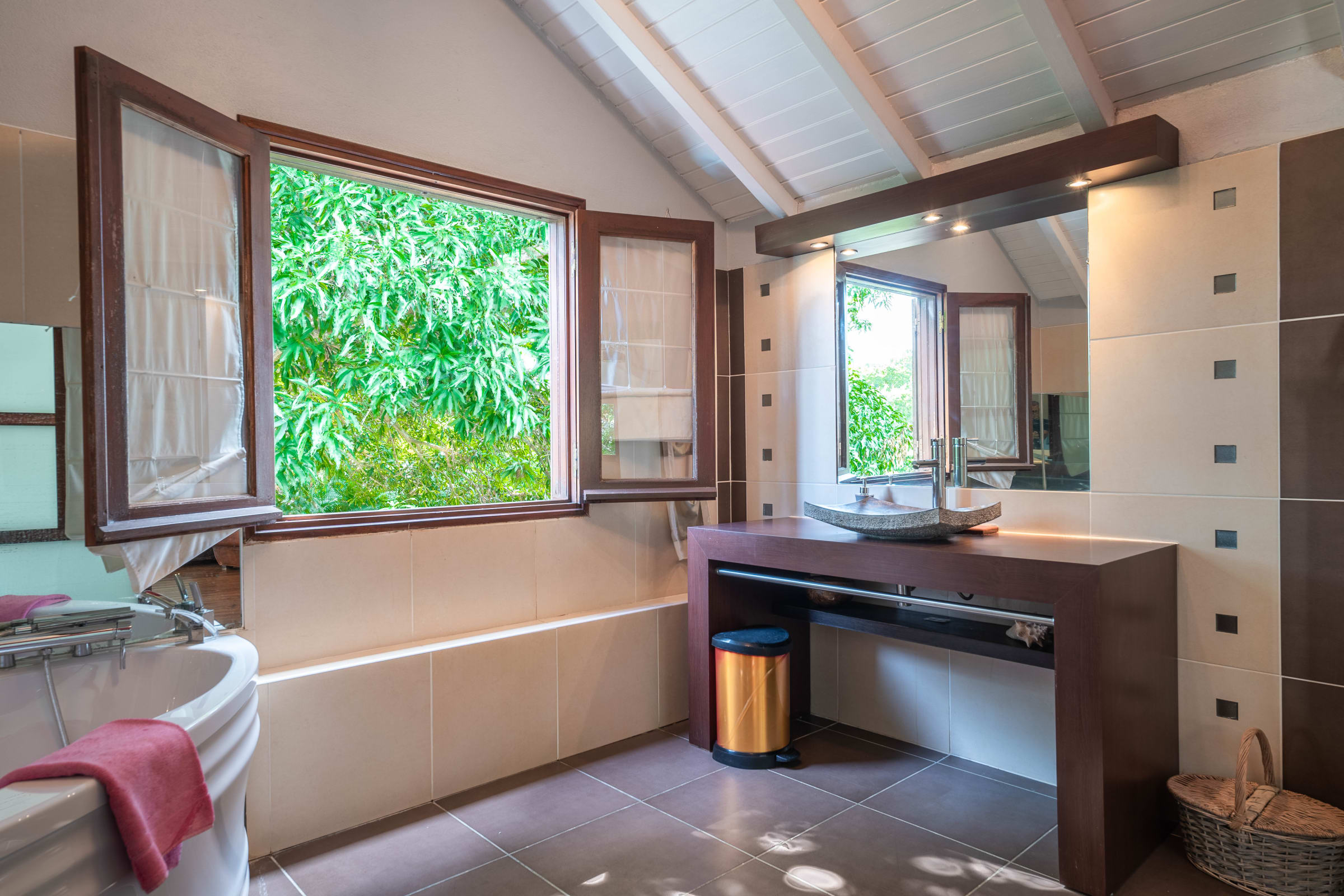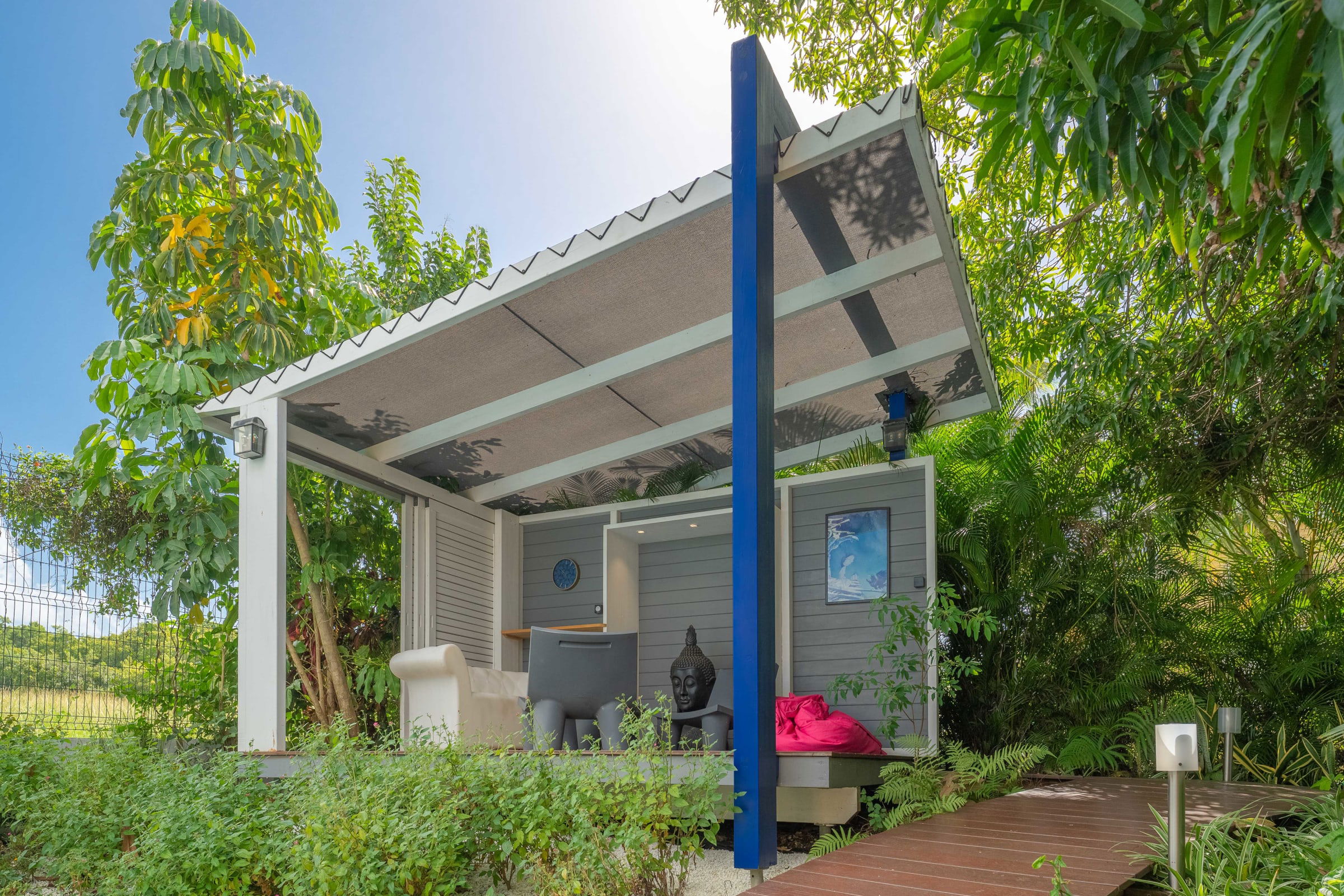 Located in Gosier, in a residential area, less than 10 minutes walk from the beach, Villa Manguier welcomes you in its unique and original universe, the luxury of a hut in a Mango tree, two cabins around the pool in the middle of a beautiful tropical garden.
