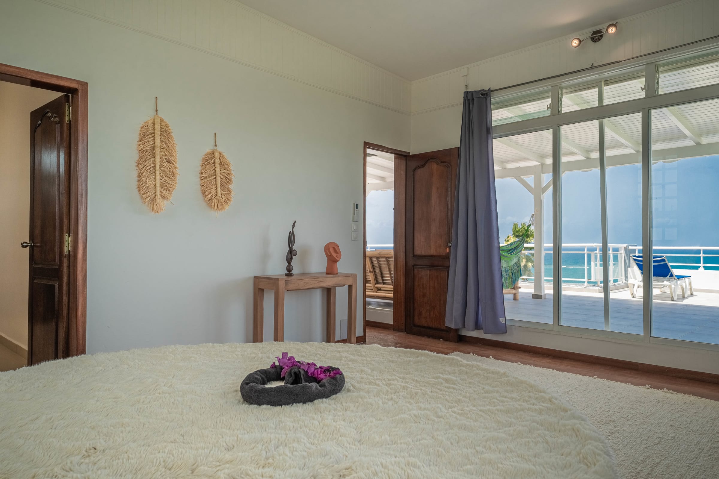 Discover Villa Caimite, a charming 70's villa set in 5000 m2 of grounds planted with tropical fruit trees. Offering incredible views over Marie Galante, La Dominique and Les Saintes, this haven of peace is the perfect place to watch the kitesurfers on Salines beach.