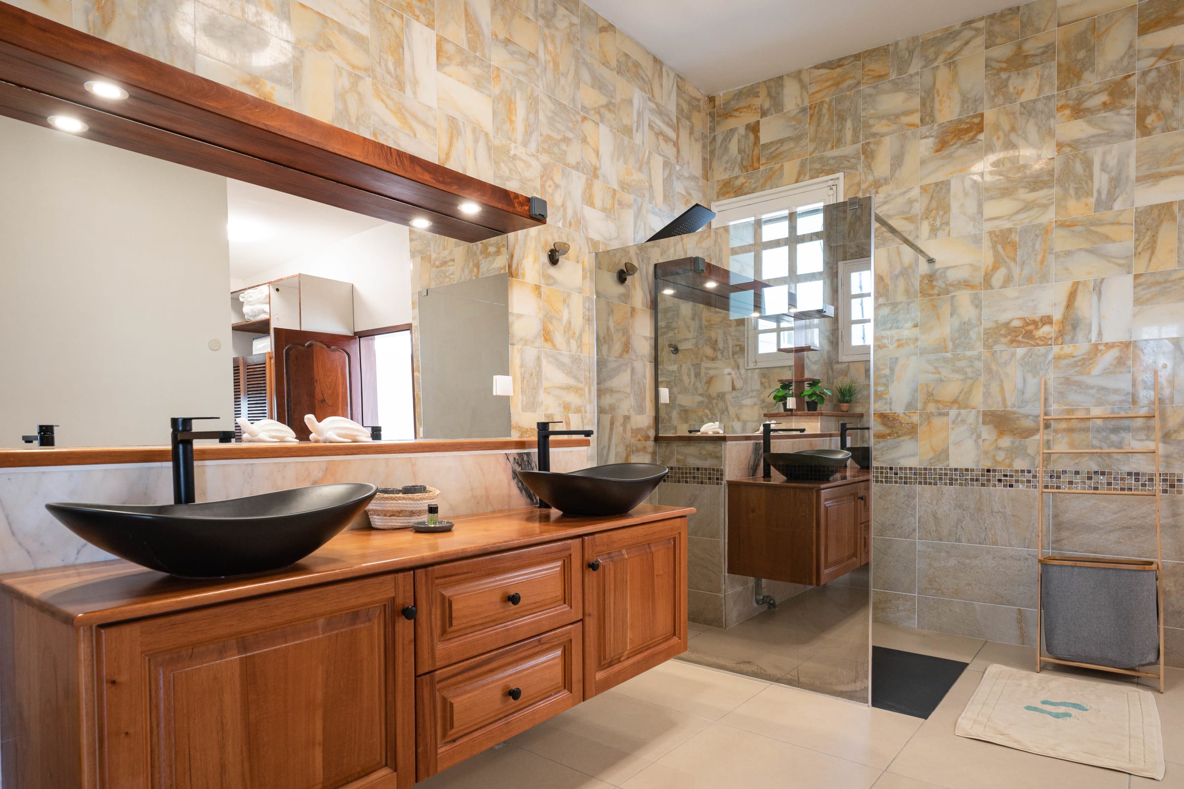 Villa Caimite offers 240 m2 of elegance on three levels, comfortably accommodating up to 8 people. Its four bedrooms are furnished with care: two 140 cm beds, one 160 cm bed and a spacious 2 rond bed await you for a restful night's sleep. Three modern, well-appointed bathrooms guarantee comfort and practicality, while four WCs ensure maximum privacy.