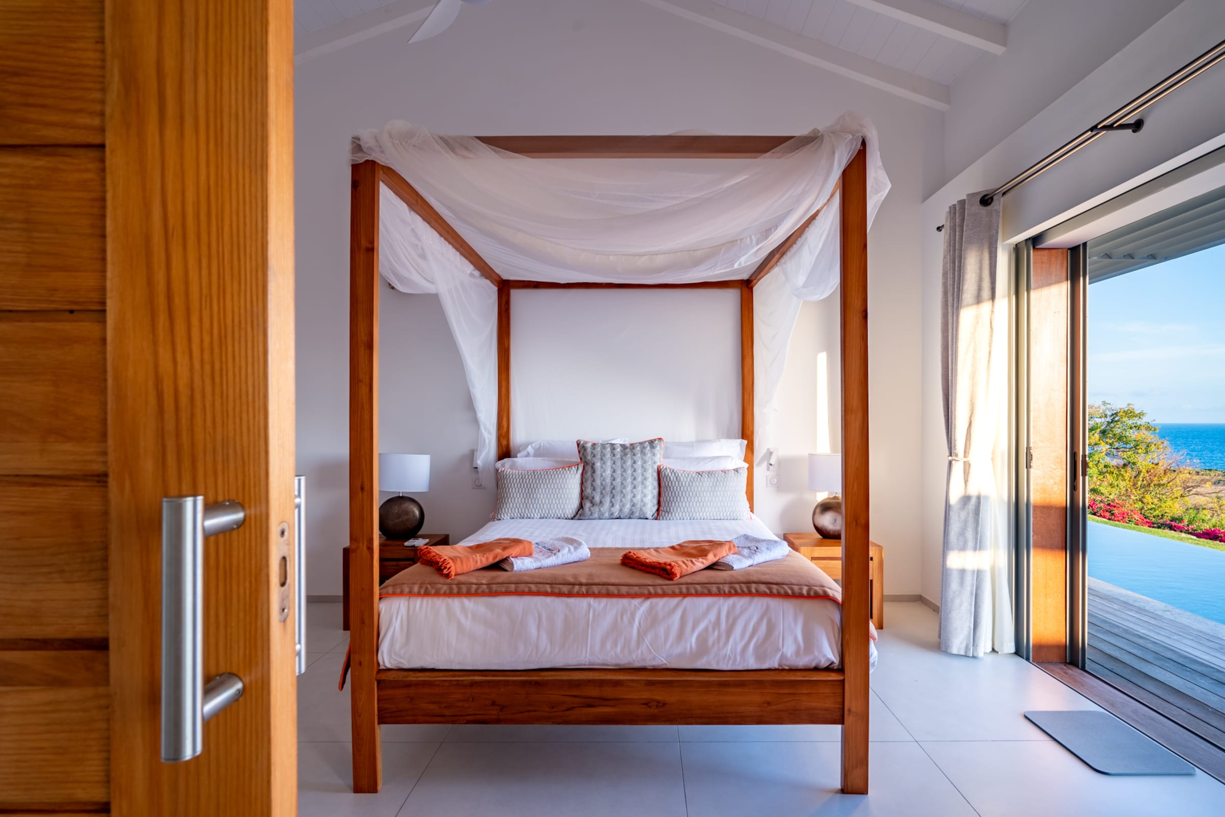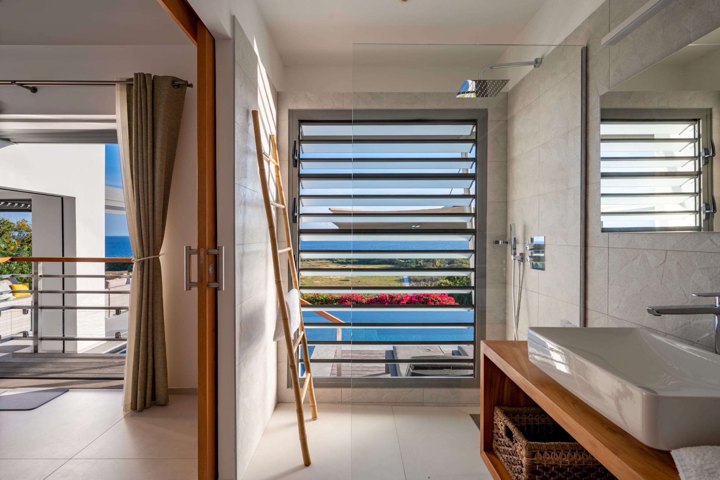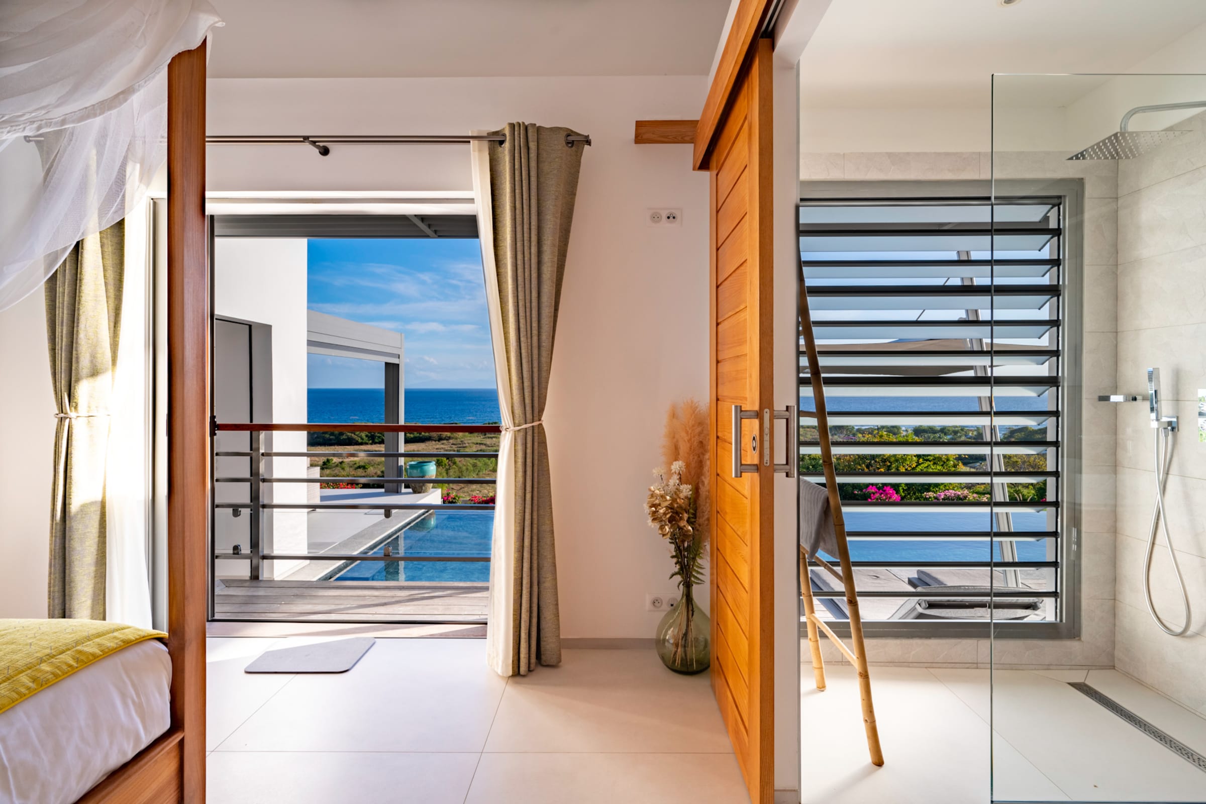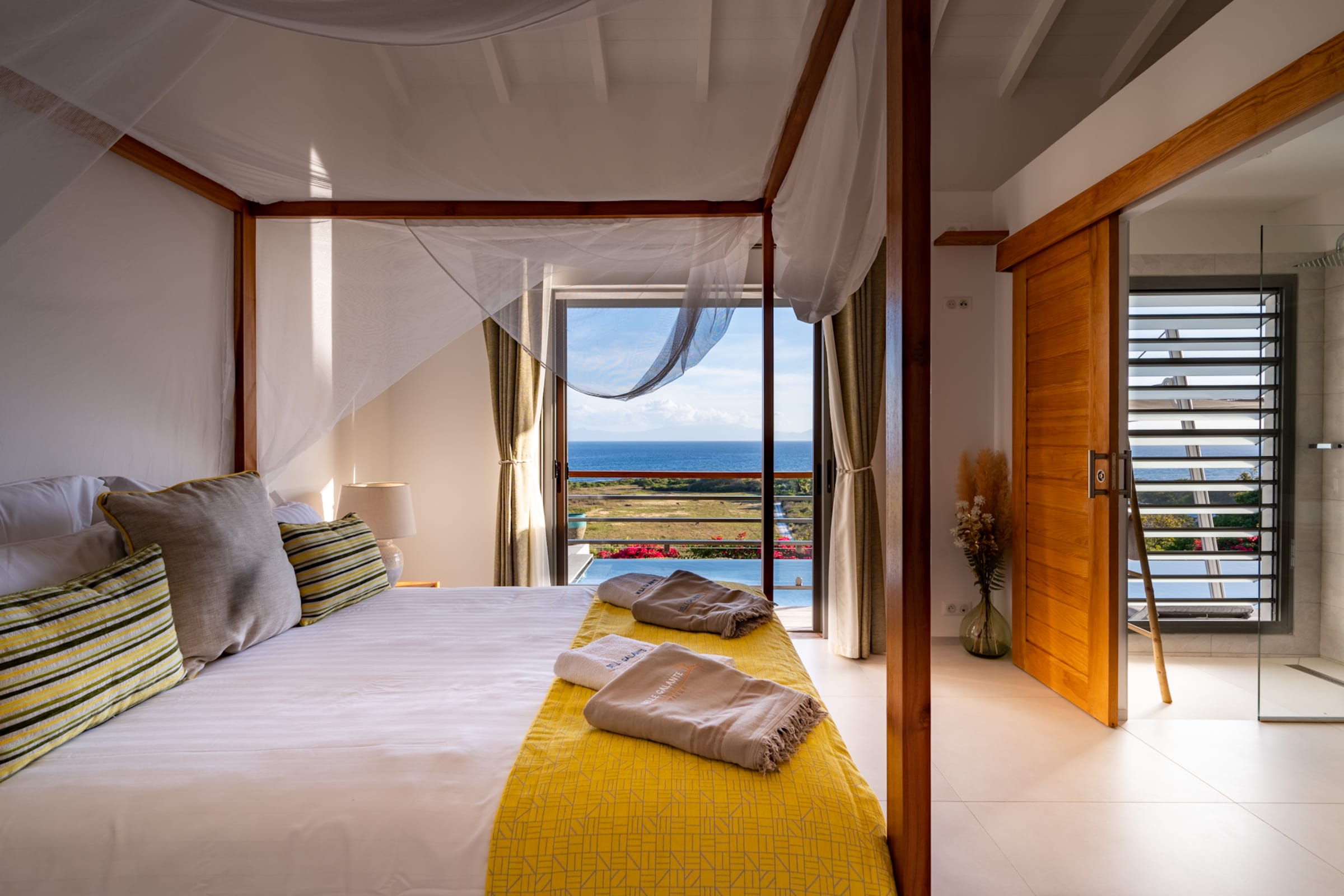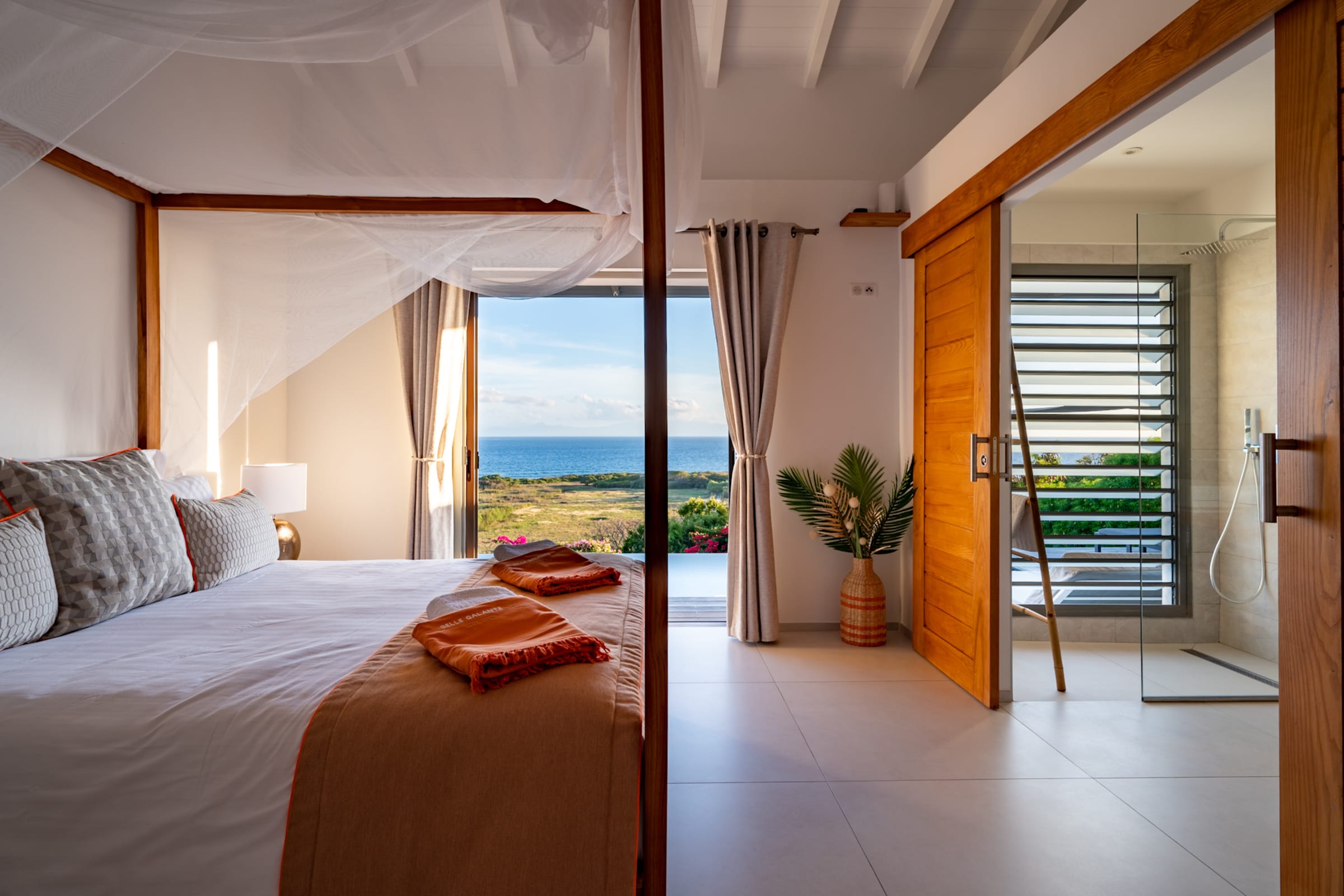 The bedrooms, with breathtaking views of the Caribbean Sea, are tastefully decorated and each features a private bathroom with a walk-in shower. Four bedrooms are equipped with a 160 cm beds and one bedroom with a 140 cm and a 90 cm bed. They also offer direct access to the terrace.