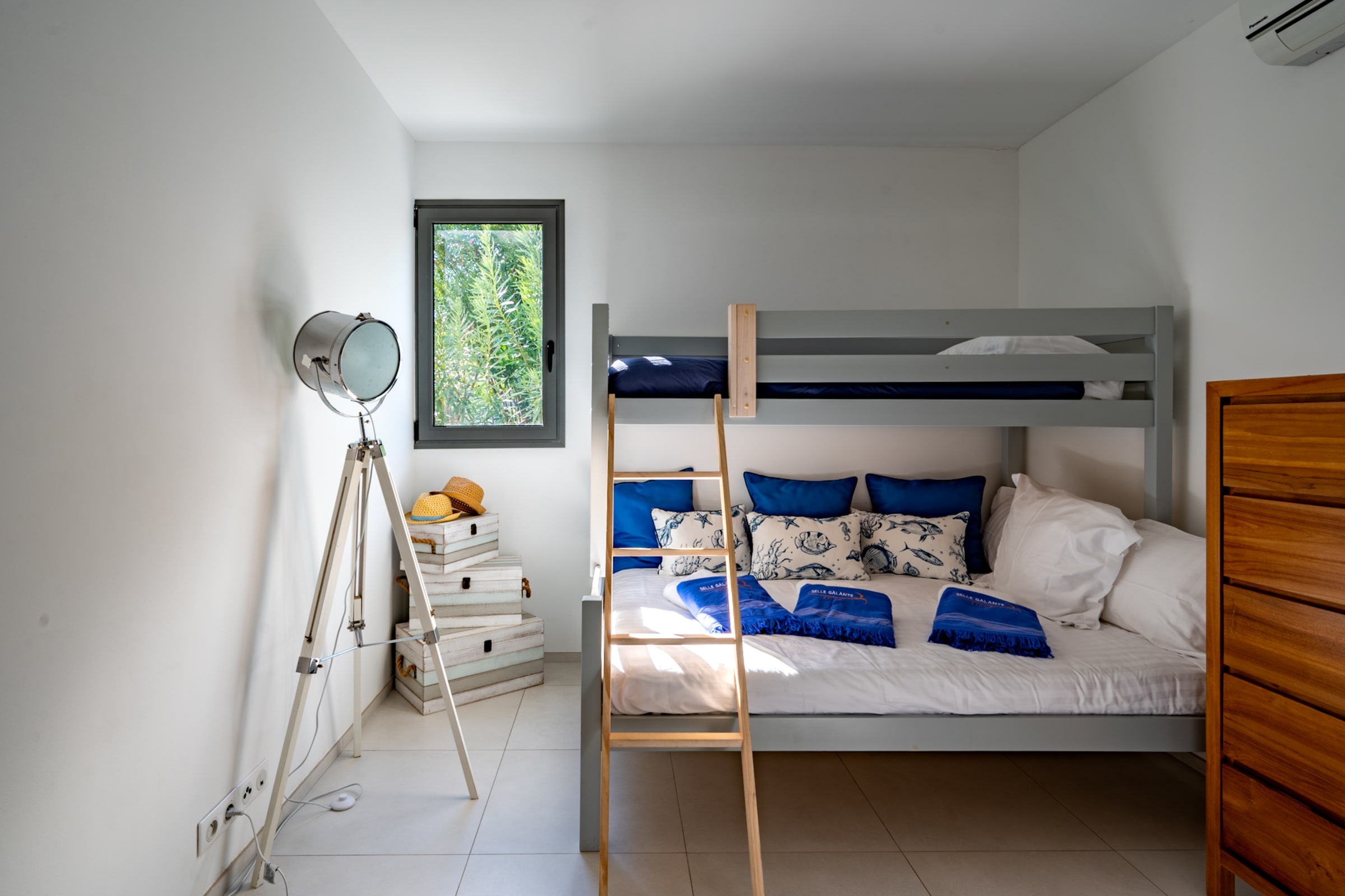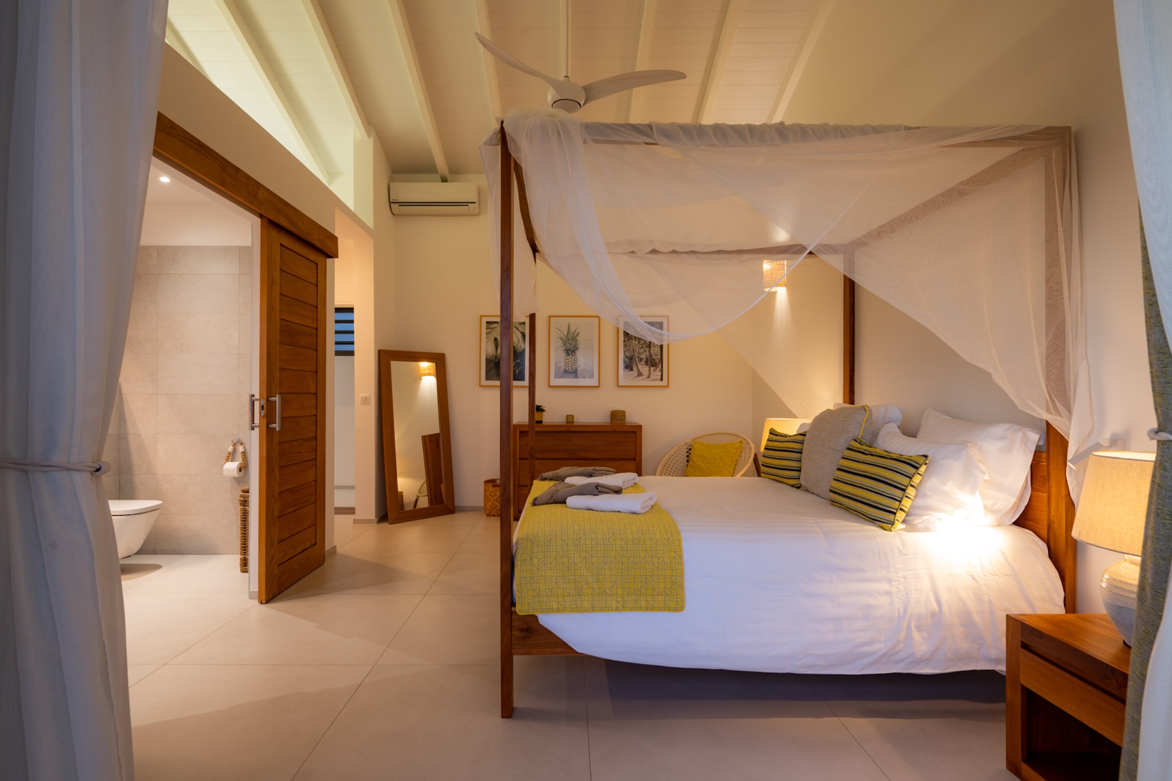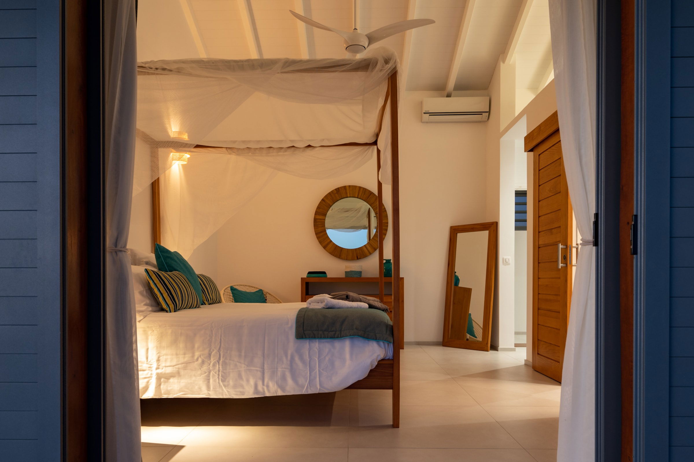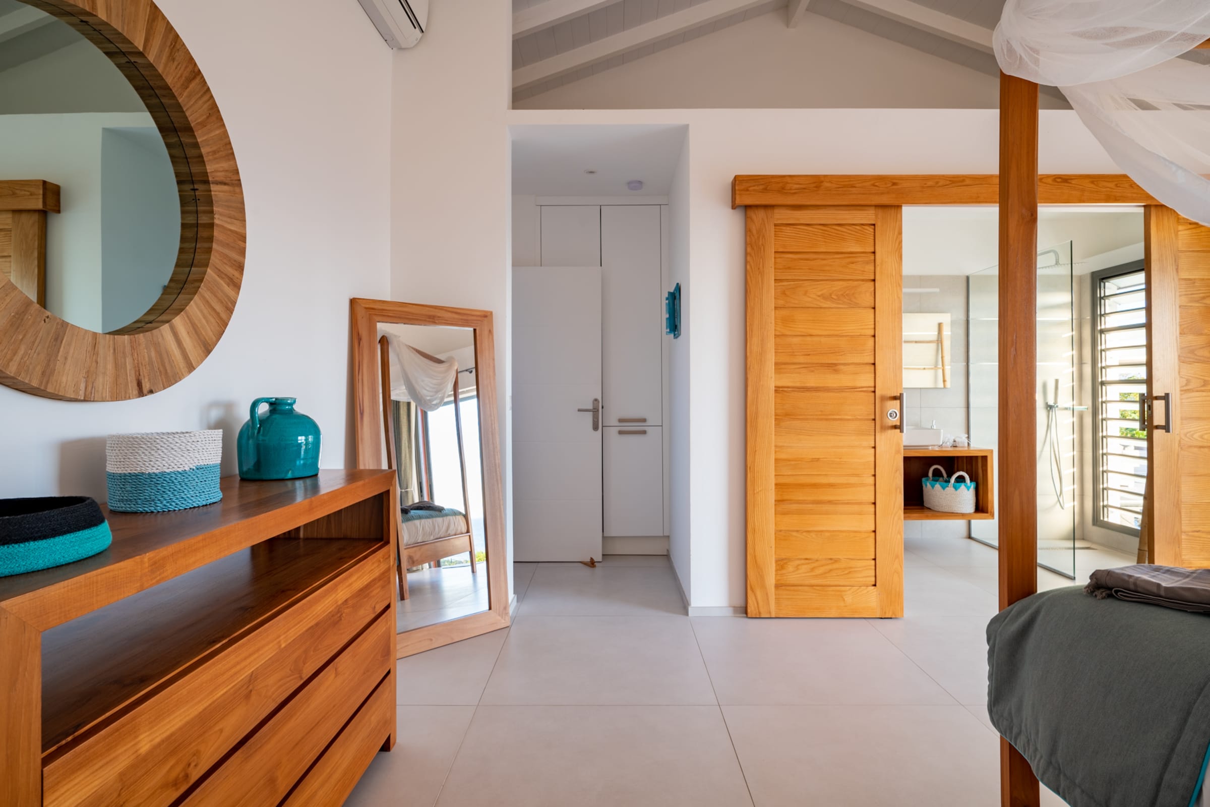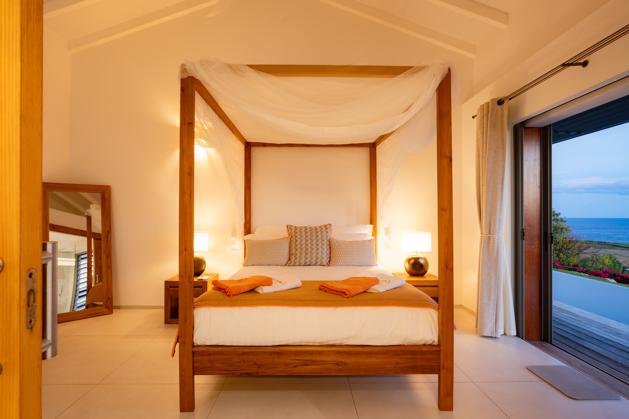 The bedrooms, with breathtaking views of the Caribbean Sea, are tastefully decorated and each features a private bathroom with a walk-in shower. Four bedrooms are equipped with a 160 cm beds and one bedroom with a 140 cm and a 90 cm bed. They also offer direct access to the terrace.