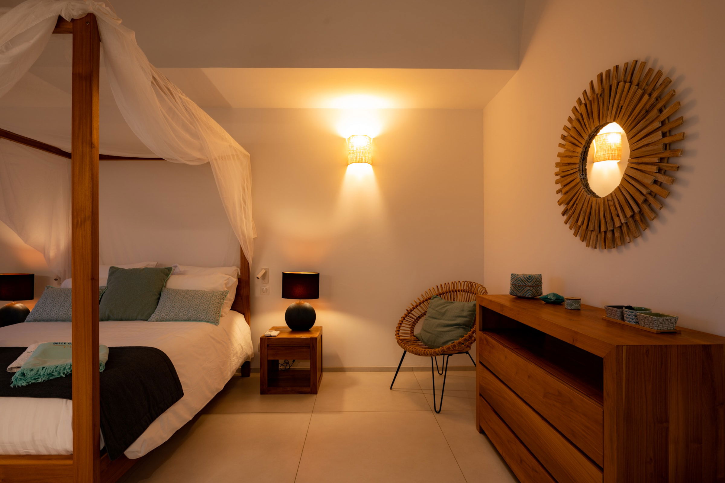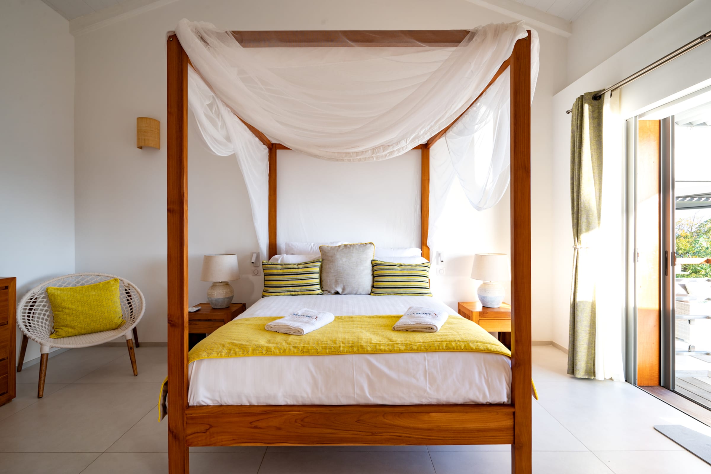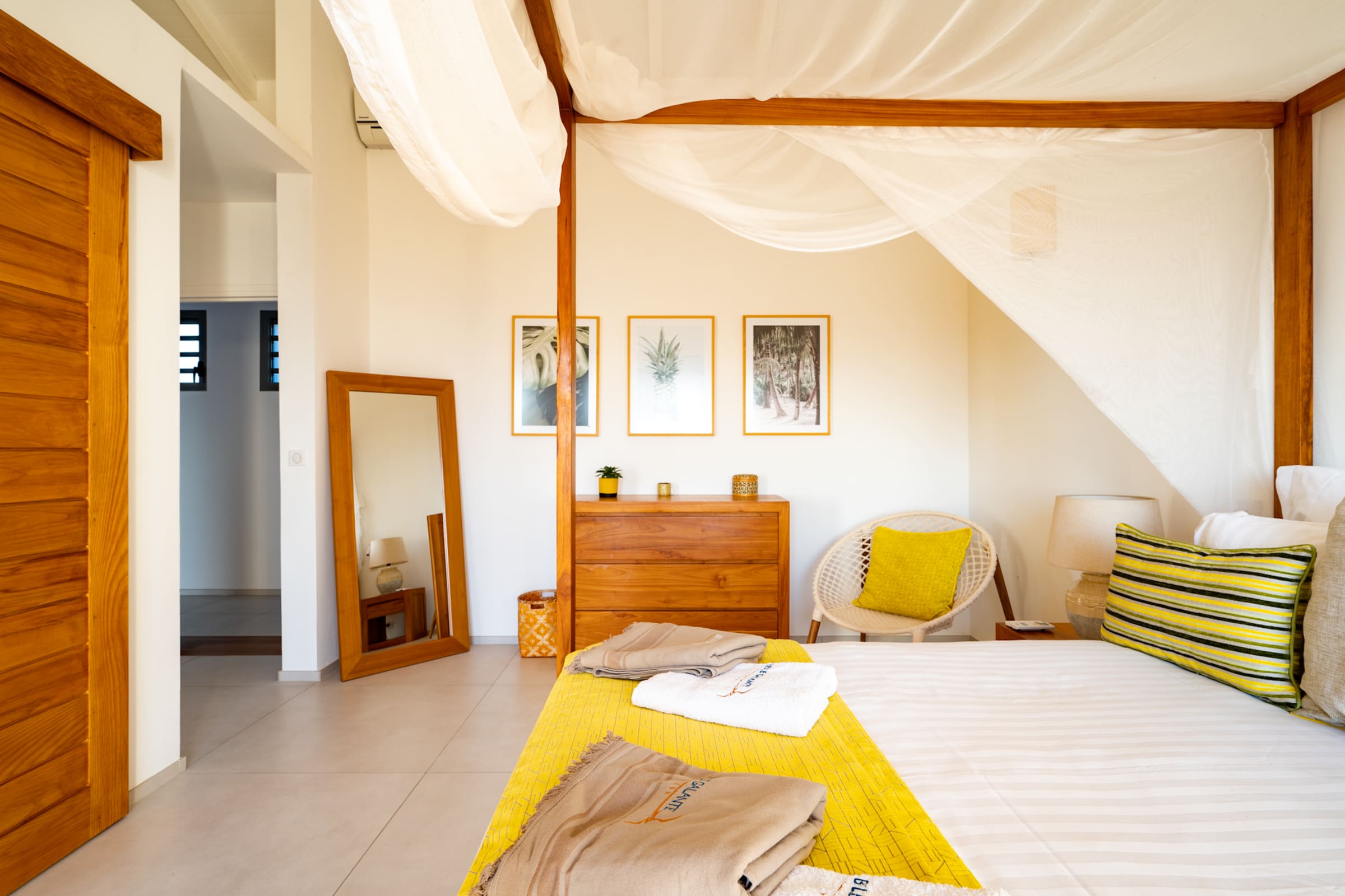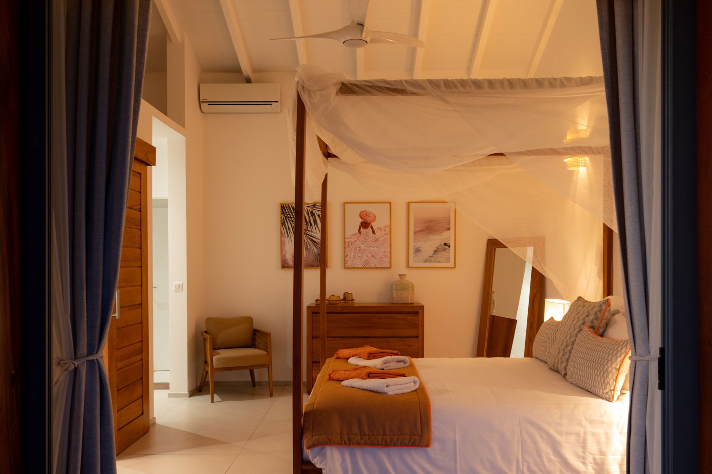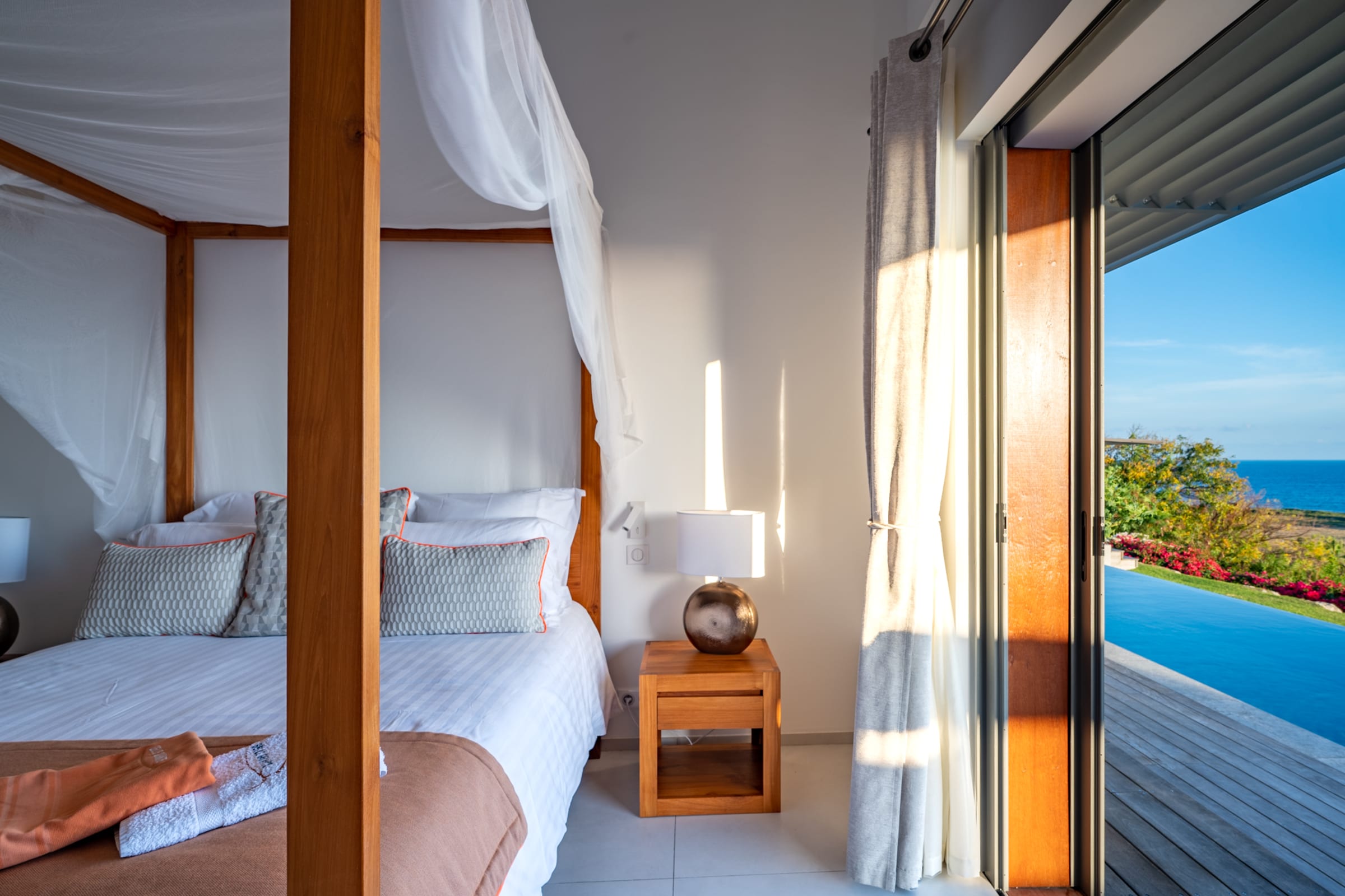 The bedrooms, with breathtaking views of the Caribbean Sea, are tastefully decorated and each features a private bathroom with a walk-in shower. Four bedrooms are equipped with a 160 cm beds and one bedroom with a 140 cm and a 90 cm bed. They also offer direct access to the terrace.