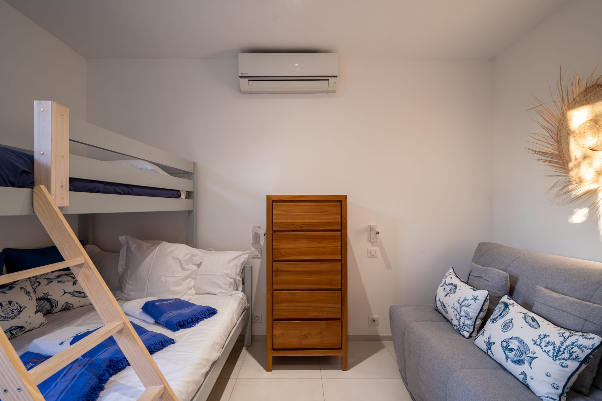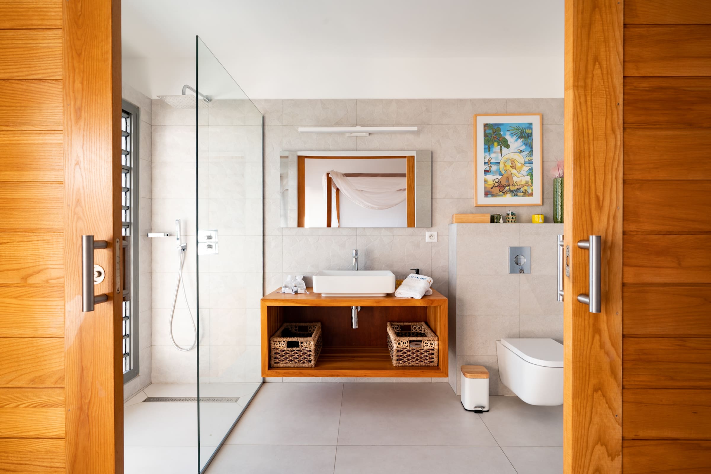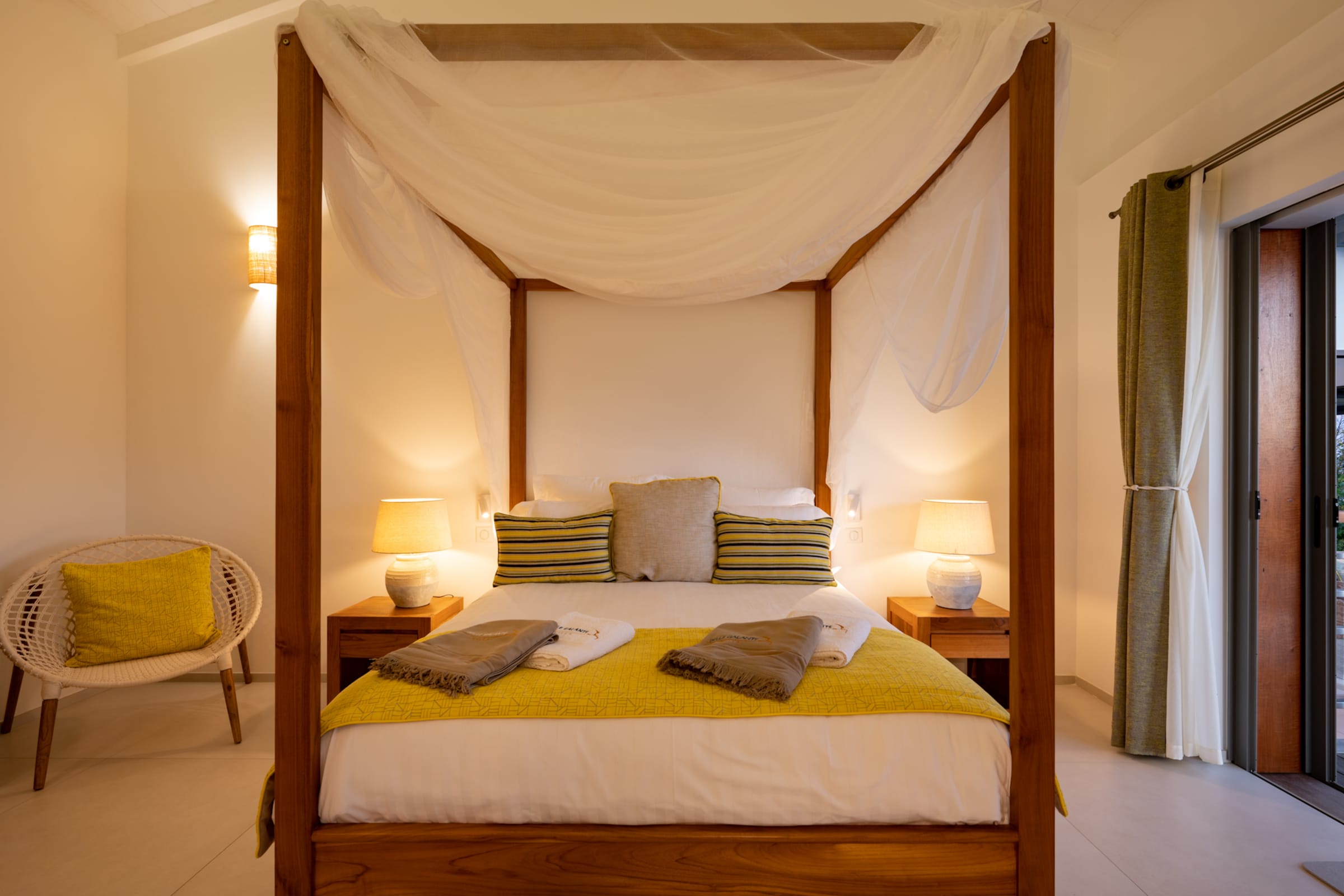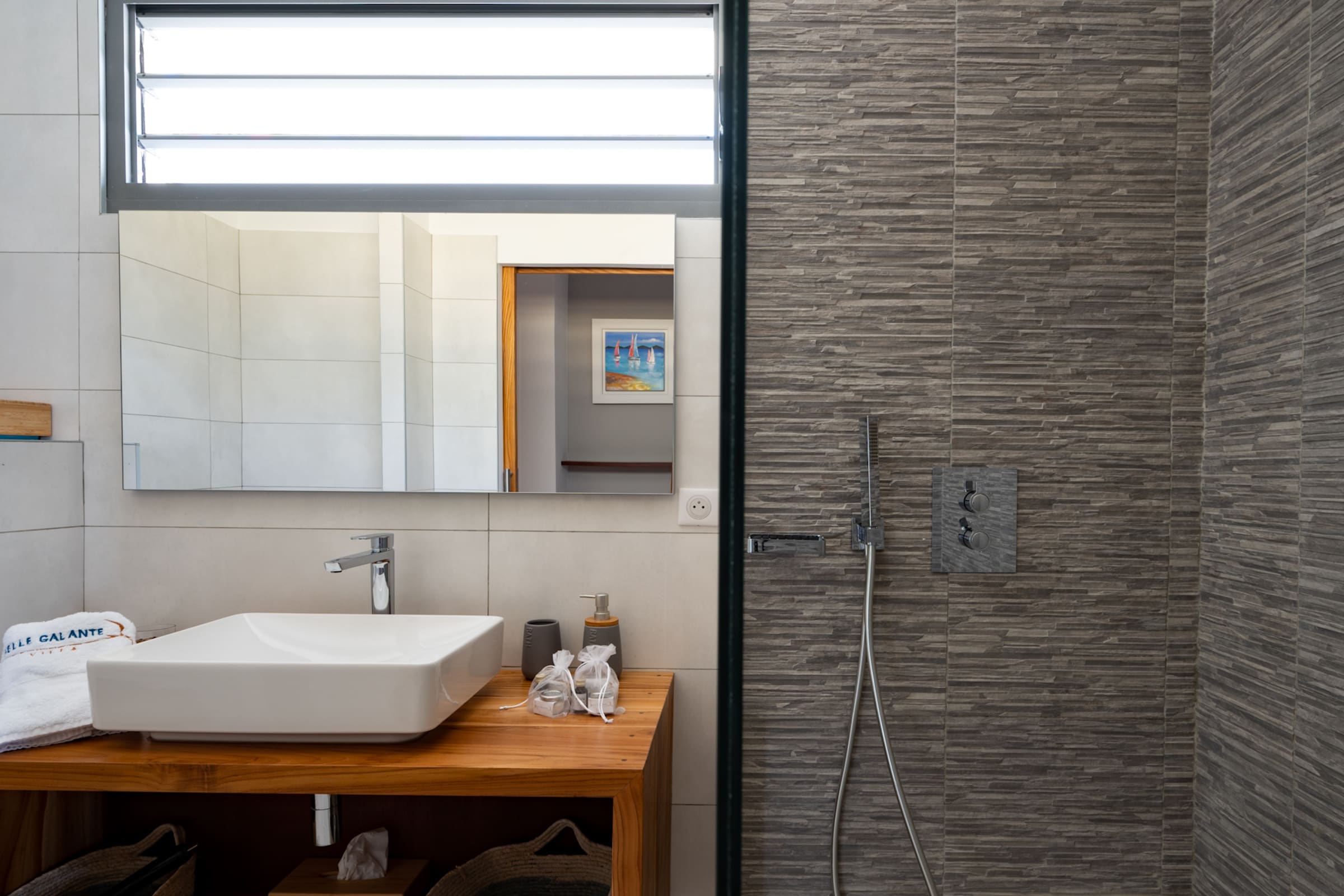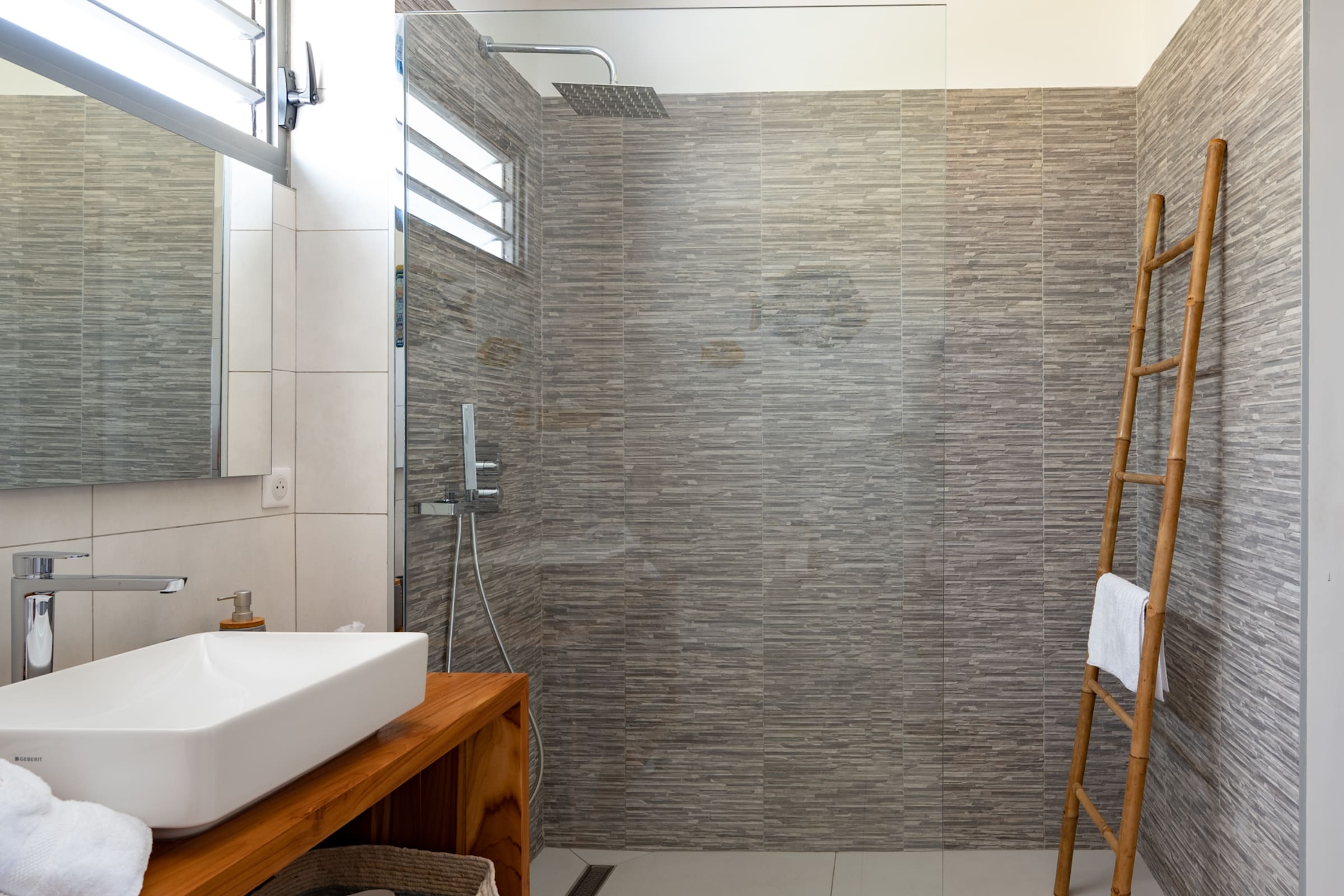 The bedrooms, with breathtaking views of the Caribbean Sea, are tastefully decorated and each features a private bathroom with a walk-in shower. Four bedrooms are equipped with a 160 cm beds and one bedroom with a 140 cm and a 90 cm bed. They also offer direct access to the terrace.