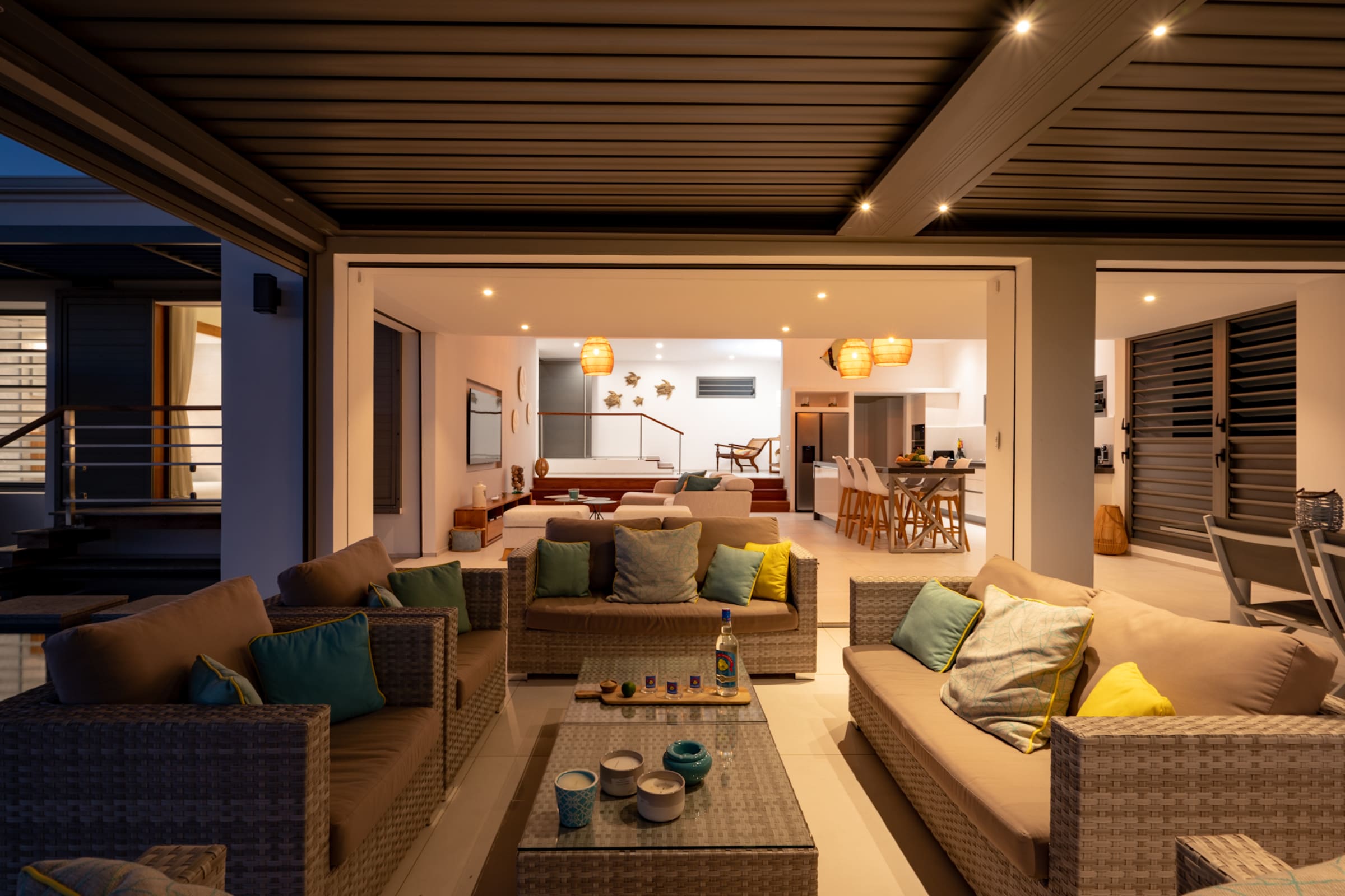 Relax on the spacious terrace overlooking the lagoon, where you can bask in the sunset. Shaded and sunny areas are thoughtfully arranged to provide perfect spots for rest and relaxation.