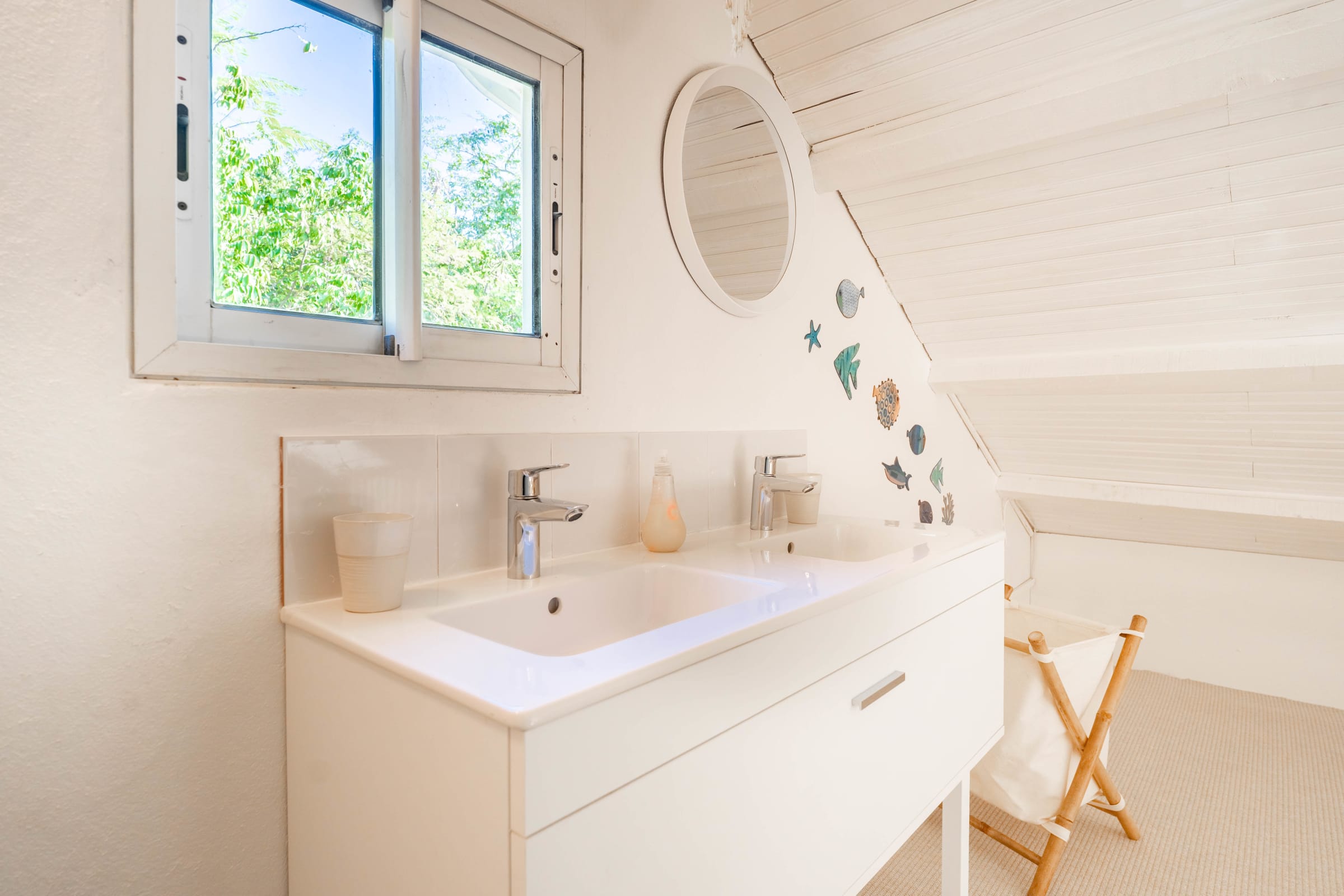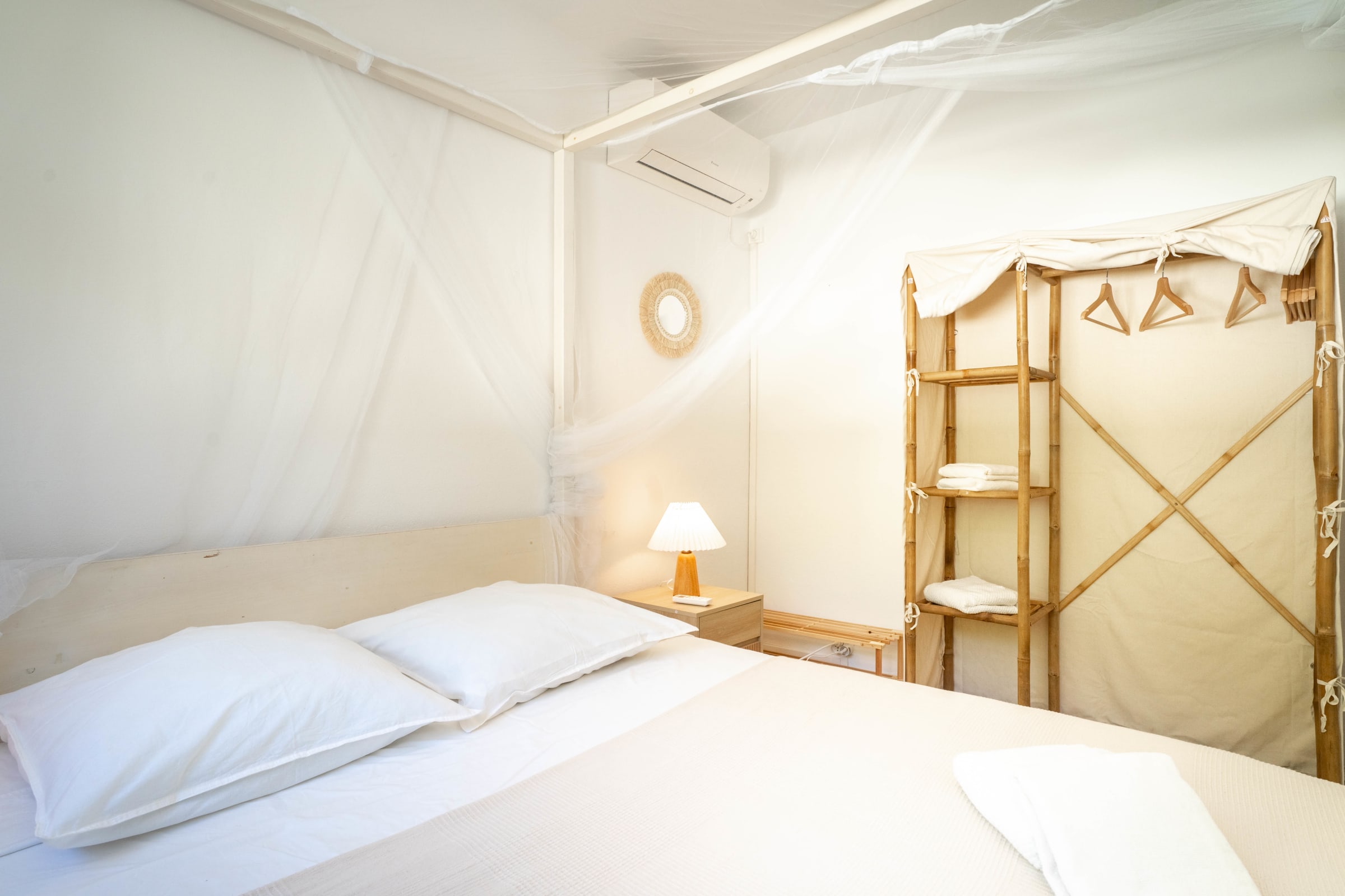 Measuring 125 m² on one level, the villa has four air-conditioned bedrooms, all equipped with mosquito nets. Three have comfortable 160 cm beds, while the fourth has bunk beds perfect for younger guests. The two contemporary bathrooms and two toilets guarantee every comfort. The fibre-optic internet connection is of exceptional quality, guaranteeing fast, stable browsing.