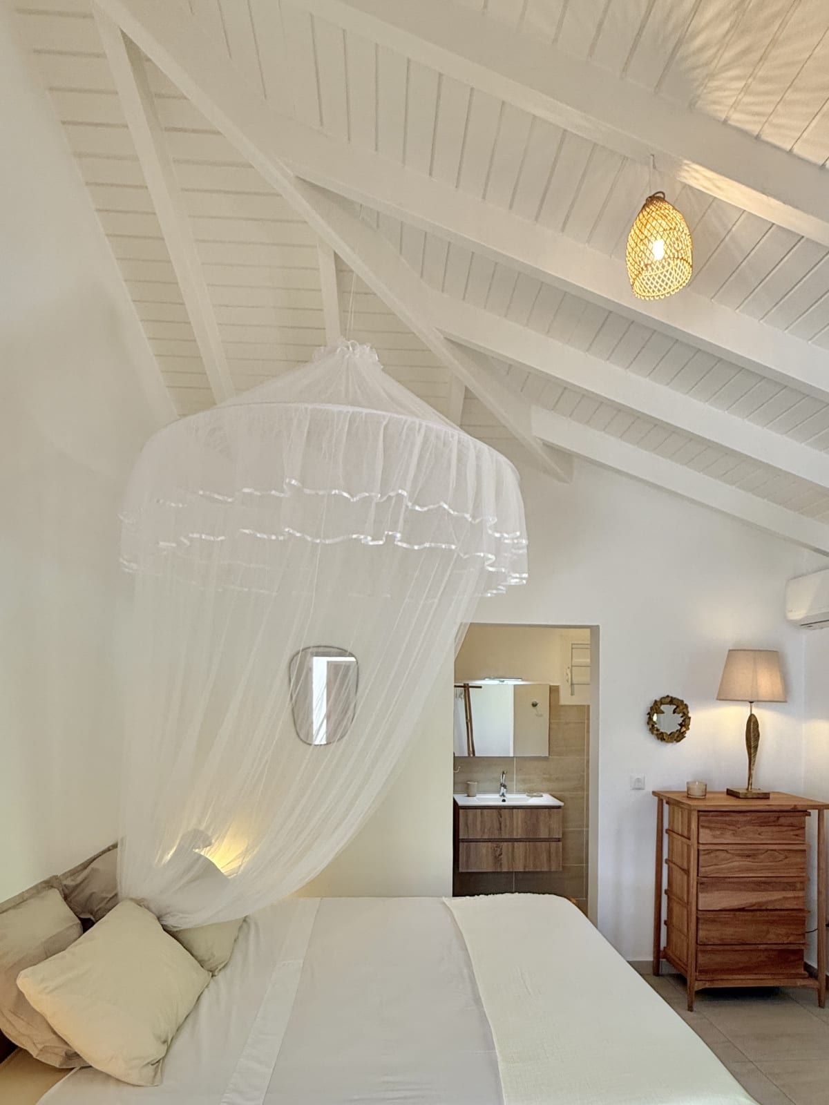Welcome to Villa Joséphine, a true haven of comfort and elegance nestled in Grand Bourg. Spanning 400 m², this magnificent property promises an unforgettable stay. Its five beautifully decorated bedrooms — three with king-size beds (180 × 200 cm) and two with queen-size beds (160 × 200 cm) — each have their own private bathroom, ensuring total privacy for all guests.
