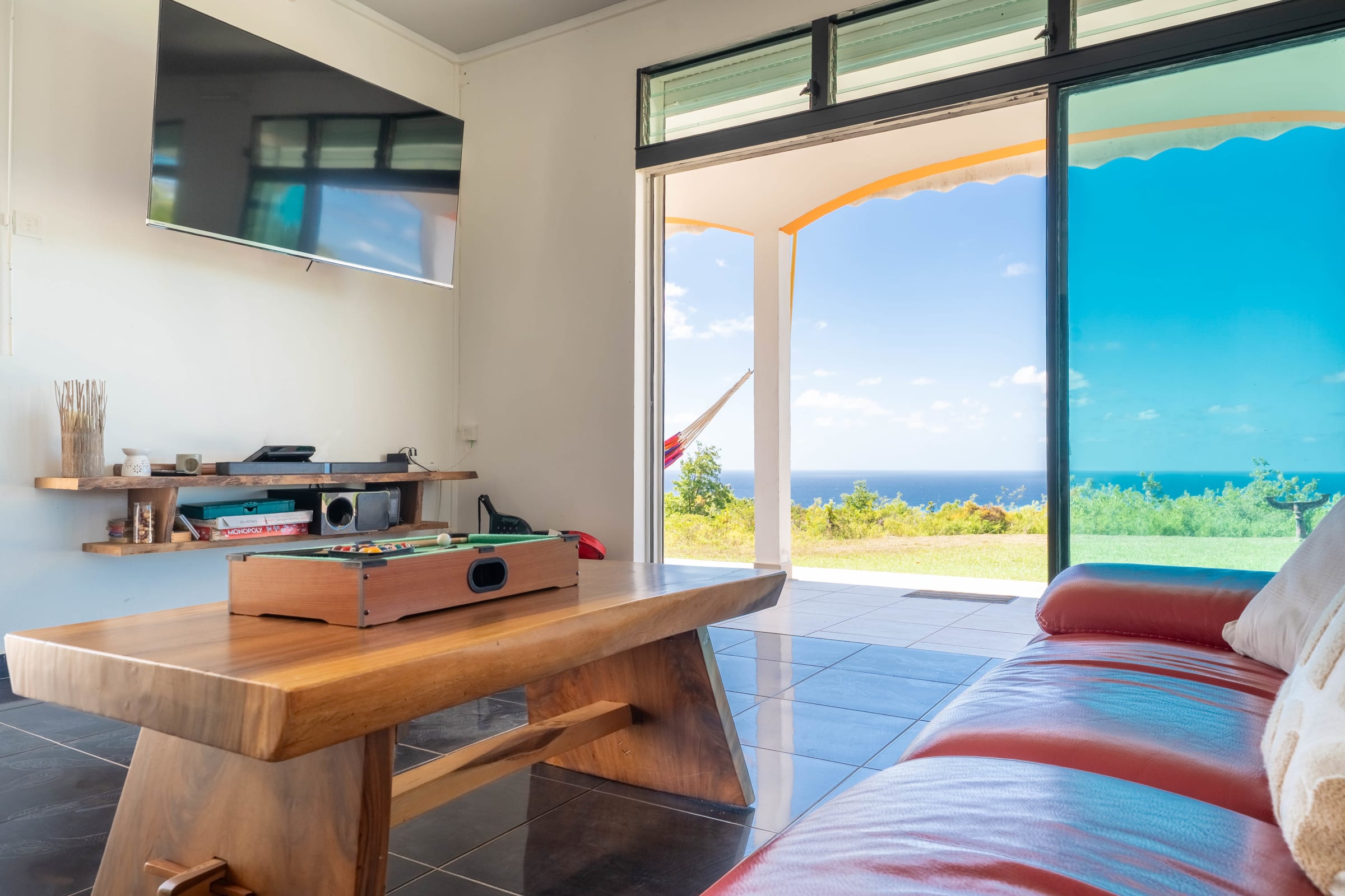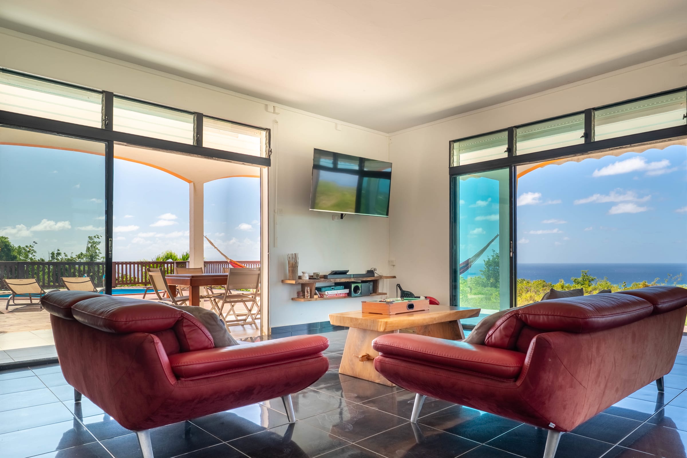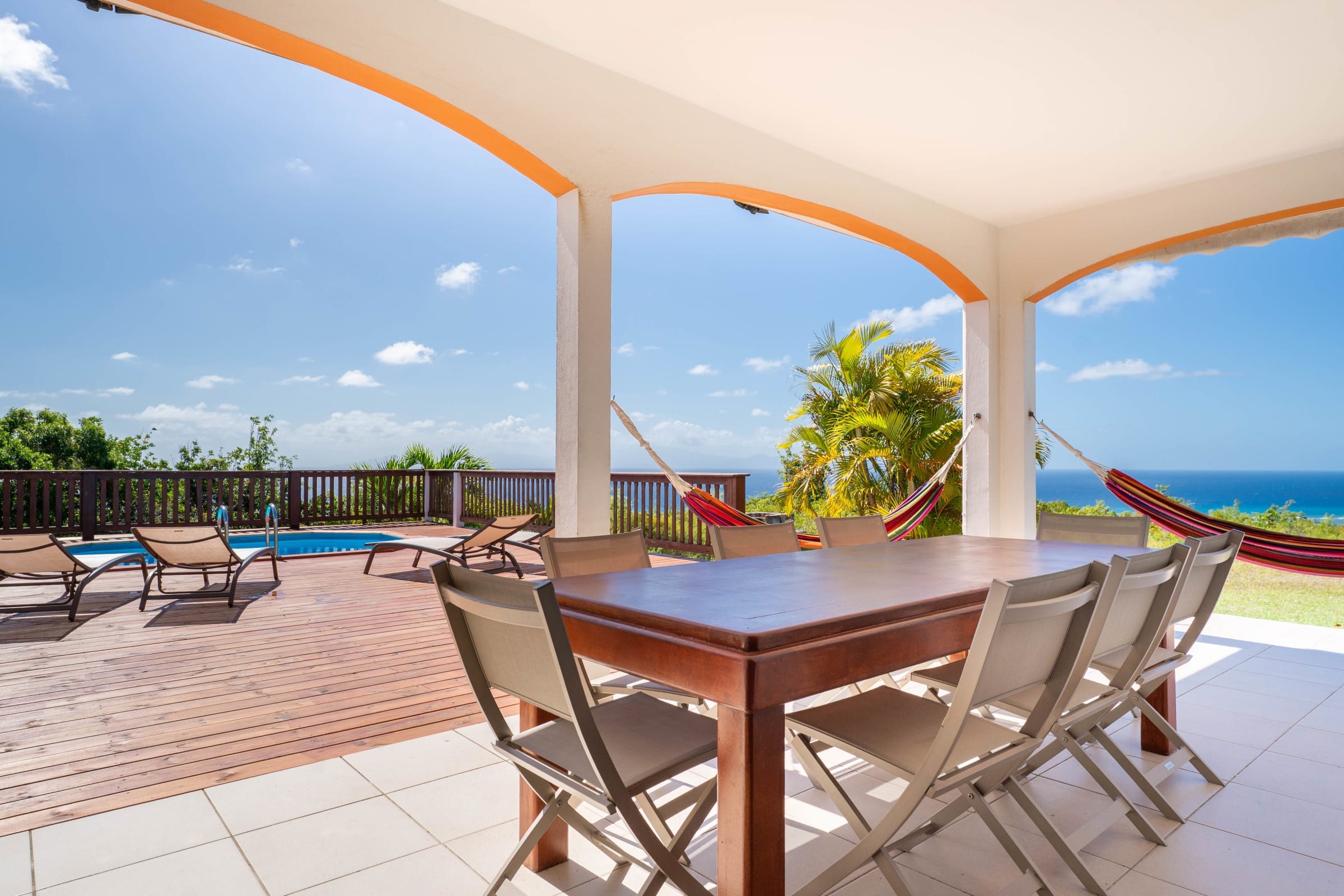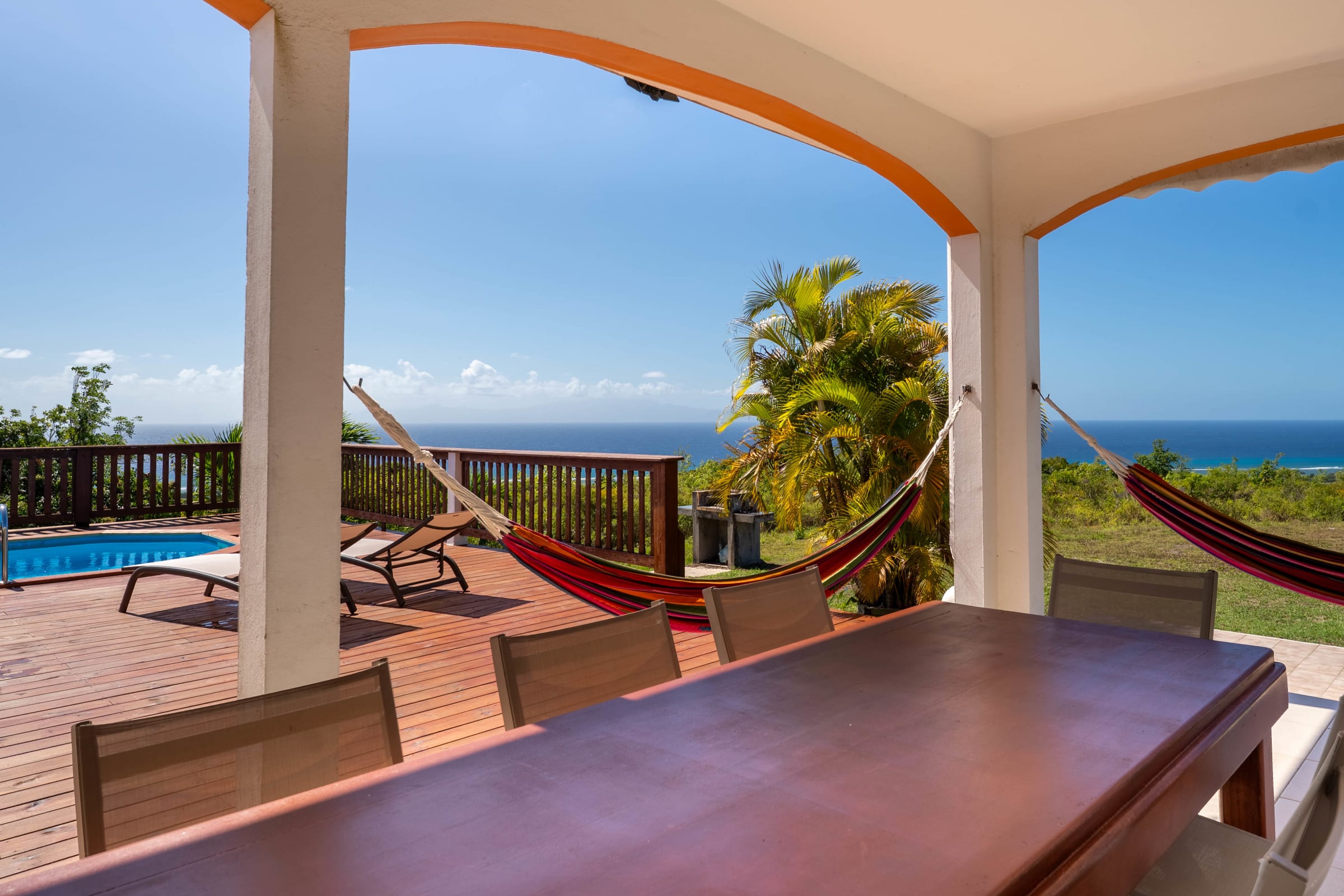 - Terrace equipped with hammocks, lounge chairs, and BBQ