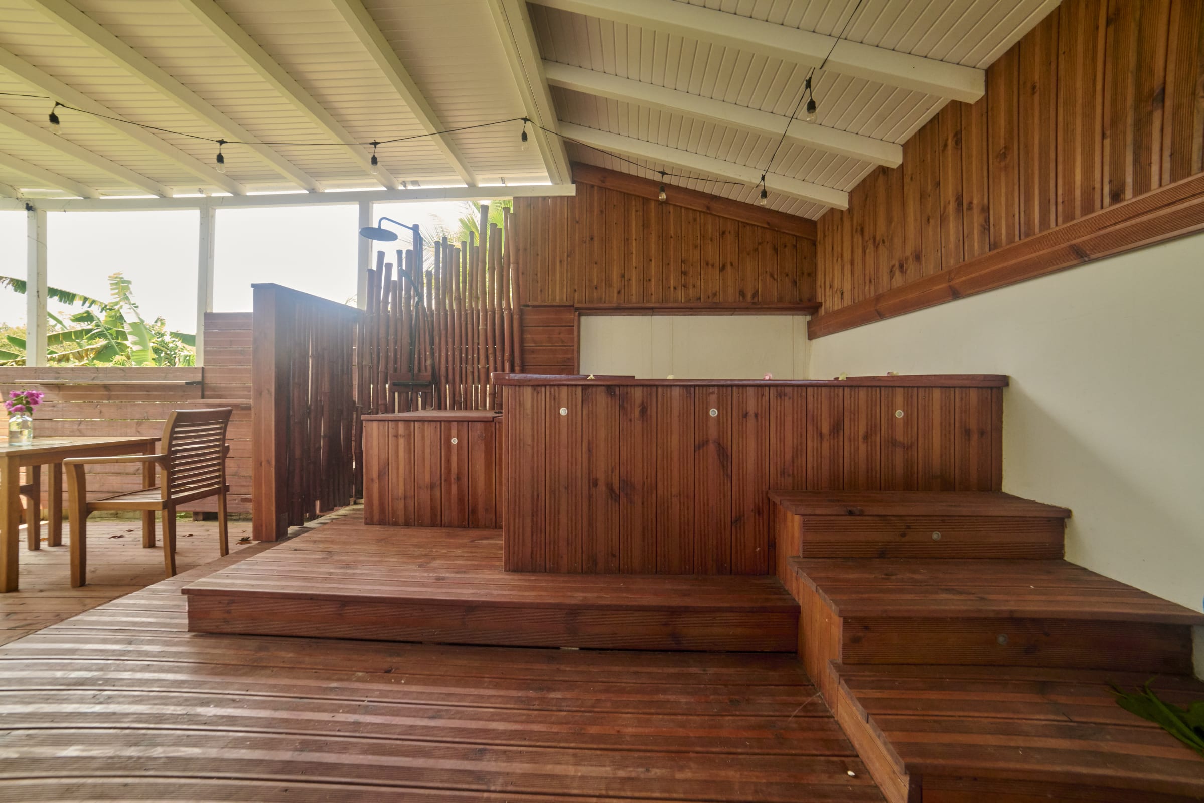Outside, a relaxation area awaits you with its private 8x3m swimming pool where you can unwind under the tropical sun. Upstairs, treat yourself to a moment of relaxation in the two-person jacuzzi.