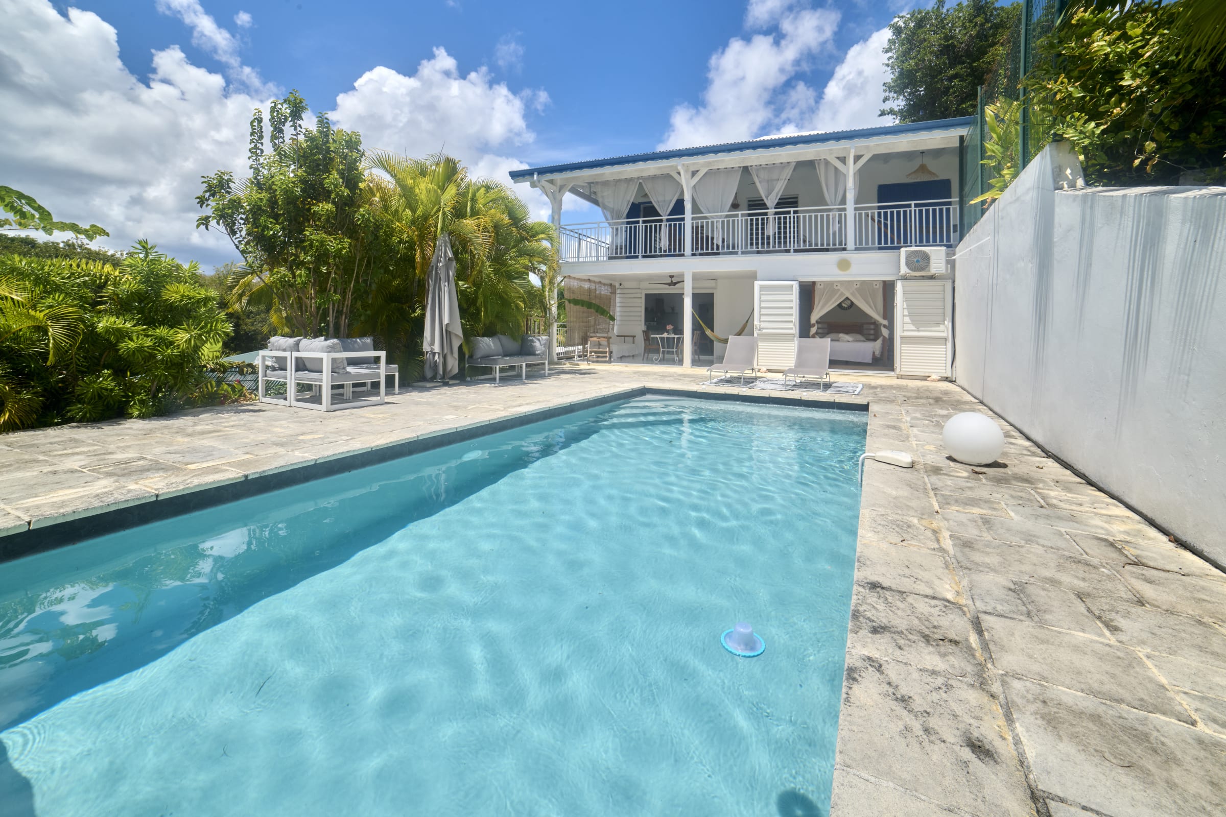 Welcome to the Villa Kaza Dominique. An oasis of une conciergerie nestled in the charming Hermitage residential area, just 5 minutes from Grand Bourg. This villa, with its modern and bright architecture, spans 260m² spread over two floors (not connected) and offers an ideal holiday setting for families and groups of friends. With its four air-conditioned bedrooms, each with a comfortable 160cm bed, and a mezzanine with two single beds, you'll feel right at home.
