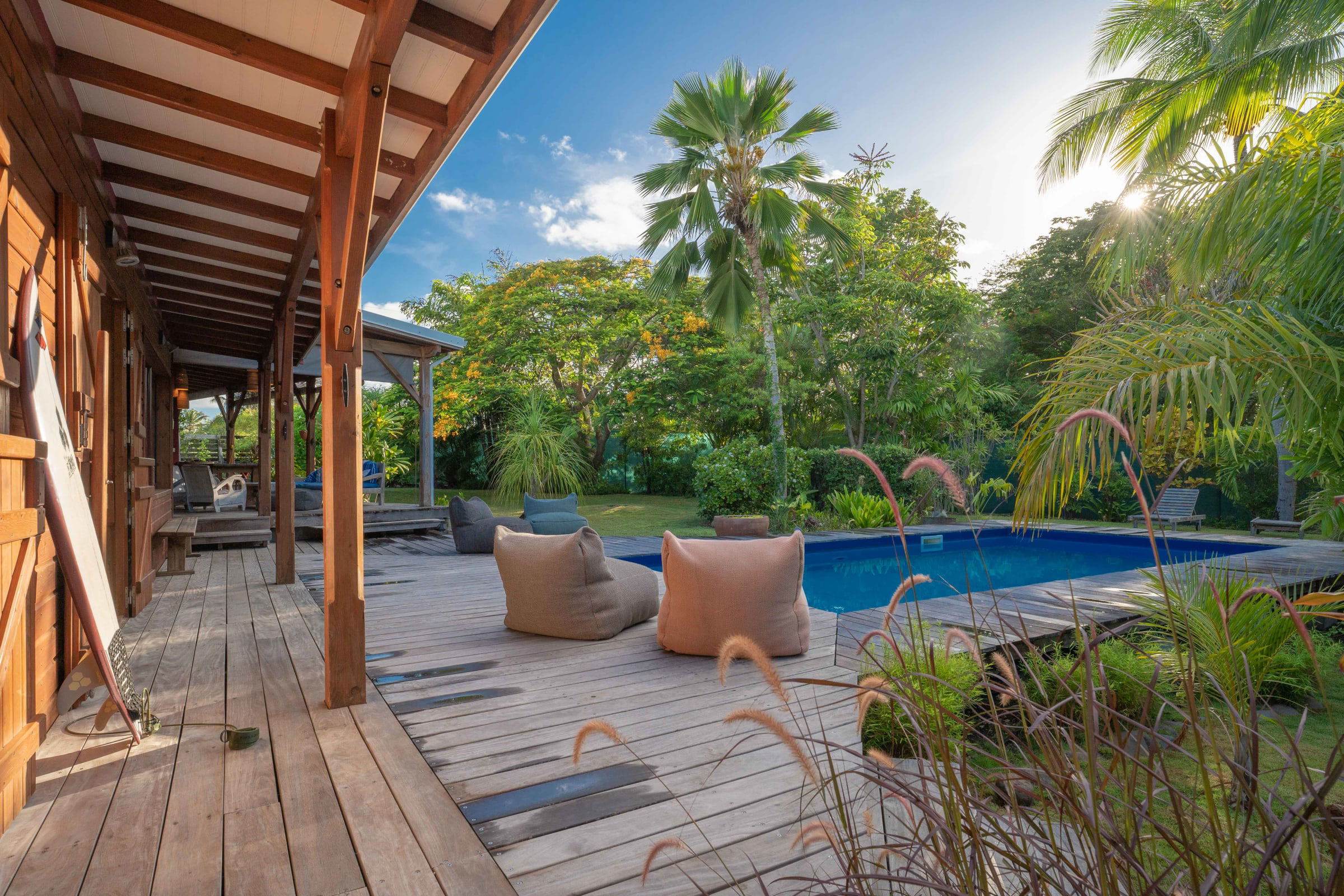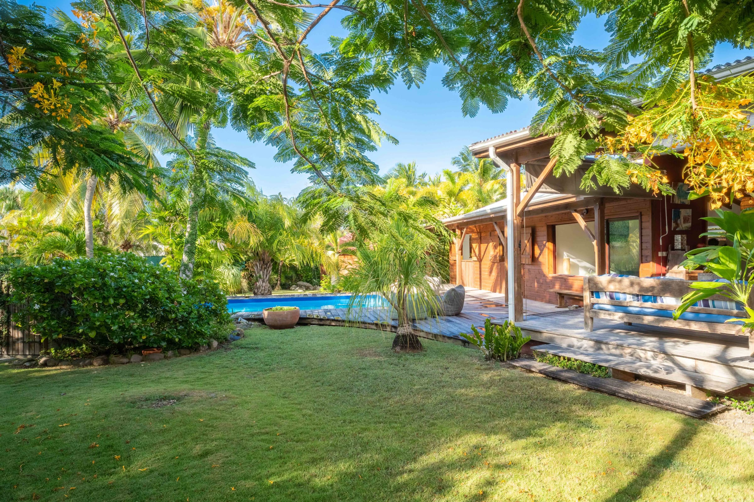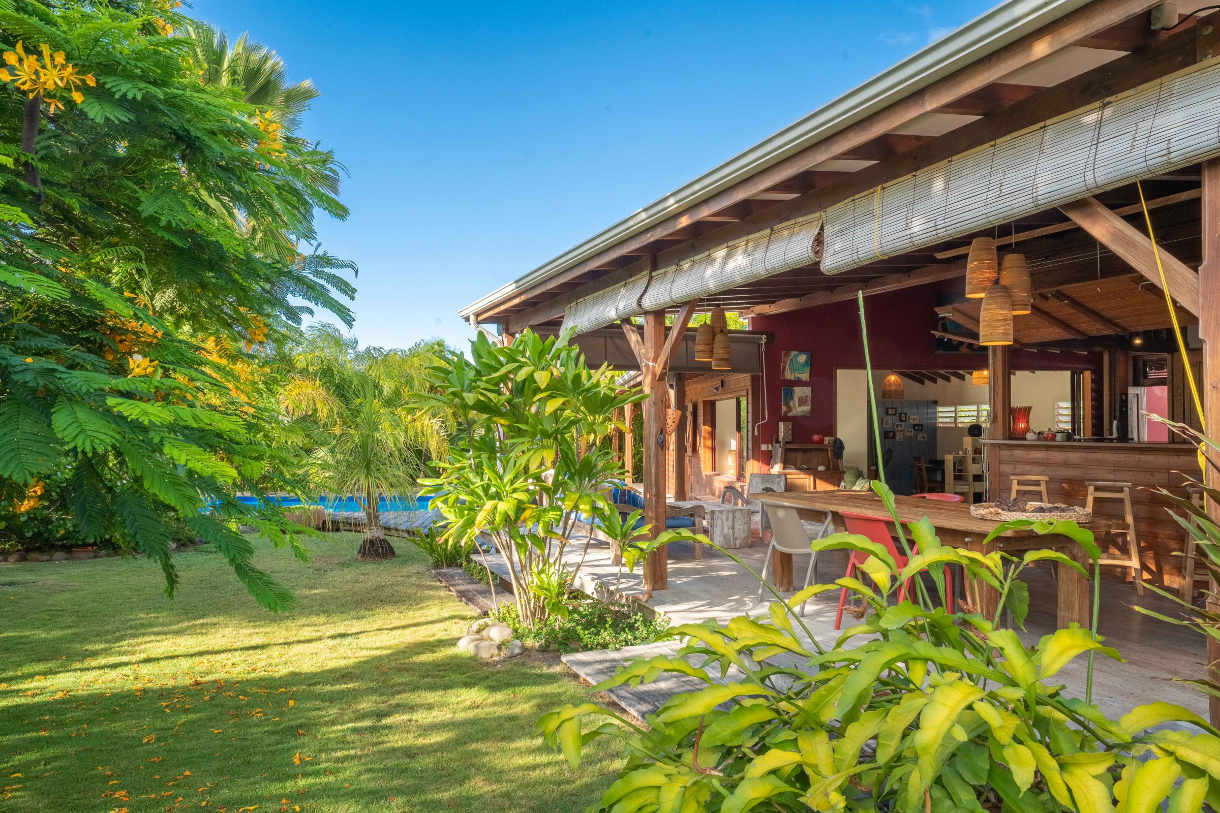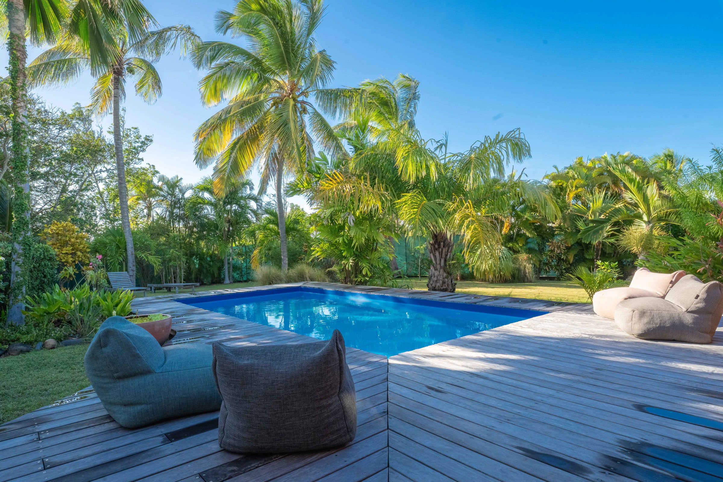 ### Nestled in the middle of a magnificent tropical garden, this beautiful single-storey villa has a Creole charm. Palm trees and yellow flamboyants are the only opposite. Spacious living rooms widely open to the large covered terrace extended by a deck around the pool. A living room articulated around the American kitchen and the convivial bar.