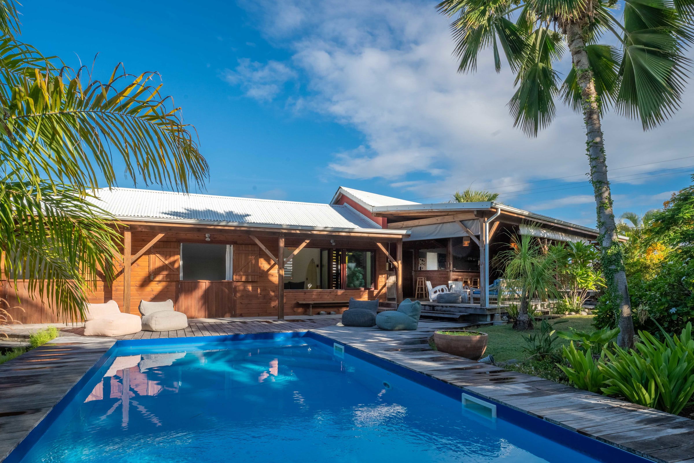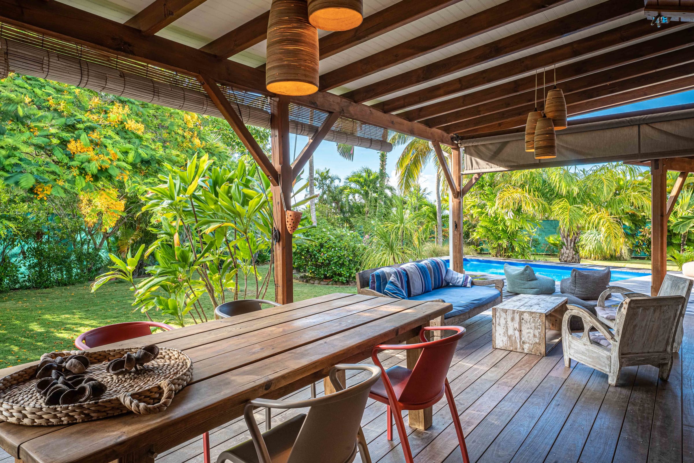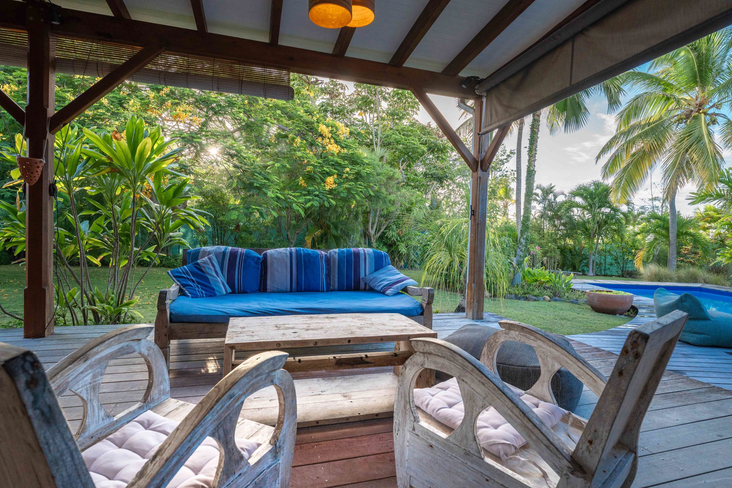 ### Nestled in the middle of a magnificent tropical garden, this beautiful single-storey villa has a Creole charm. Palm trees and yellow flamboyants are the only opposite. Spacious living rooms widely open to the large covered terrace extended by a deck around the pool. A living room articulated around the American kitchen and the convivial bar.