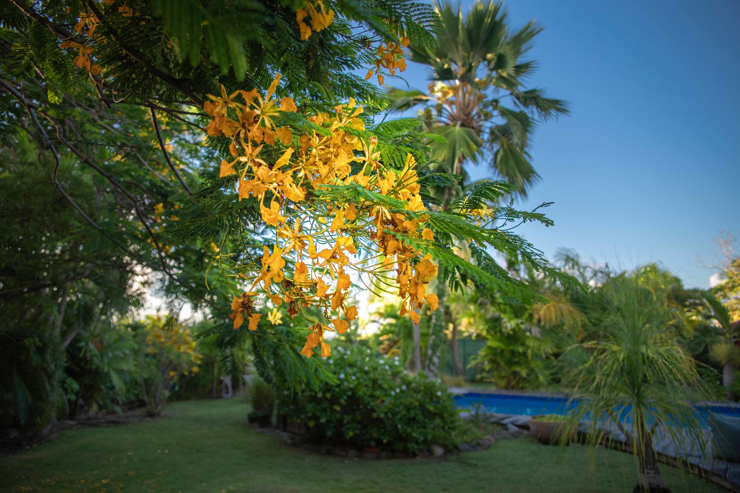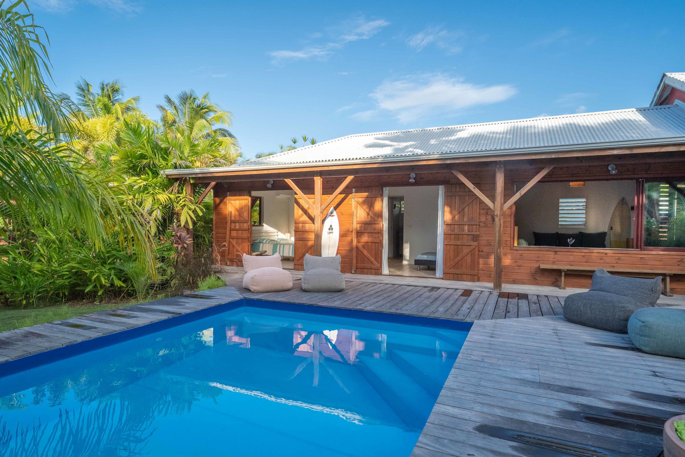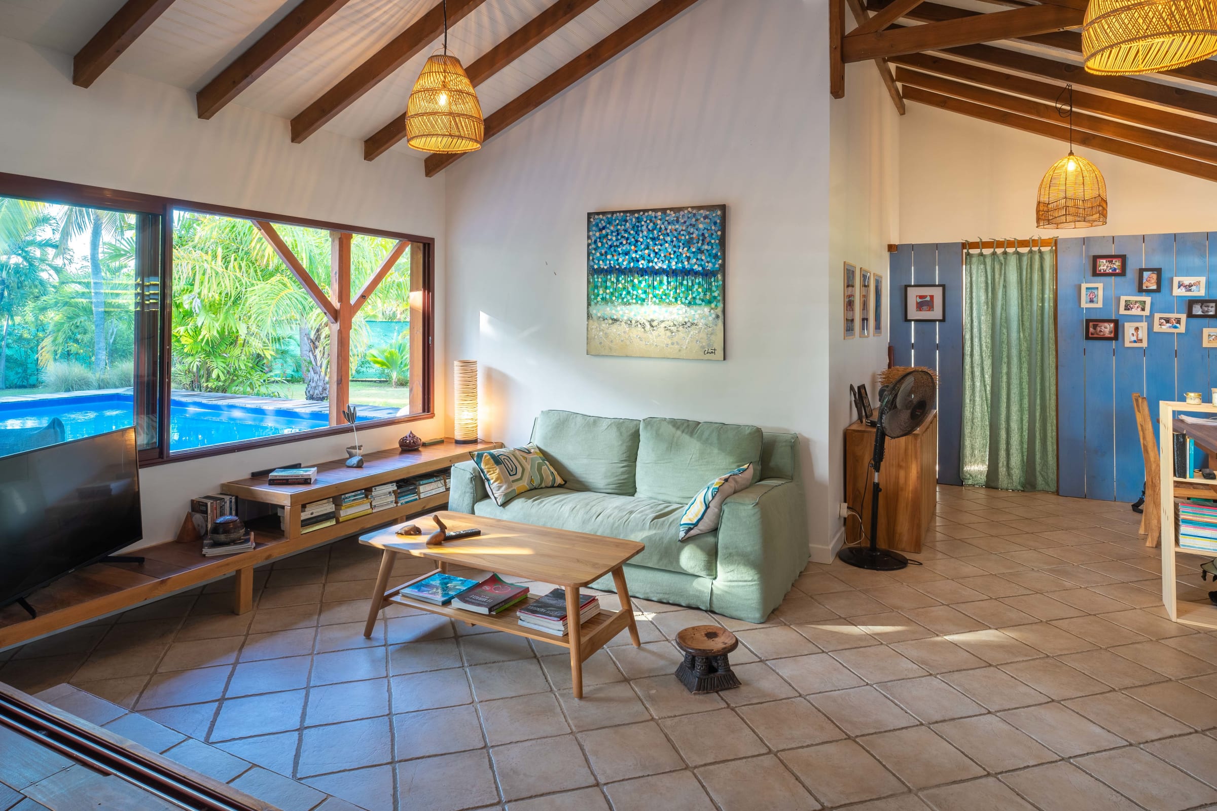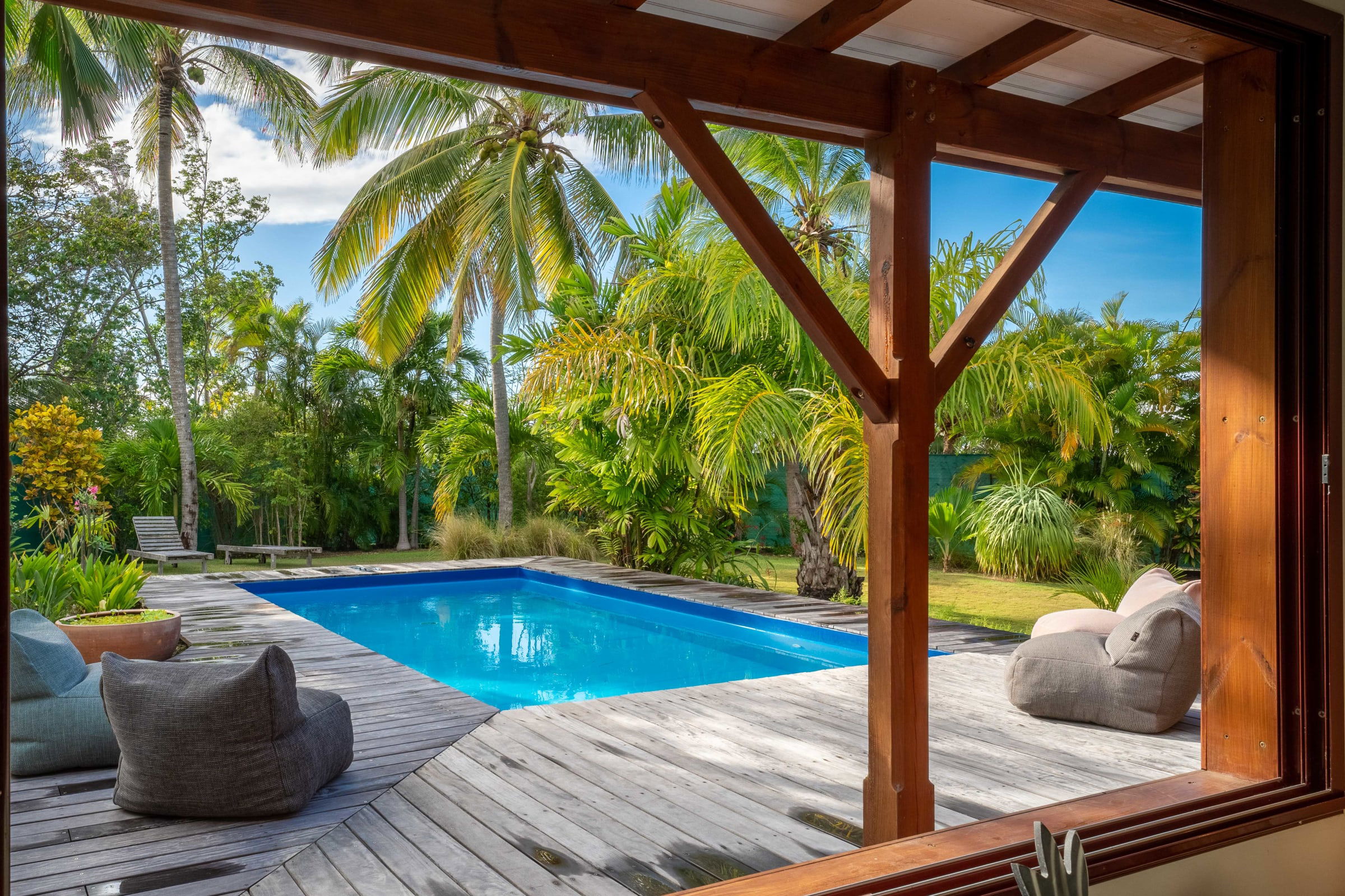 ### Nestled in the middle of a magnificent tropical garden, this beautiful single-storey villa has a Creole charm. Palm trees and yellow flamboyants are the only opposite. Spacious living rooms widely open to the large covered terrace extended by a deck around the pool. A living room articulated around the American kitchen and the convivial bar.
