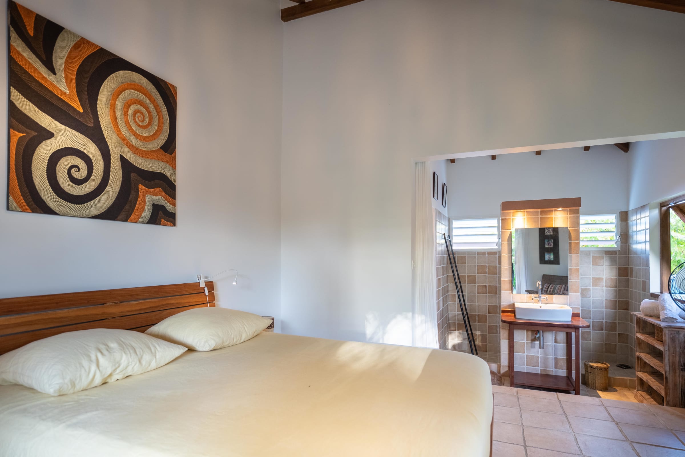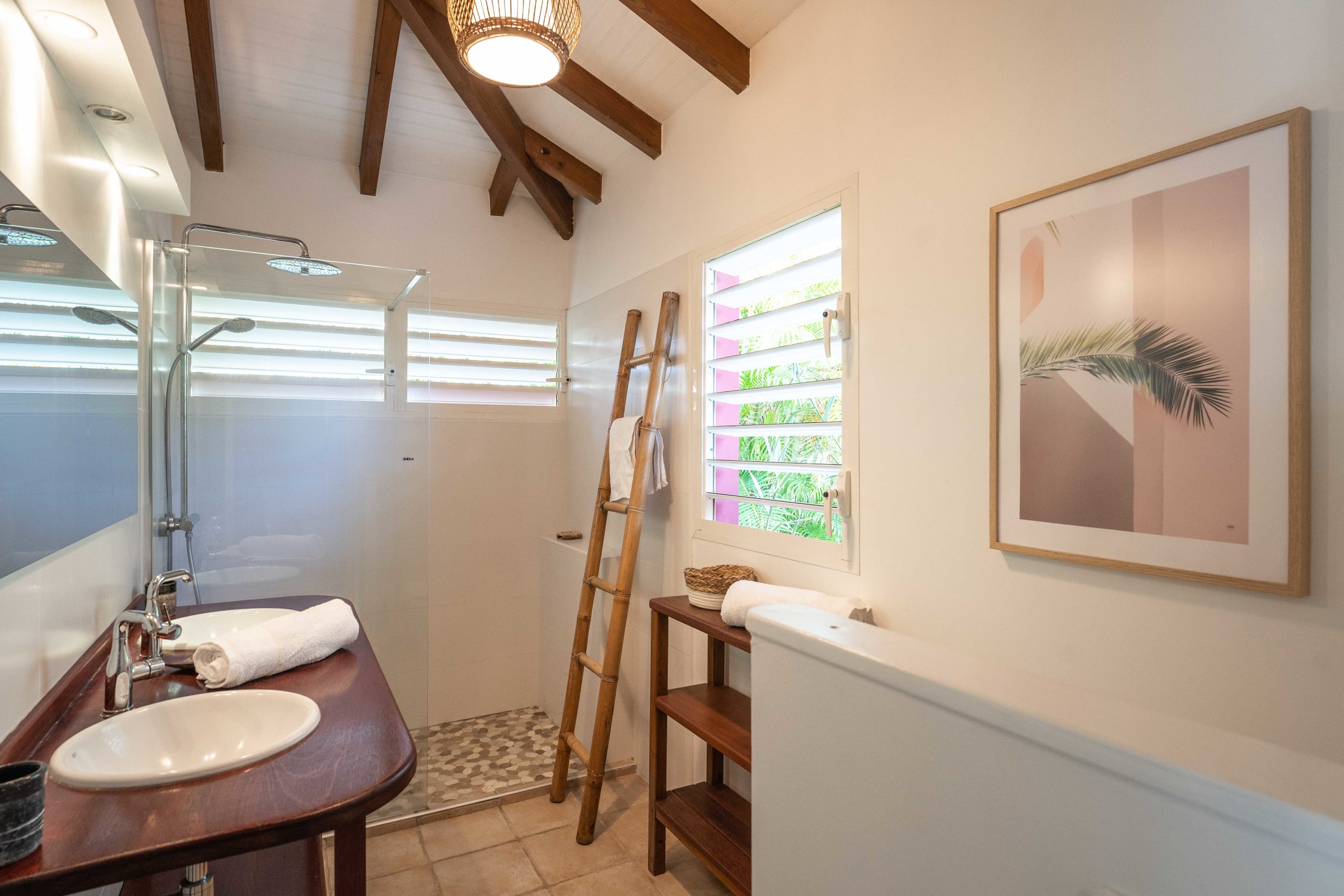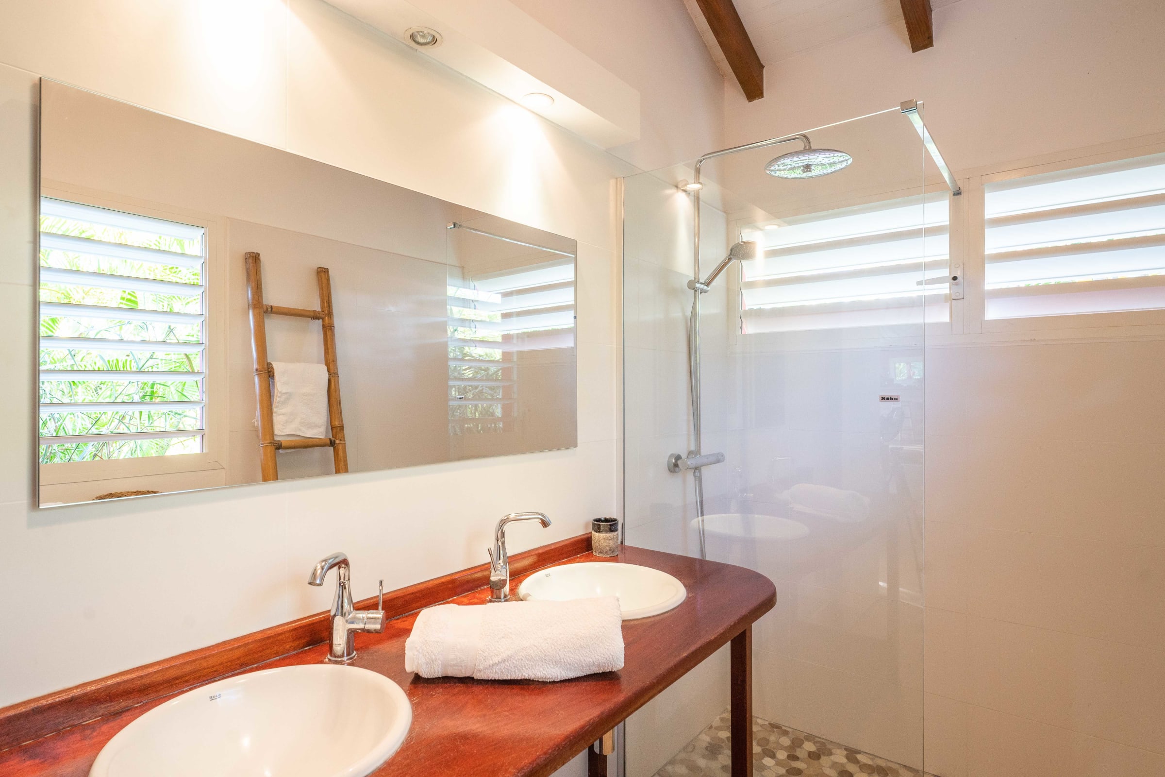 The villa is located in the commune of Le Moule, on the eastern part of Guadeloupe called Grande-Terre. At 45 minutes drive from Pointe-à-Pitre airport, it will take you less than 5 minutes to reach the town of Le Moule and a little less than 15 minutes to reach the marina of Saint-François, the neighboring town and find all the conveniences there: shopping area, supermarket, bakery, pharmacy, fish and spice market and even a cinema.