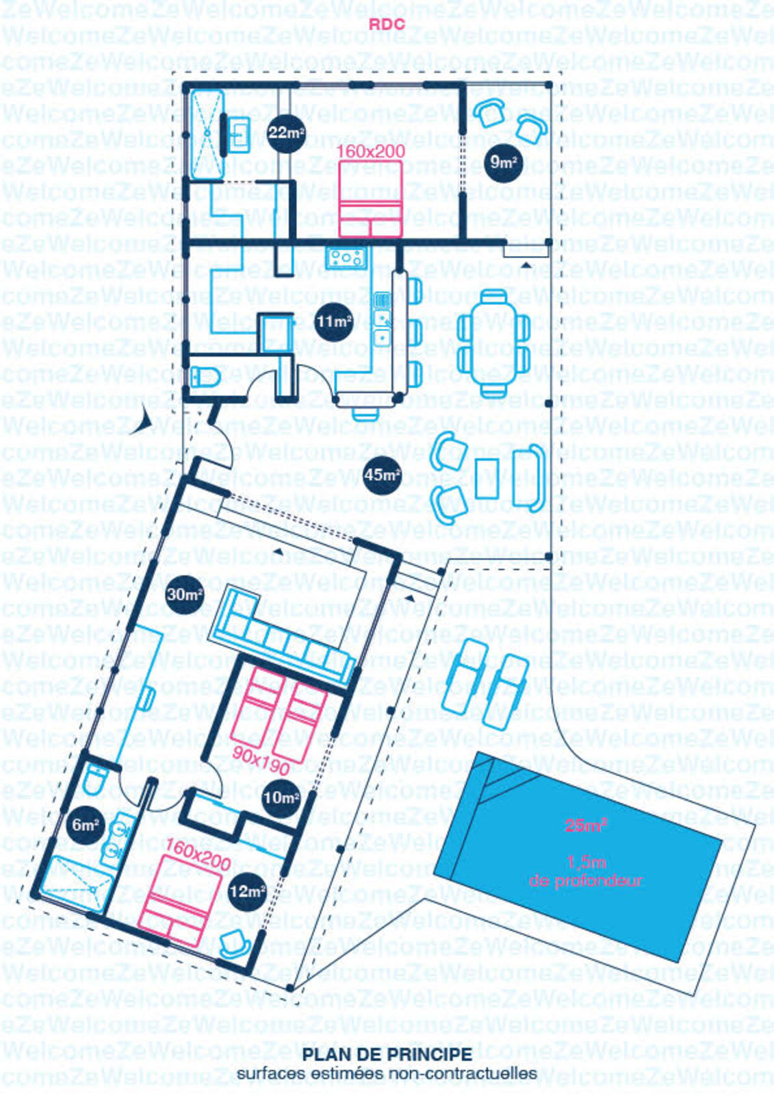 3 bedrooms, 2 of which are furnished with queen size beds and the third with 2 single beds. 2 bathrooms, one of which is integrated into the master bedroom. The calm, the charm and the une conciergerie will be in the appointment of your vacations.