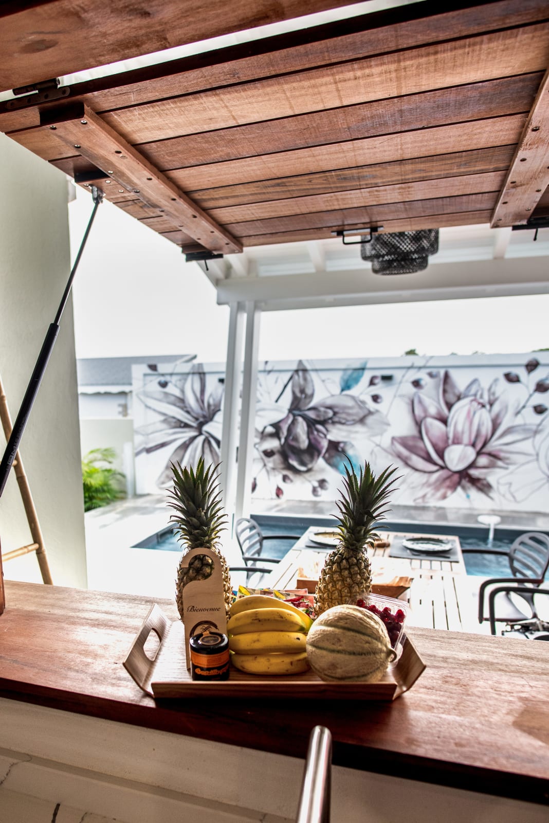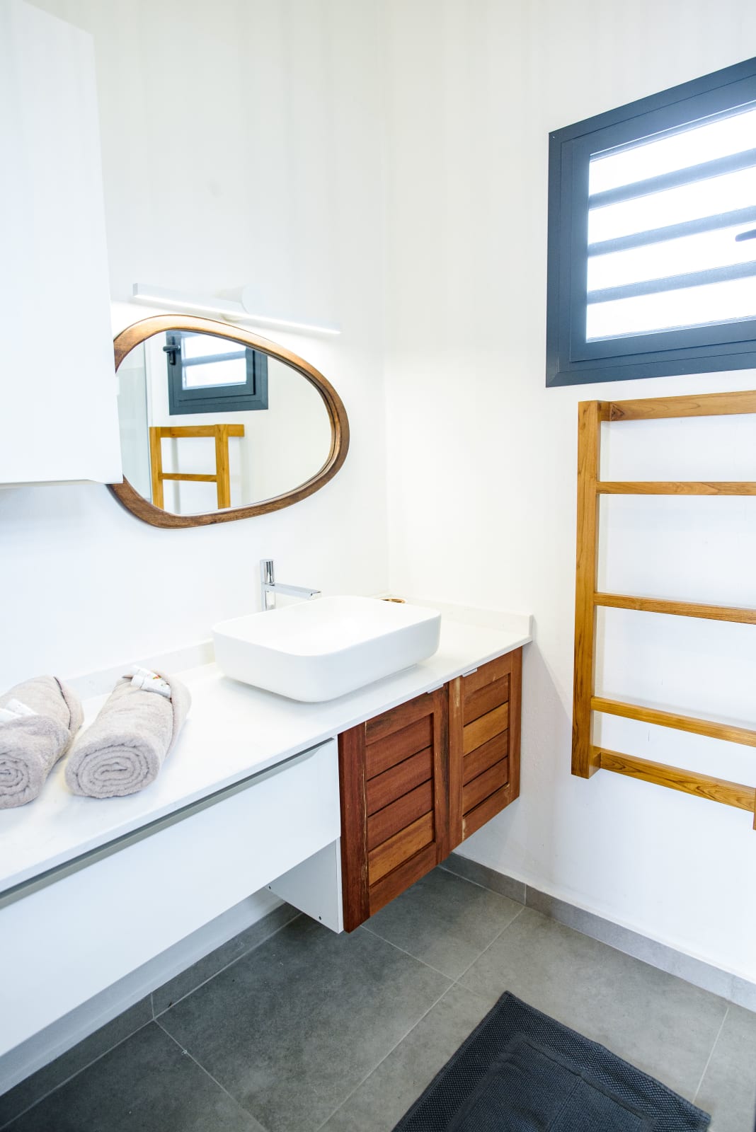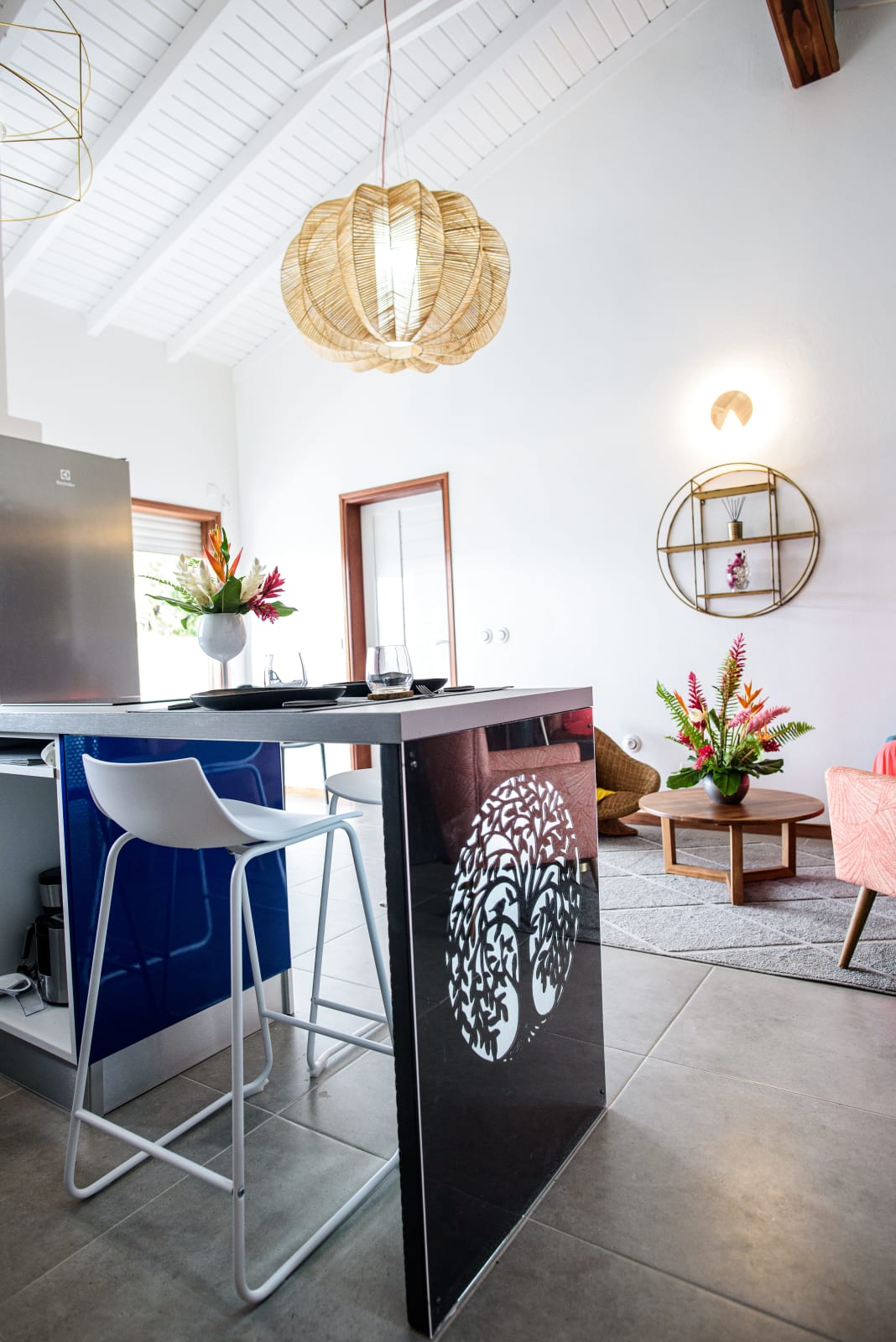 Villa Ethiny is nestled in the commune of Le Moule on Grande-Terre, Guadeloupe. Just 30 minutes from Pointe-à-Pitre airport, it is ideally located for surf enthusiasts, with beaches and famous spots just a 5-minute away by car. Reach the Saint-François Marina in less than 15 minutes for a shopping spree or dinner in one of the many varied restaurants. Explore the nearby Saint-François International Golf Course, Casino and Aerodrome. Discover the beautiful beaches of L'Autre Bord, Souffleur and Anse à l'Eau, perfect for relaxing and marvelling.