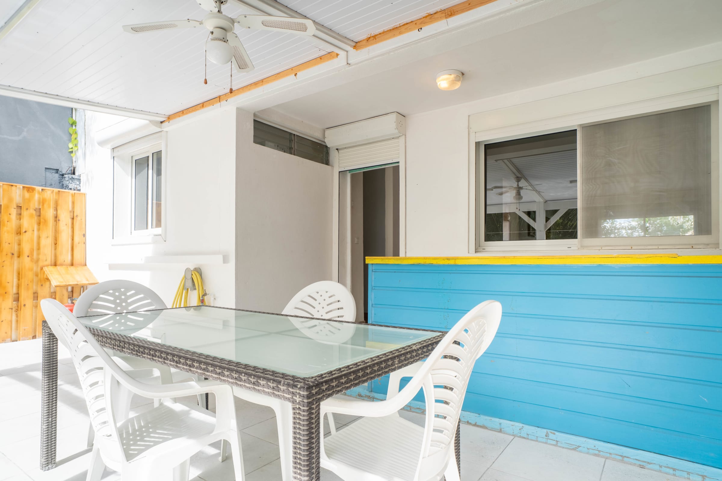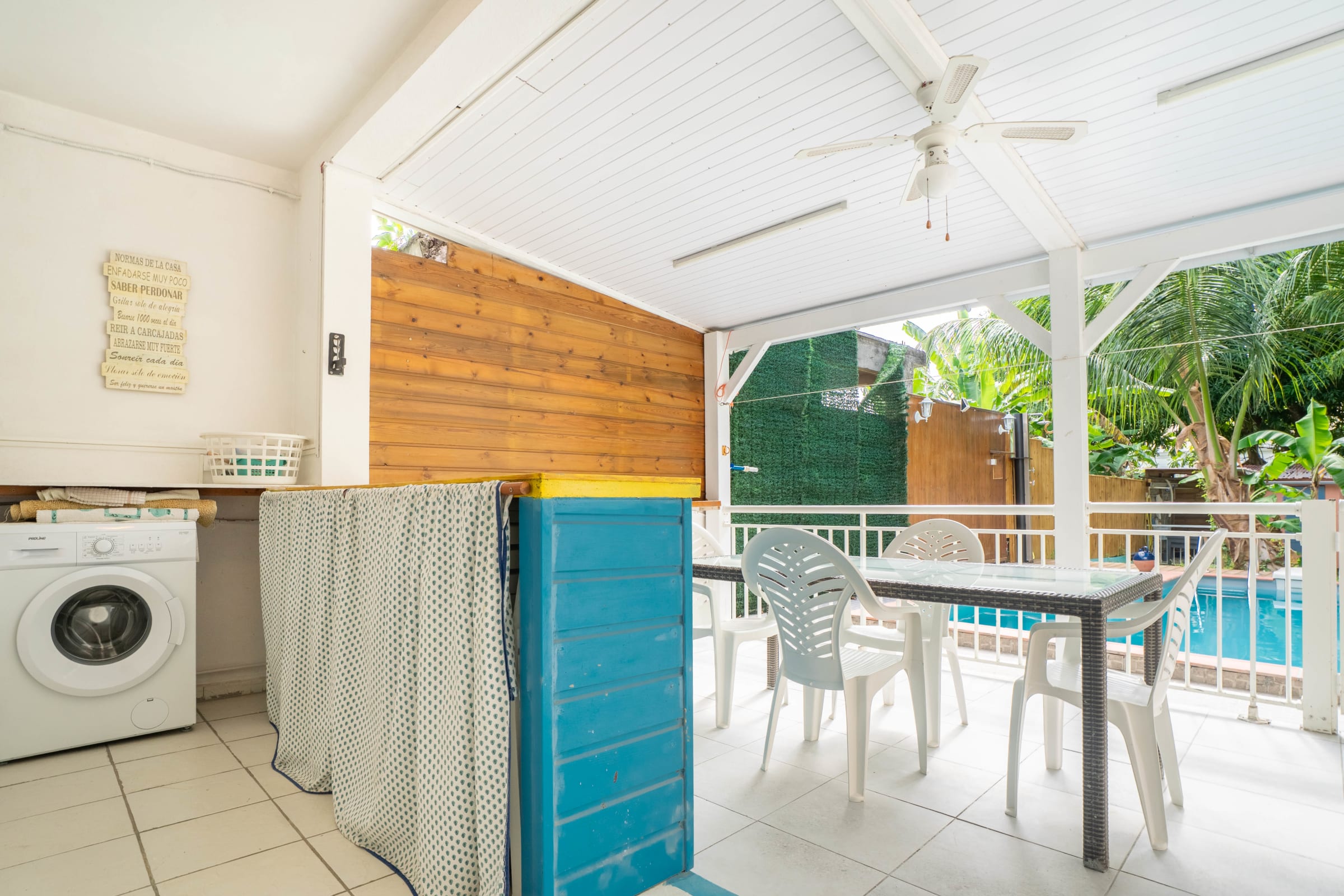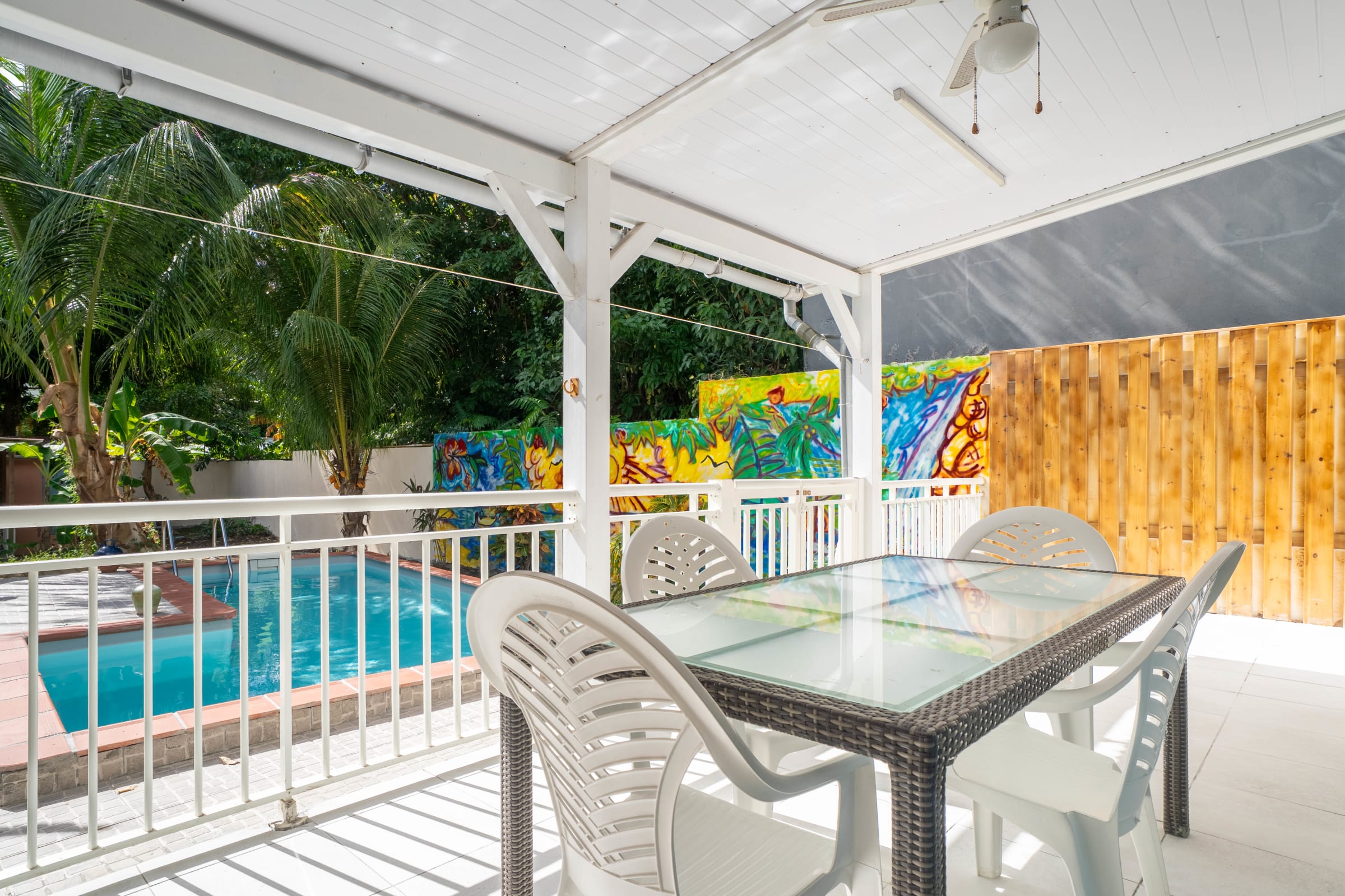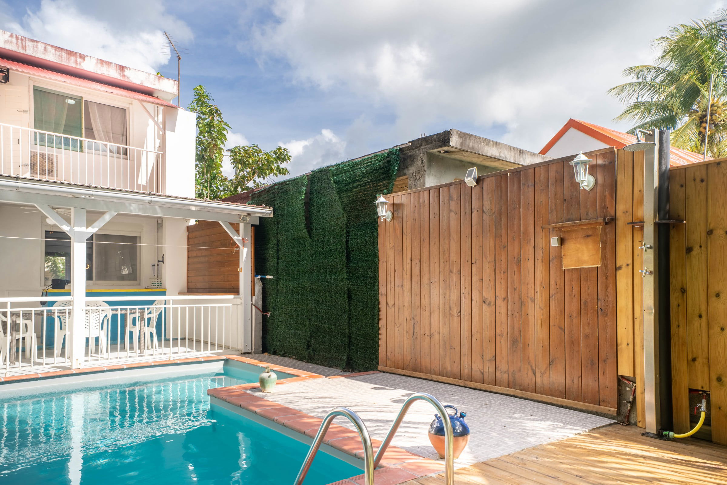 Let yourself be seduced by the tropical garden with its private swimming pool, perfect for relaxing under the Caribbean sun. The covered terrace with a bar area is ideal for convivial aperitifs after a day of exploring. And for surfers, it's the ideal place to relax after an exhilarating session.