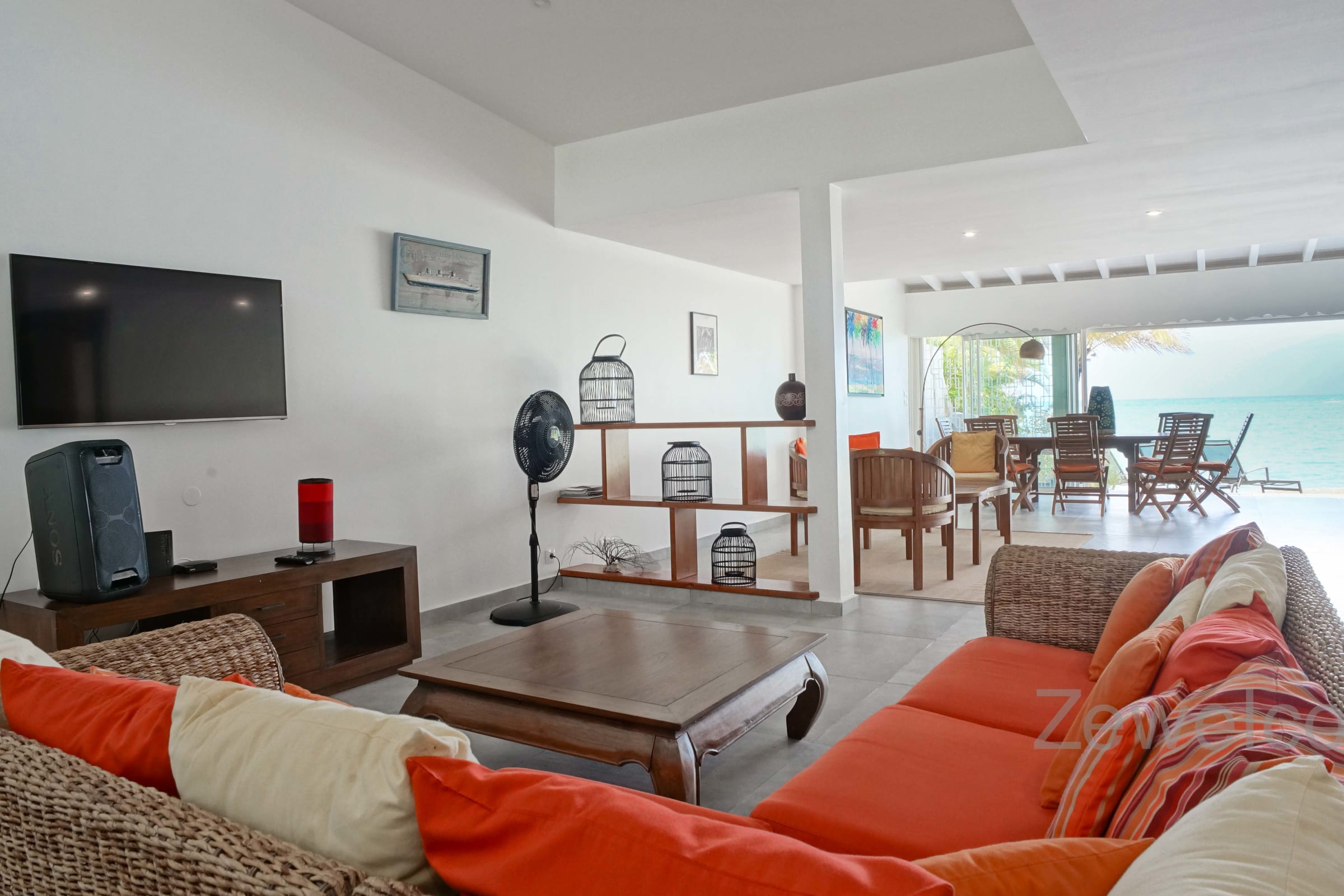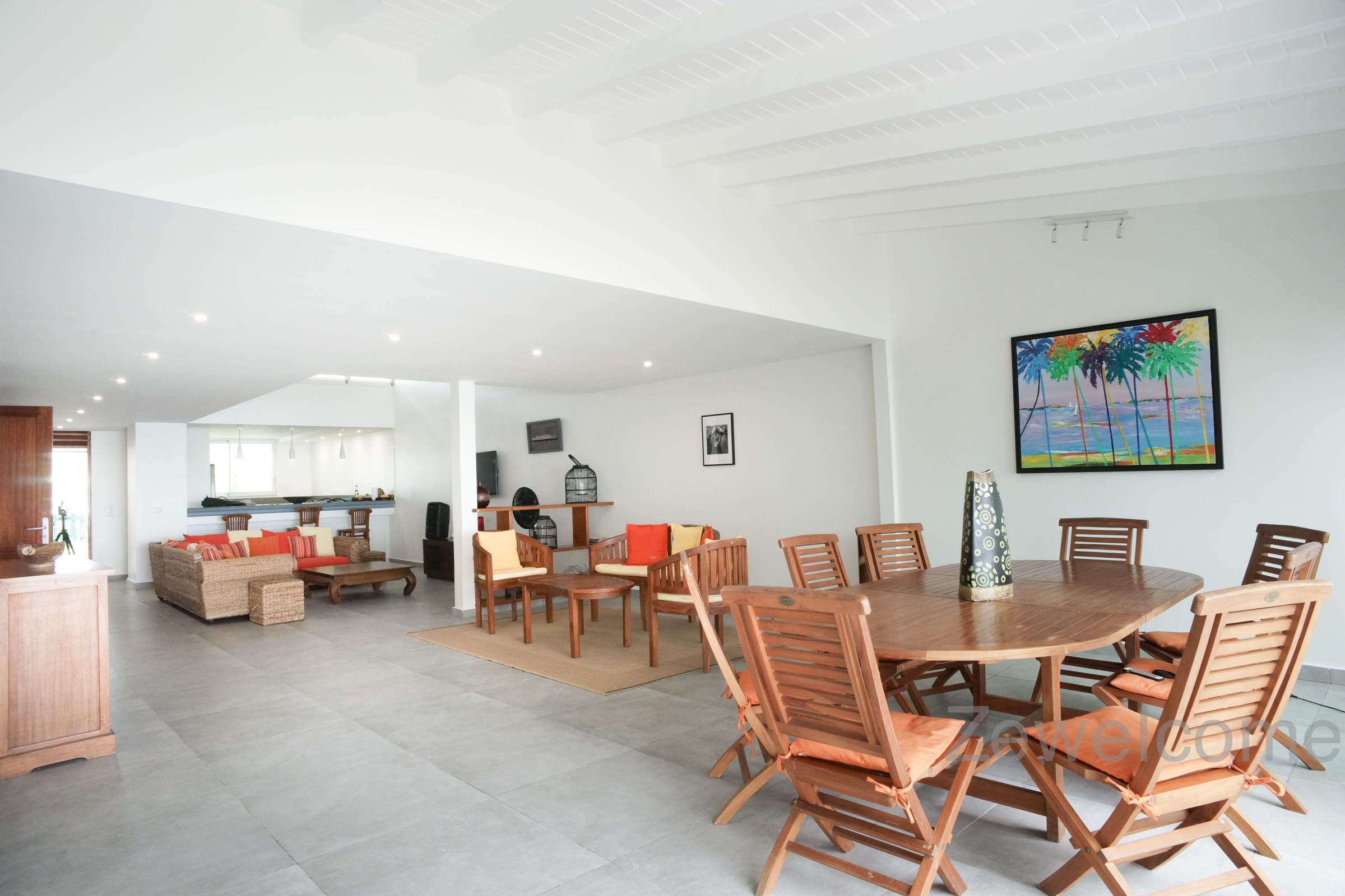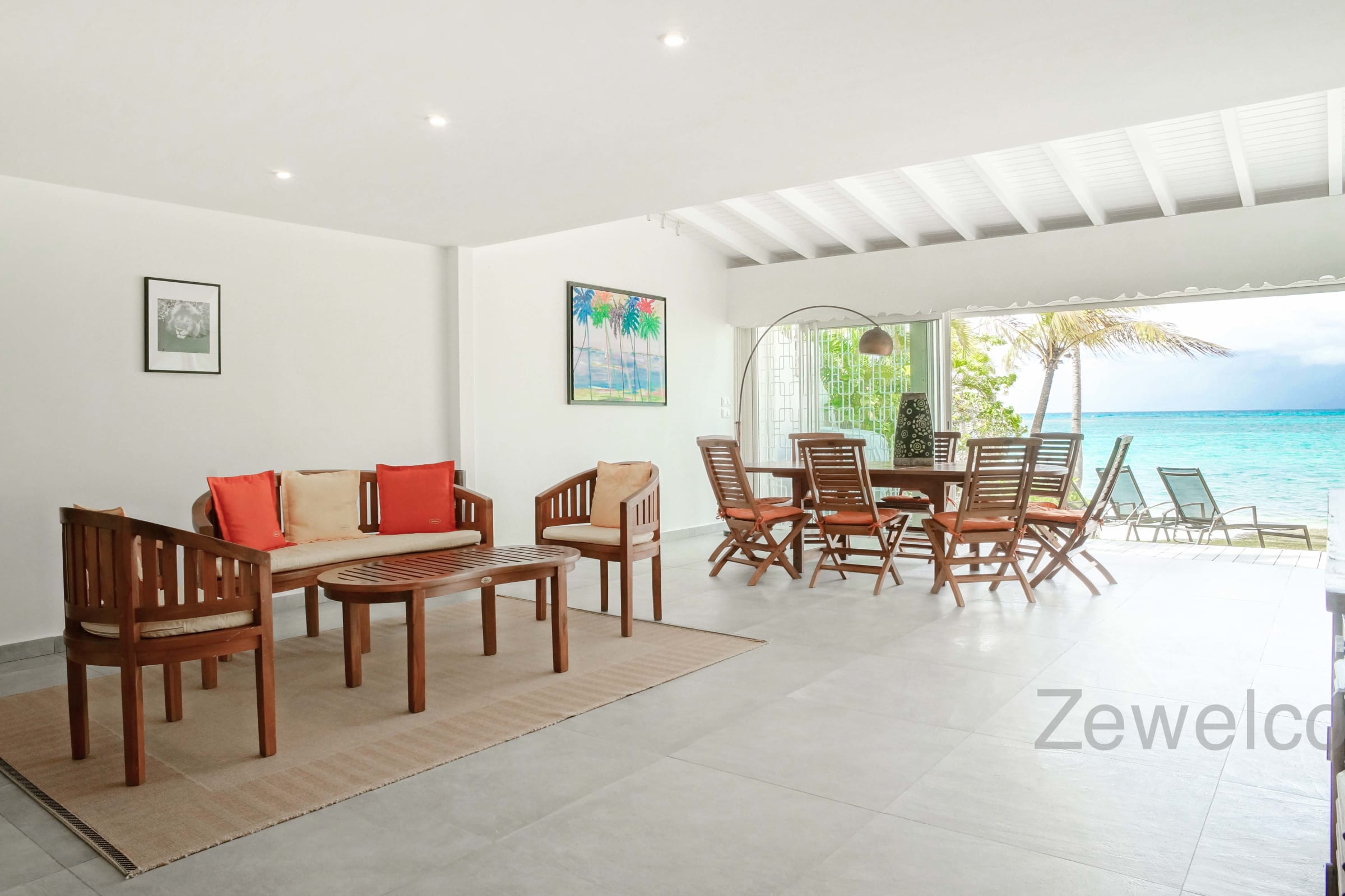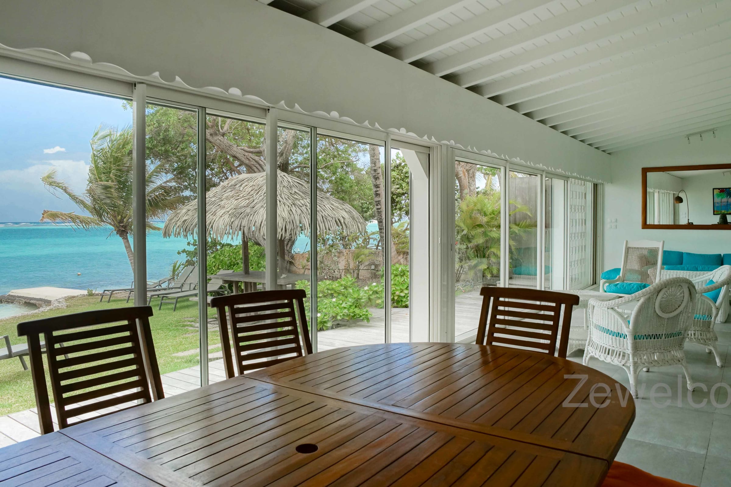Located between the international golf course and the lagoon of Saint François, the villa Liléa has 4 spacious bedrooms with private bathroom and toilet. A large living room, a ventilated terrace, and a carbet at the water's edge to appreciate the softness and calm of the blue waters of the lagoon.
