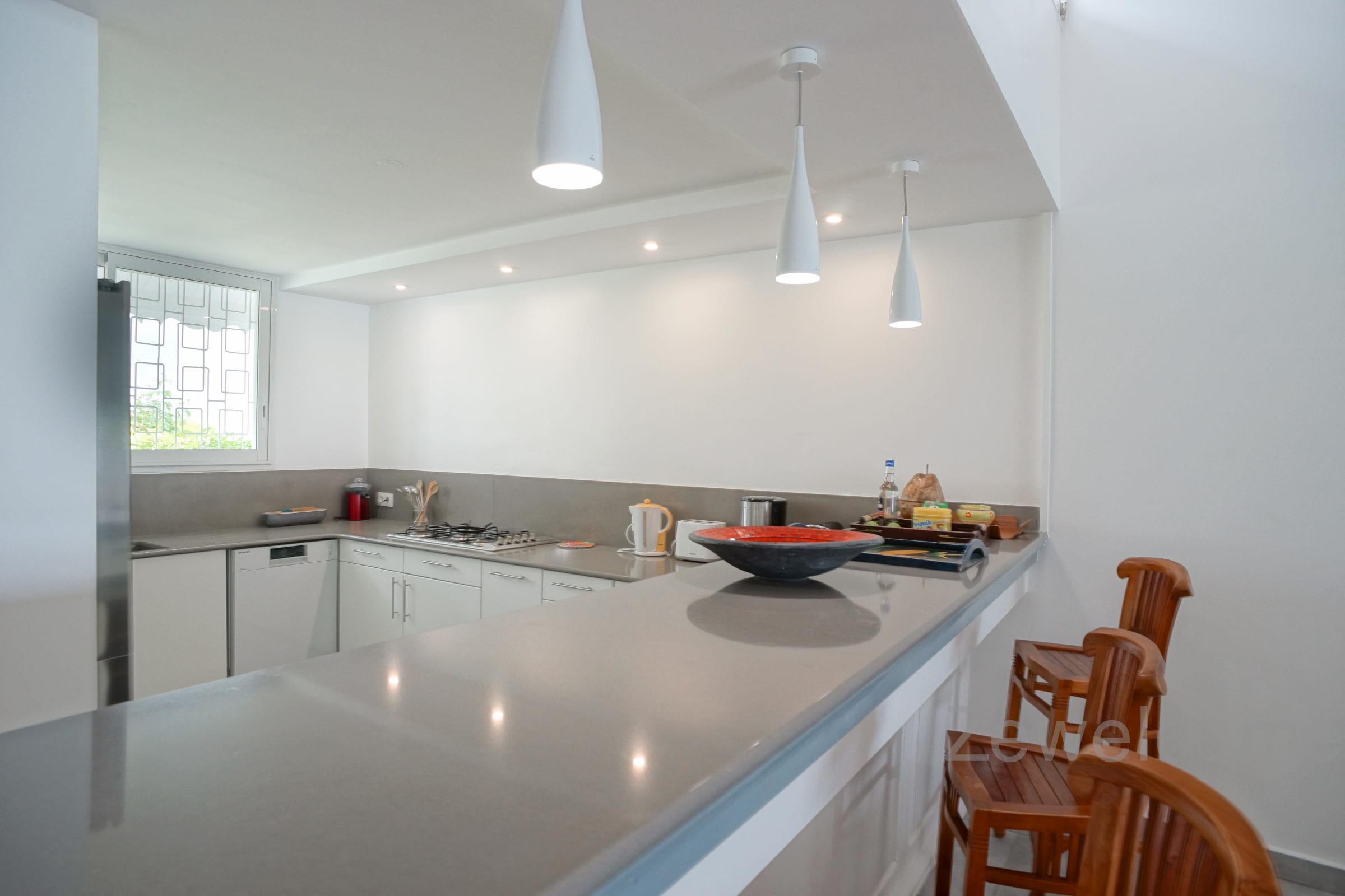 The villa is located in the commune of Saint-François, on the eastern part of Guadeloupe called Grande-Terre. At 45 minutes drive from Pointe-à-Pitre airport, it will take you less than 5 minutes to reach the town of Saint-François and find all the conveniences: shopping area, supermarket, bakery, pharmacy, fish and spice market.
