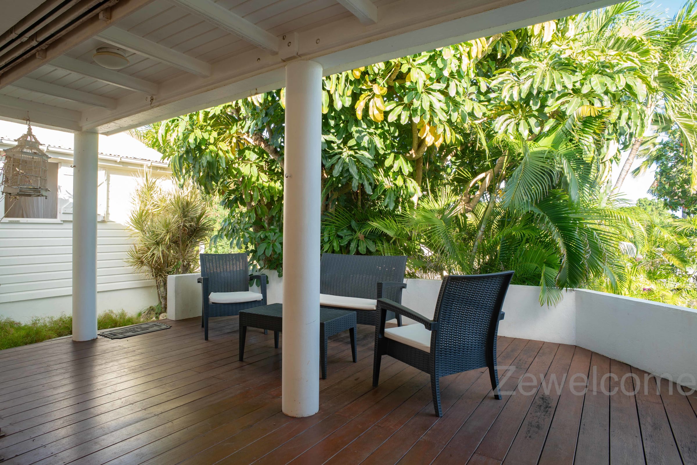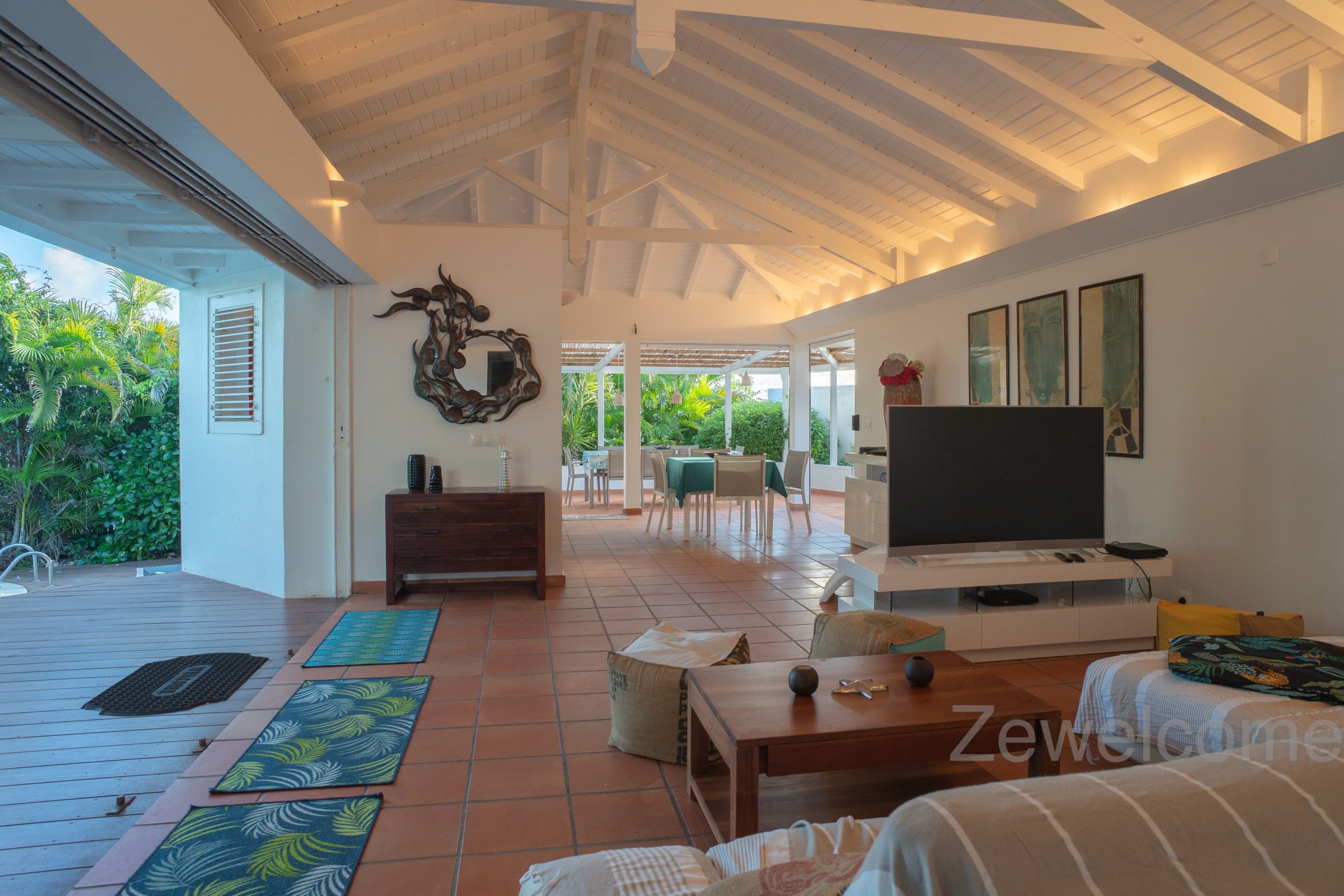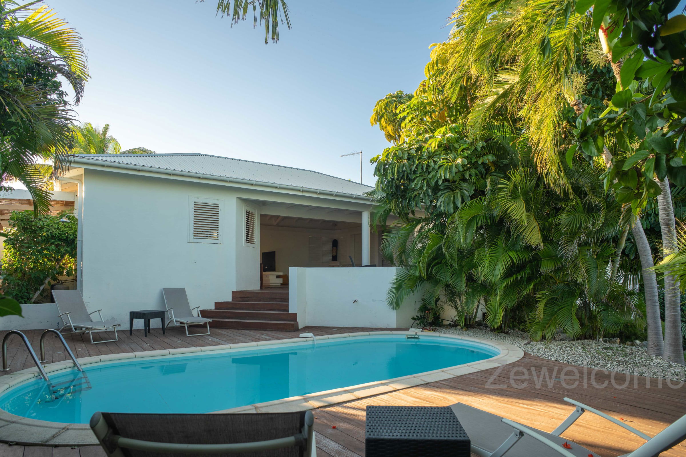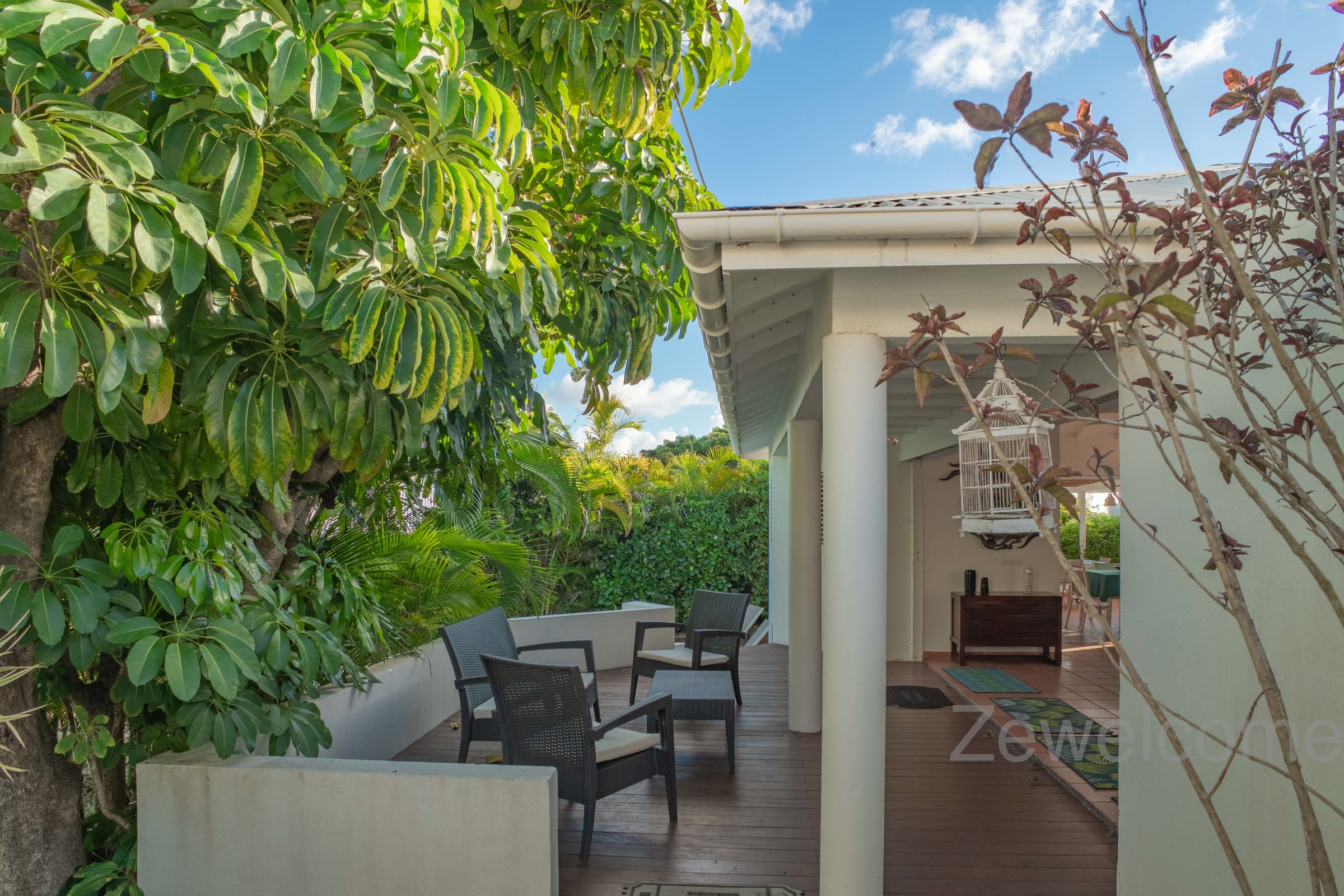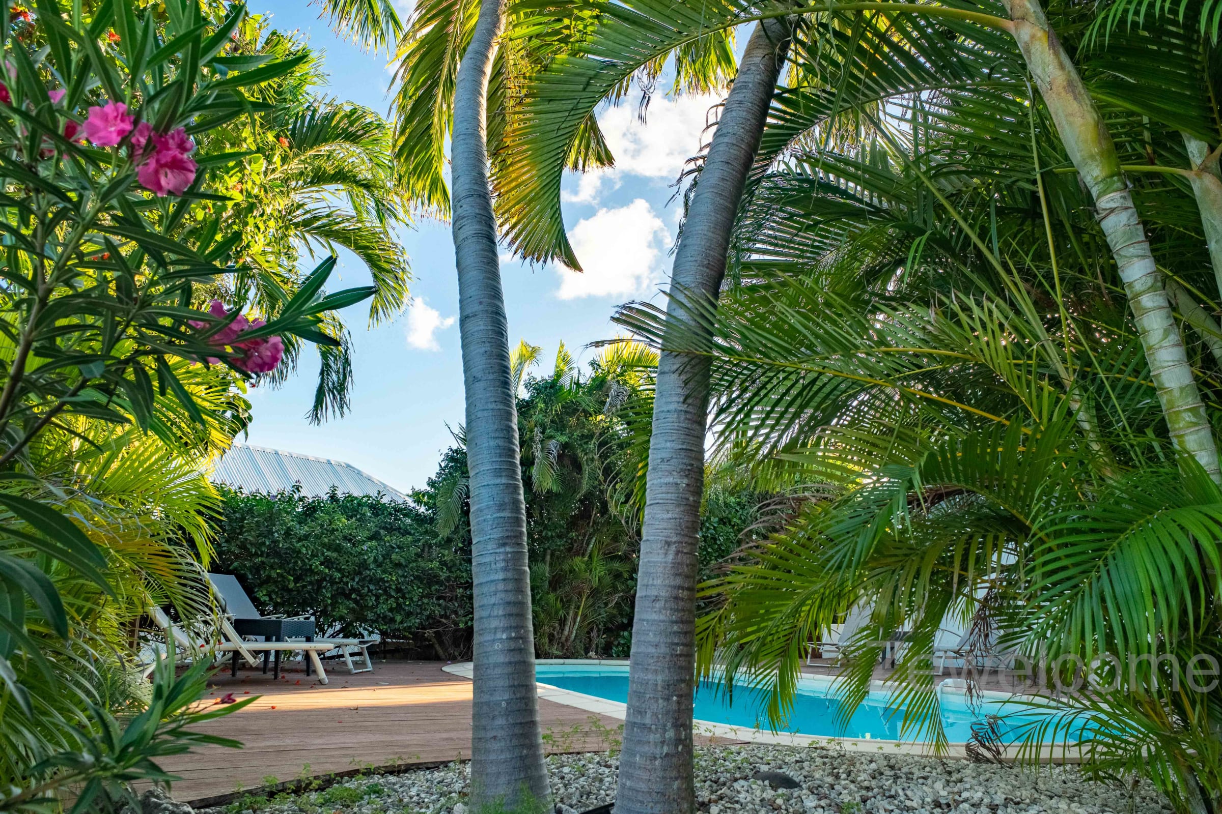 Ventilated and luminous thanks to a design thought for life in the tropics. Wide open living room facing the two terraces and the pool on deck. American kitchen. 4 air-conditioned bedrooms furnished with 160cm bedding for 3 of them and 2 140cm beds for the fourth. 3 spacious bathrooms, nicely planted with fruit trees and flowers. Rest in peace and enjoy the sweetness of life in the tropics.