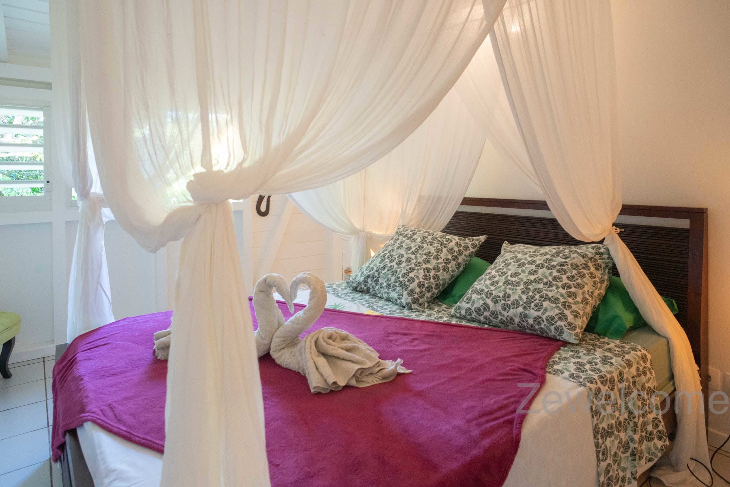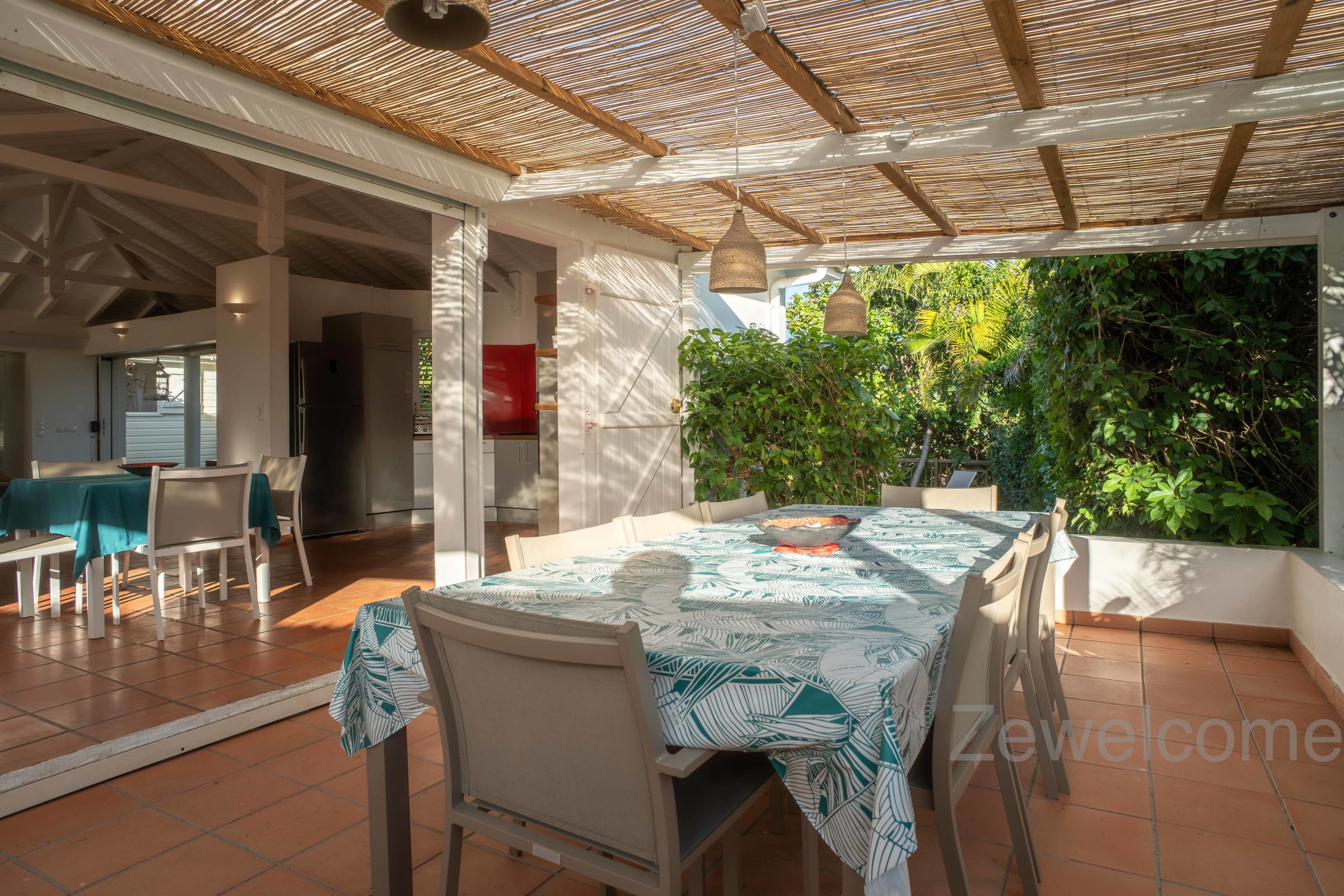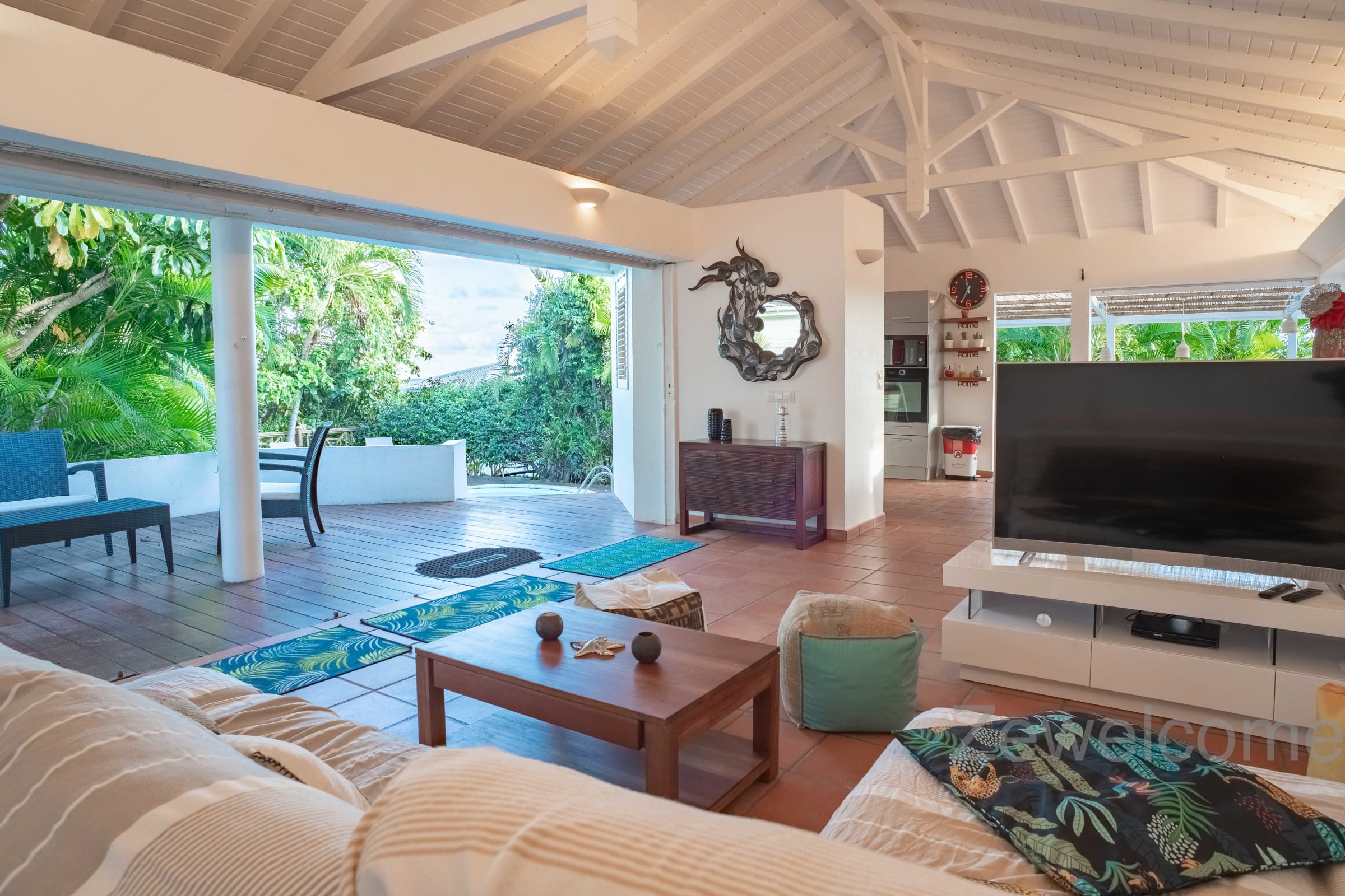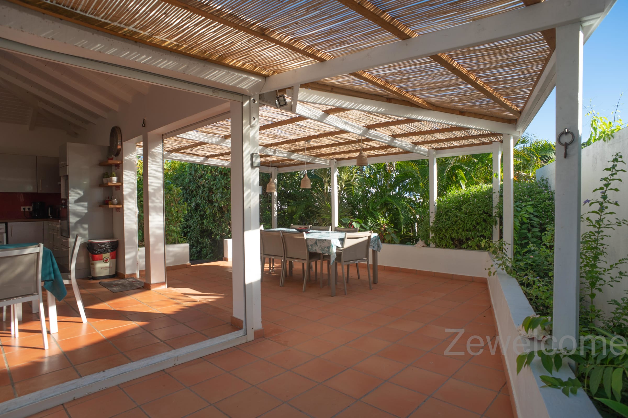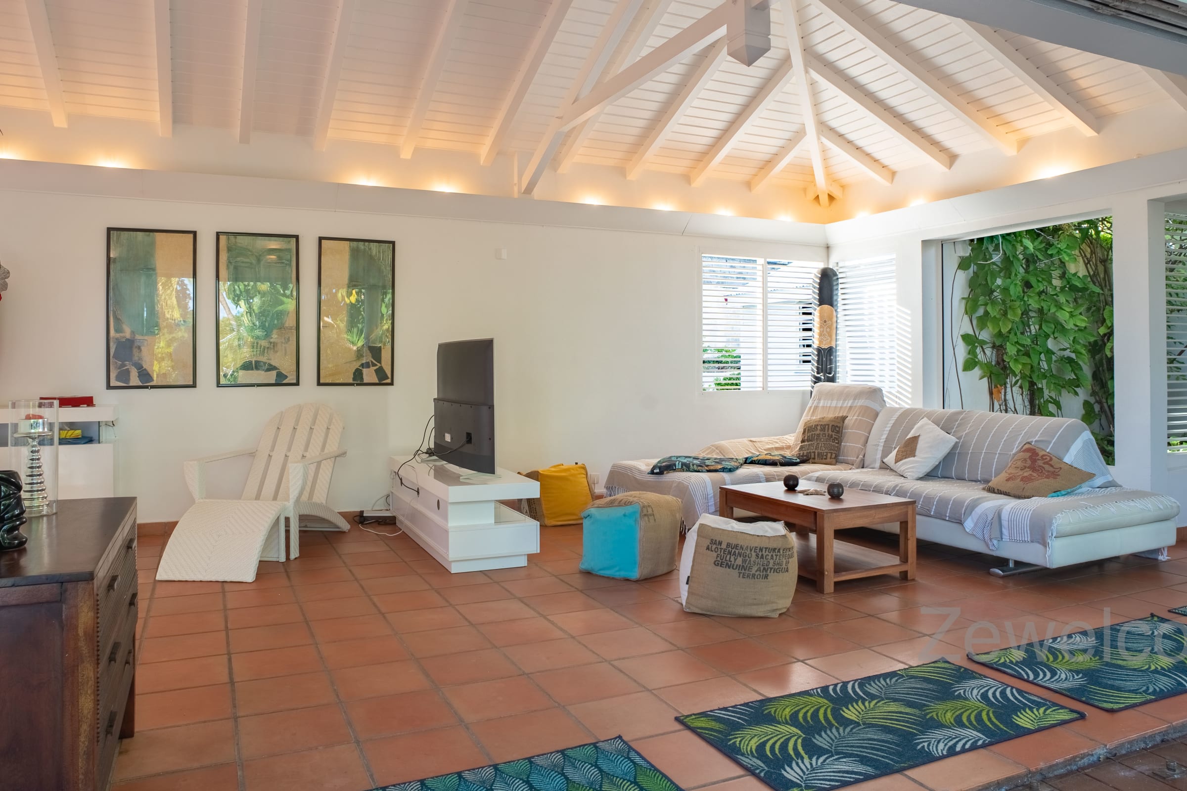 Ventilated and luminous thanks to a design thought for life in the tropics. Wide open living room facing the two terraces and the pool on deck. American kitchen. 4 air-conditioned bedrooms furnished with 160cm bedding for 3 of them and 2 140cm beds for the fourth. 3 spacious bathrooms, nicely planted with fruit trees and flowers. Rest in peace and enjoy the sweetness of life in the tropics.
