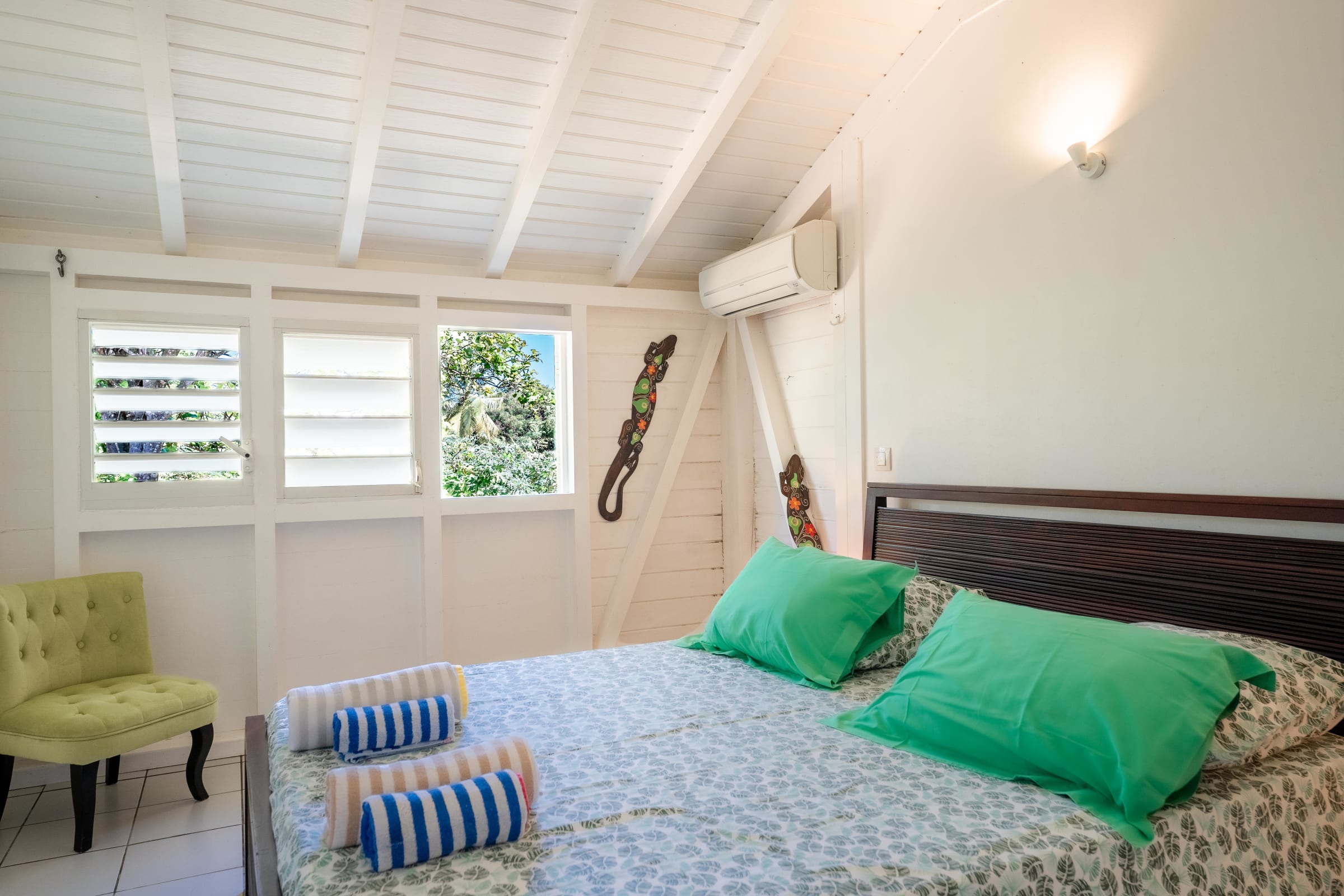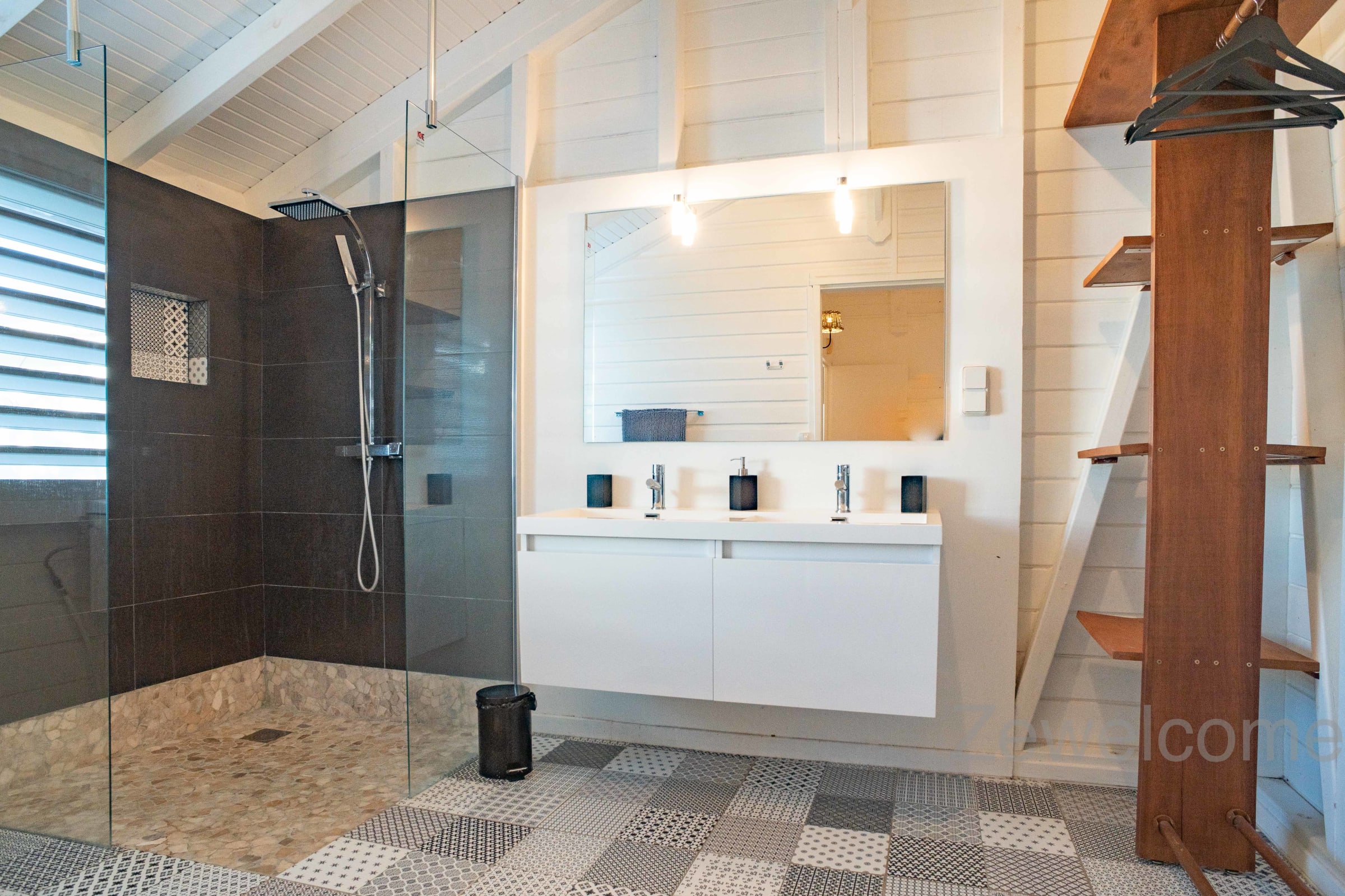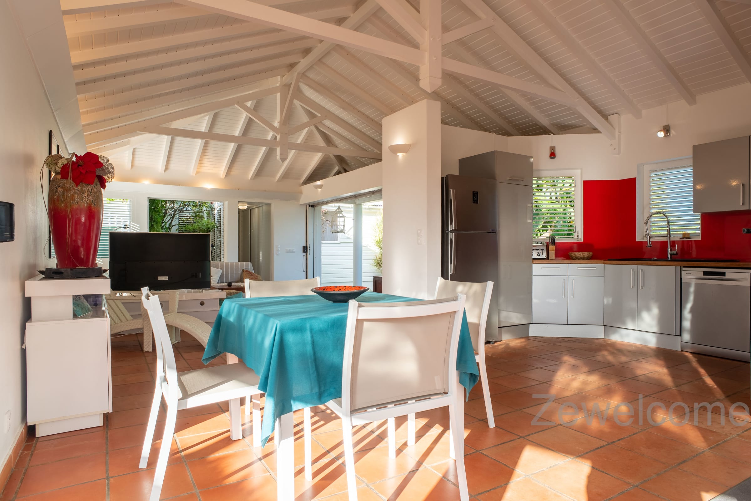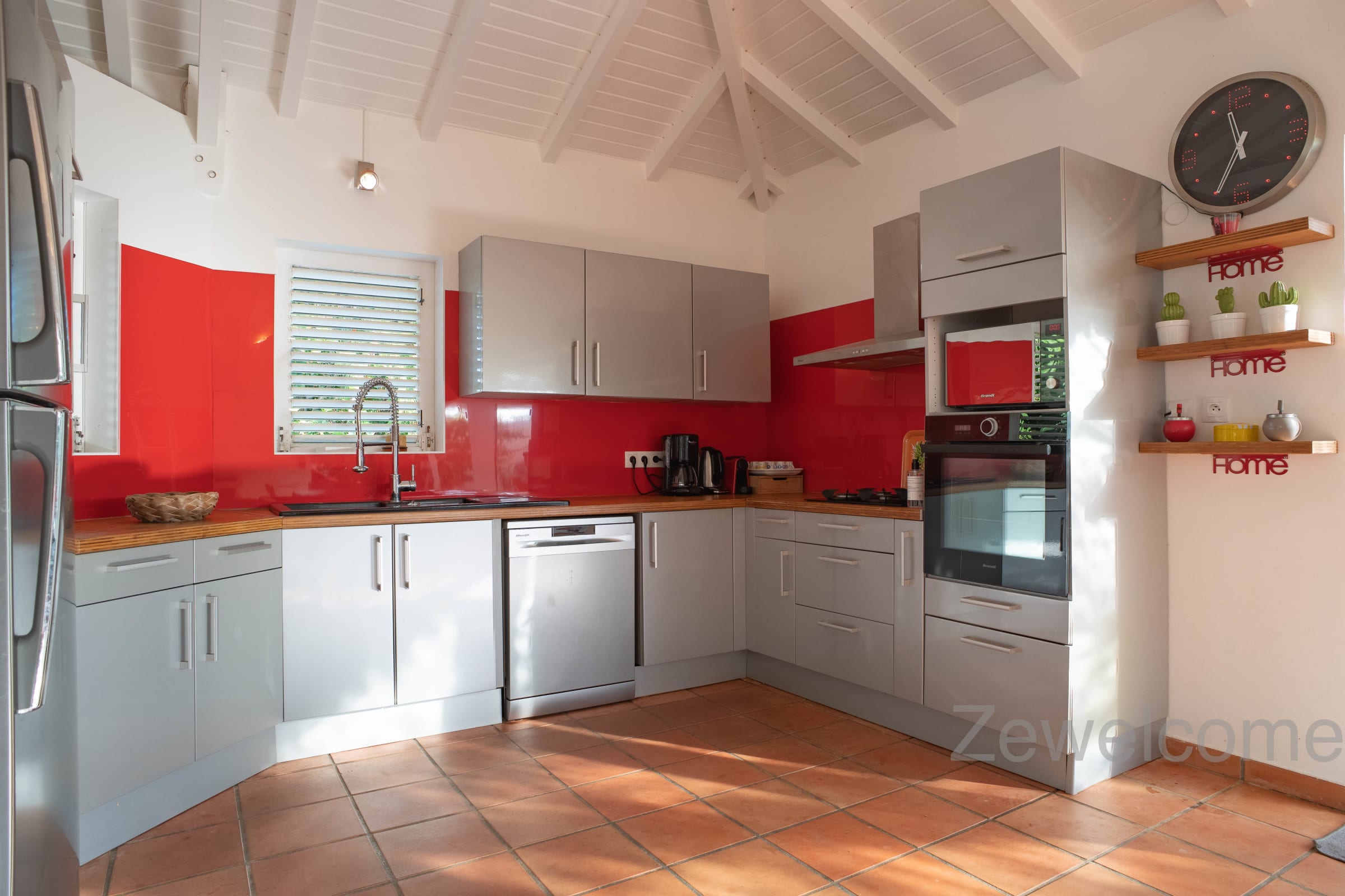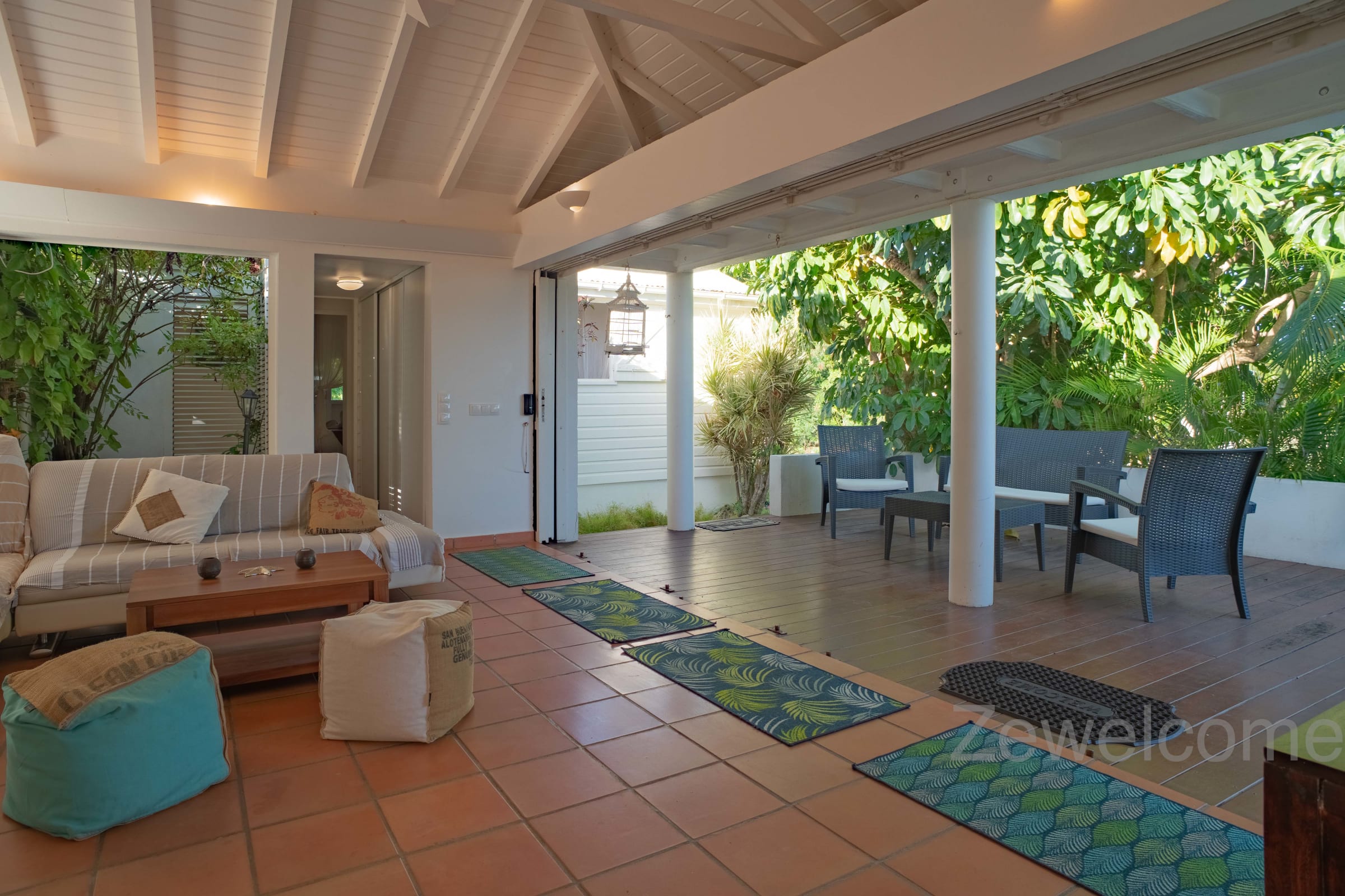Ventilated and luminous thanks to a design thought for life in the tropics. Wide open living room facing the two terraces and the pool on deck. American kitchen. 4 air-conditioned bedrooms furnished with 160cm bedding for 3 of them and 2 140cm beds for the fourth. 3 spacious bathrooms, nicely planted with fruit trees and flowers. Rest in peace and enjoy the sweetness of life in the tropics.