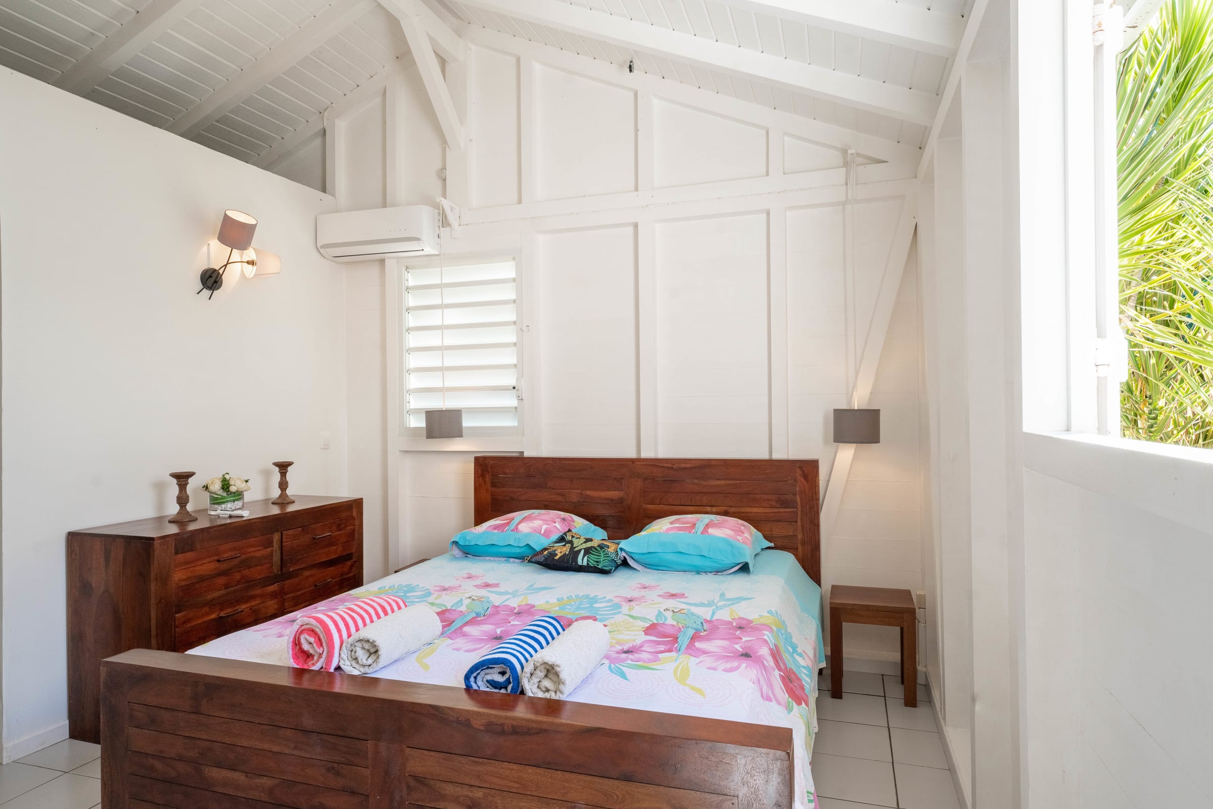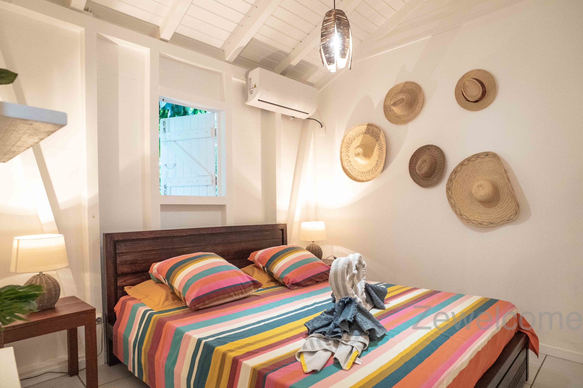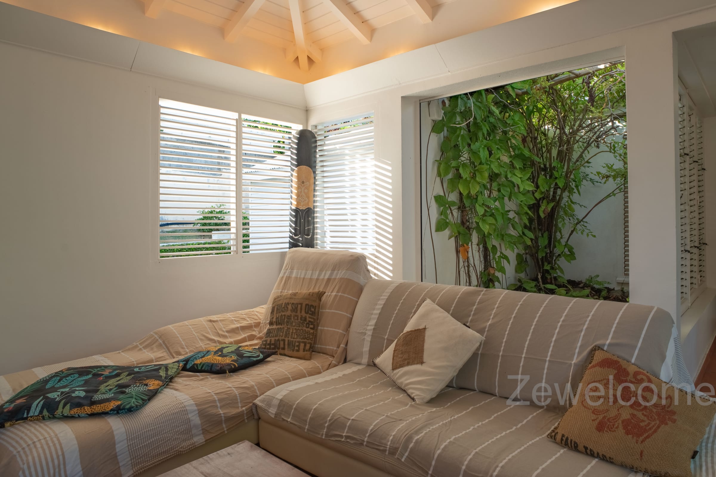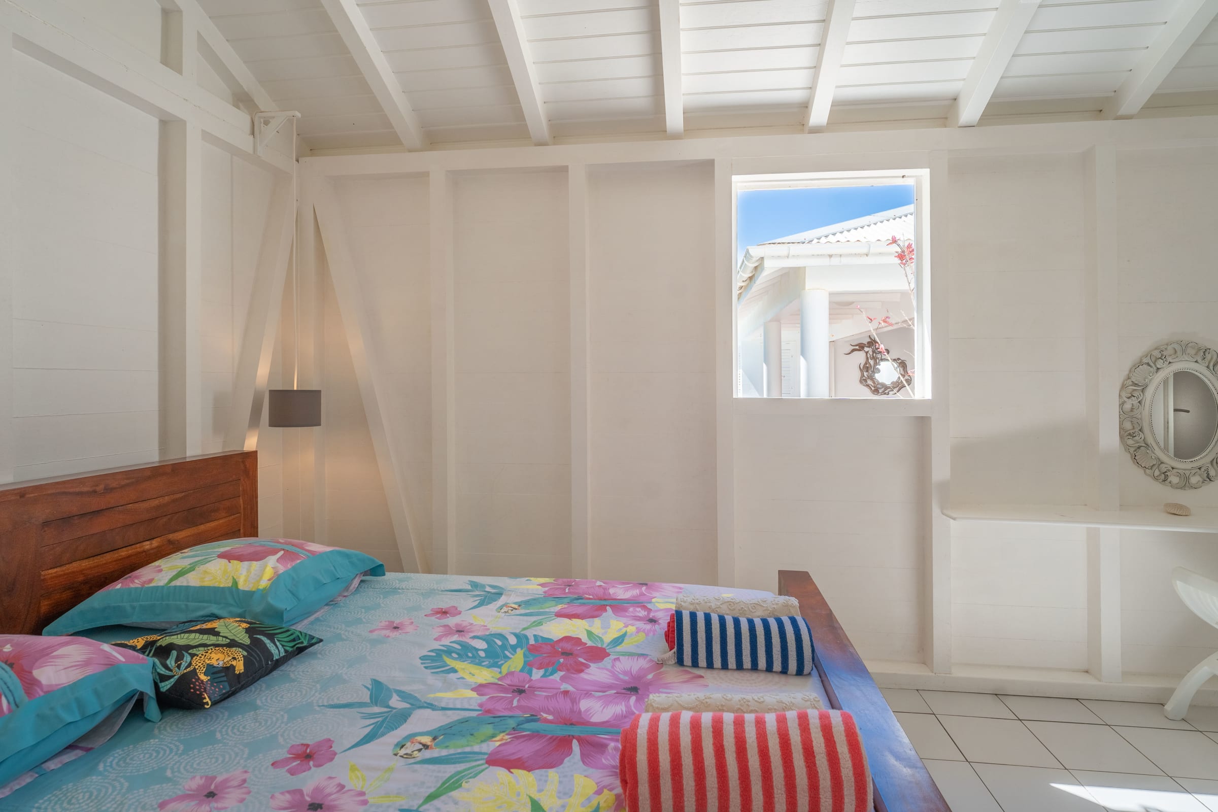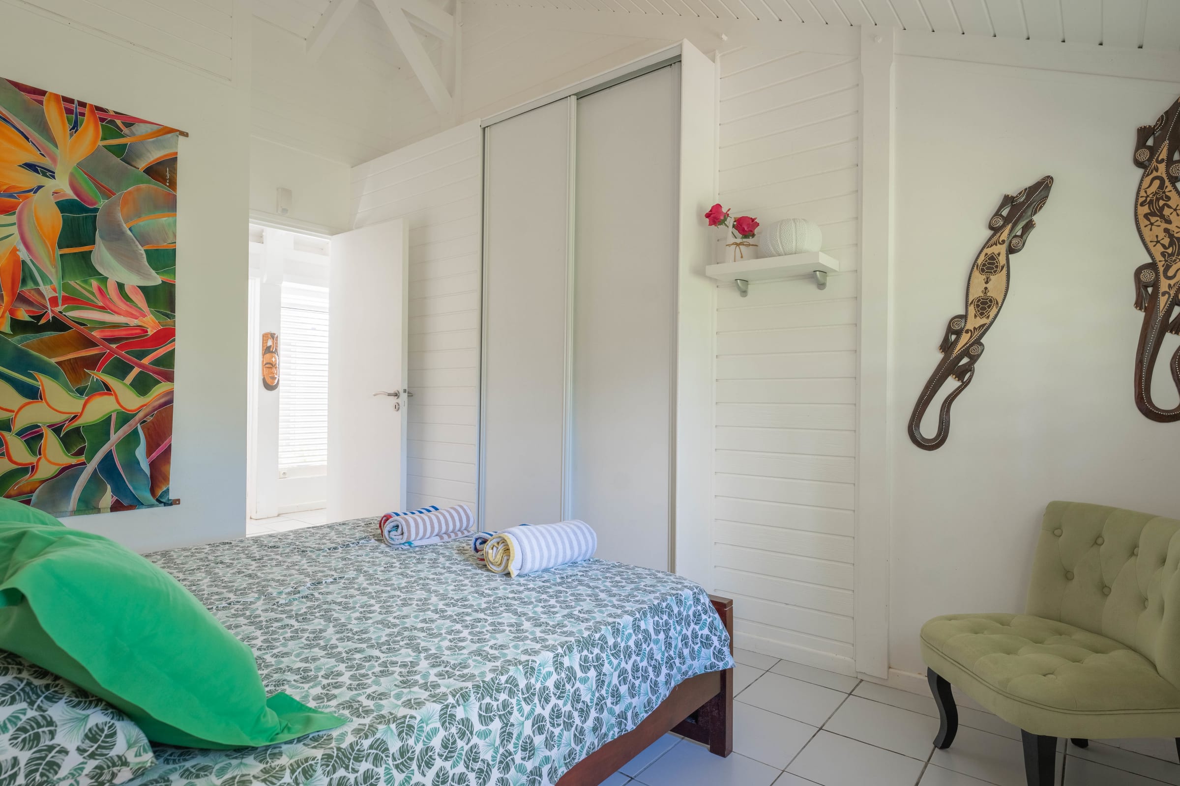 Ventilated and luminous thanks to a design thought for life in the tropics. Wide open living room facing the two terraces and the pool on deck. American kitchen. 4 air-conditioned bedrooms furnished with 160cm bedding for 3 of them and 2 140cm beds for the fourth. 3 spacious bathrooms, nicely planted with fruit trees and flowers. Rest in peace and enjoy the sweetness of life in the tropics.