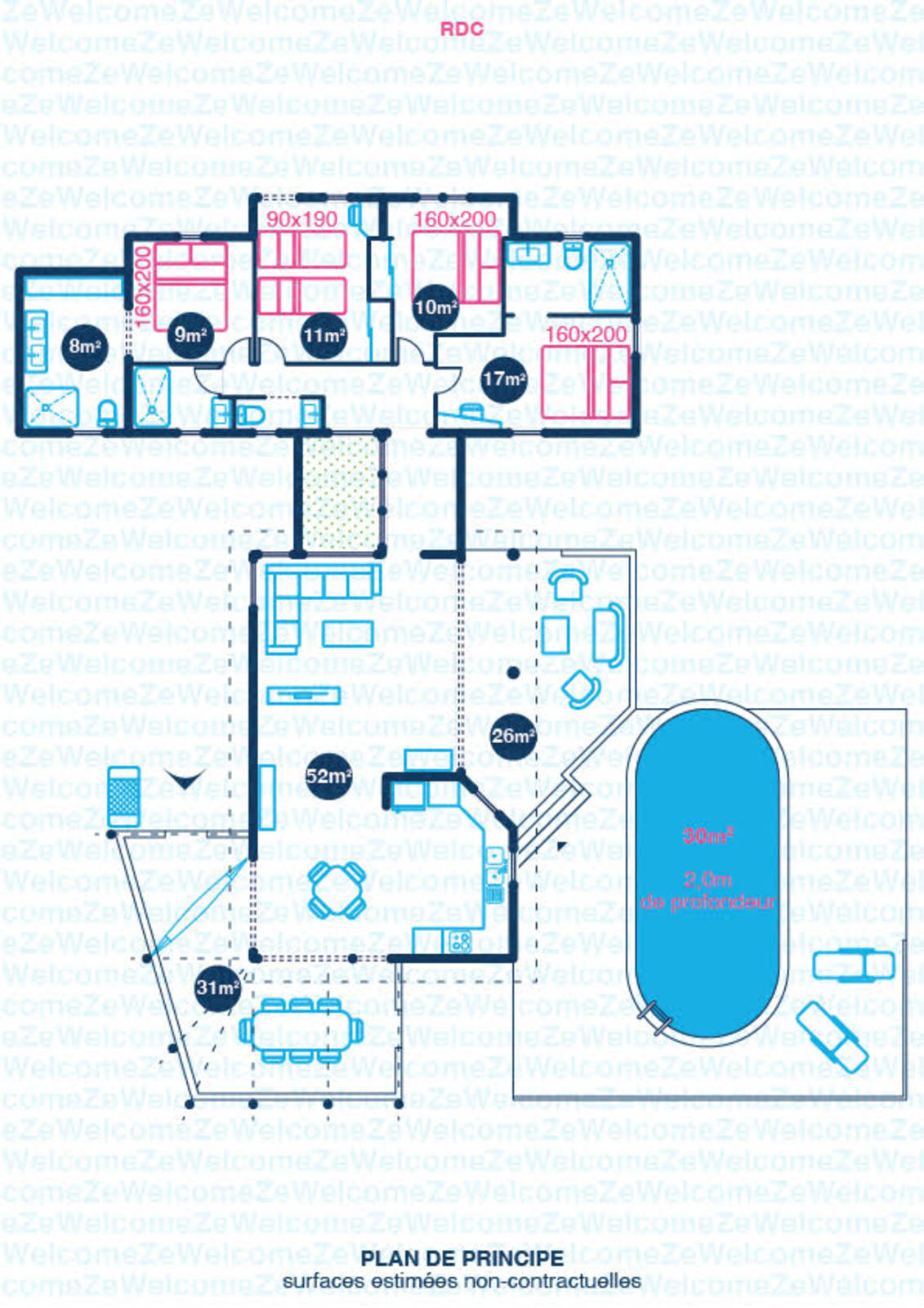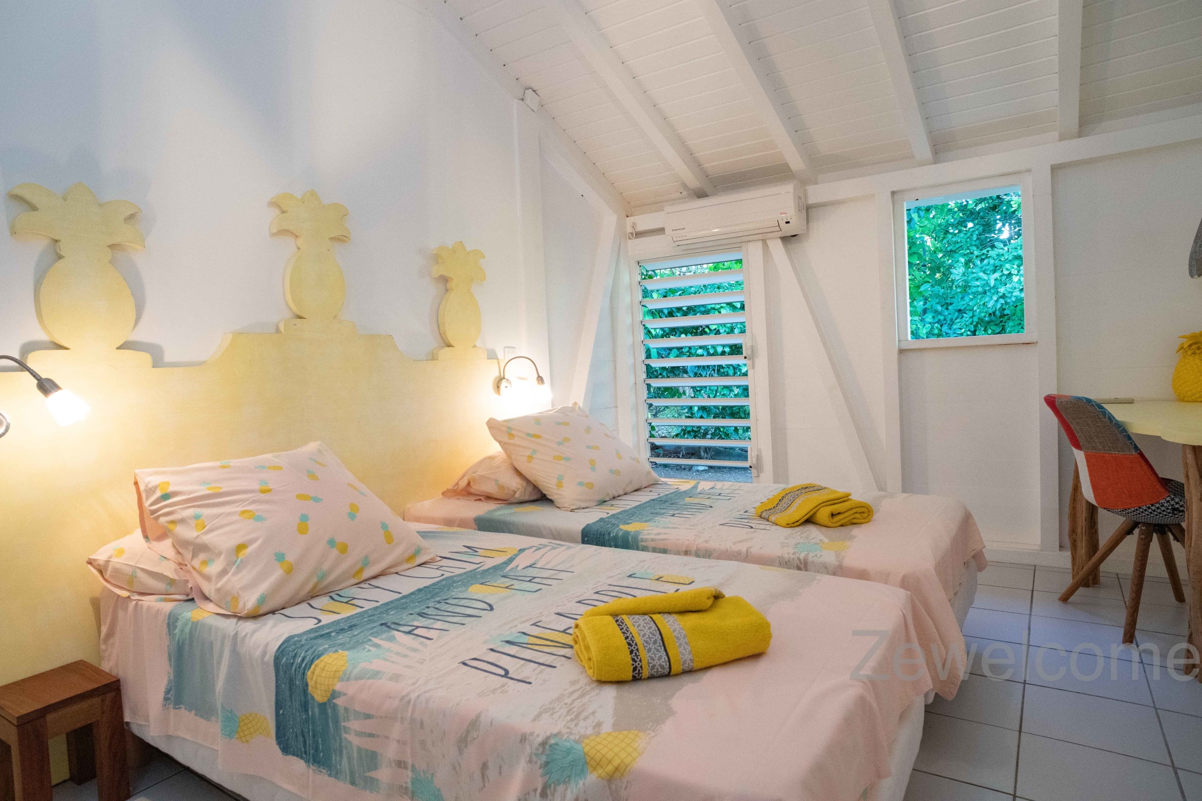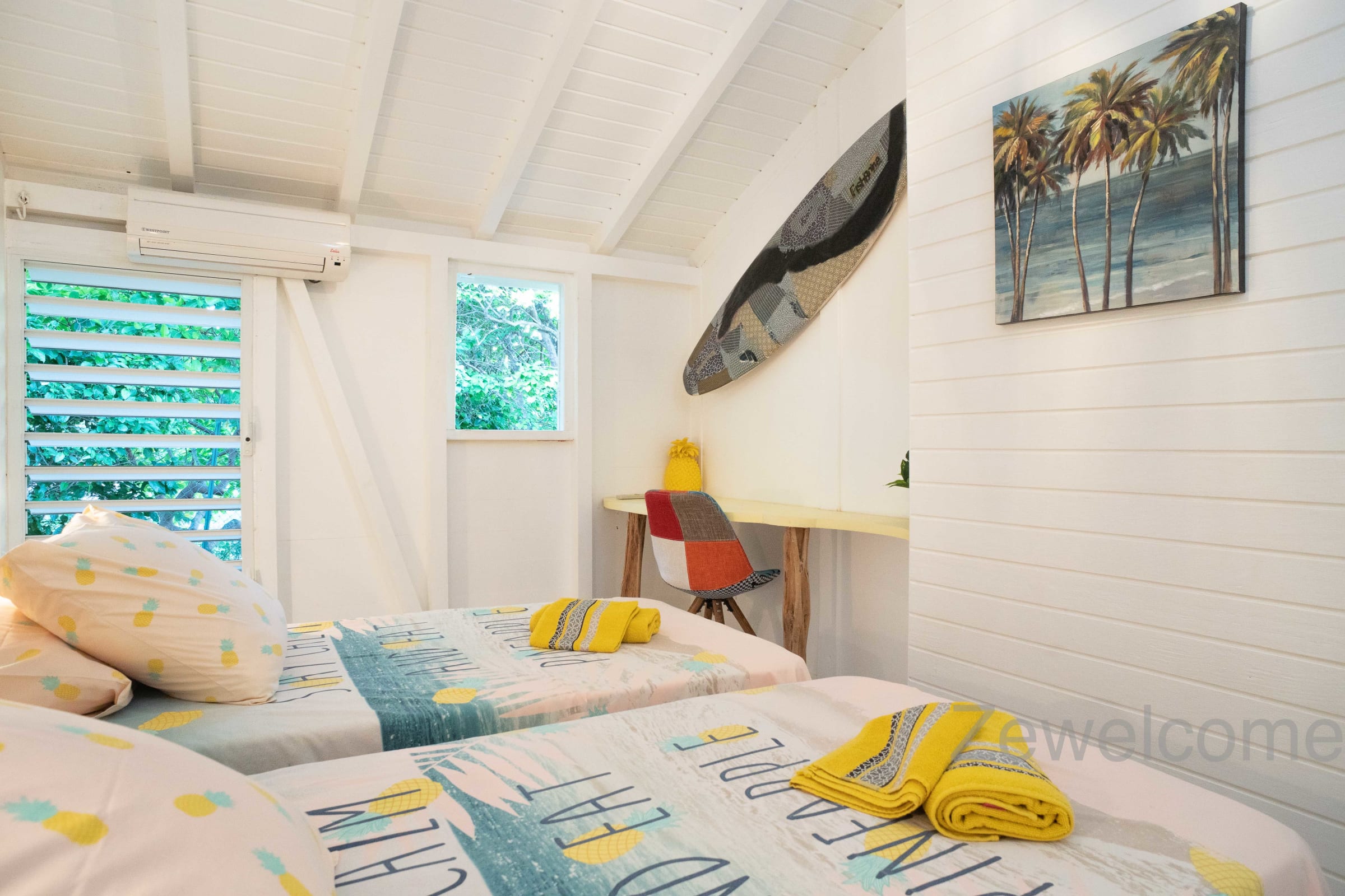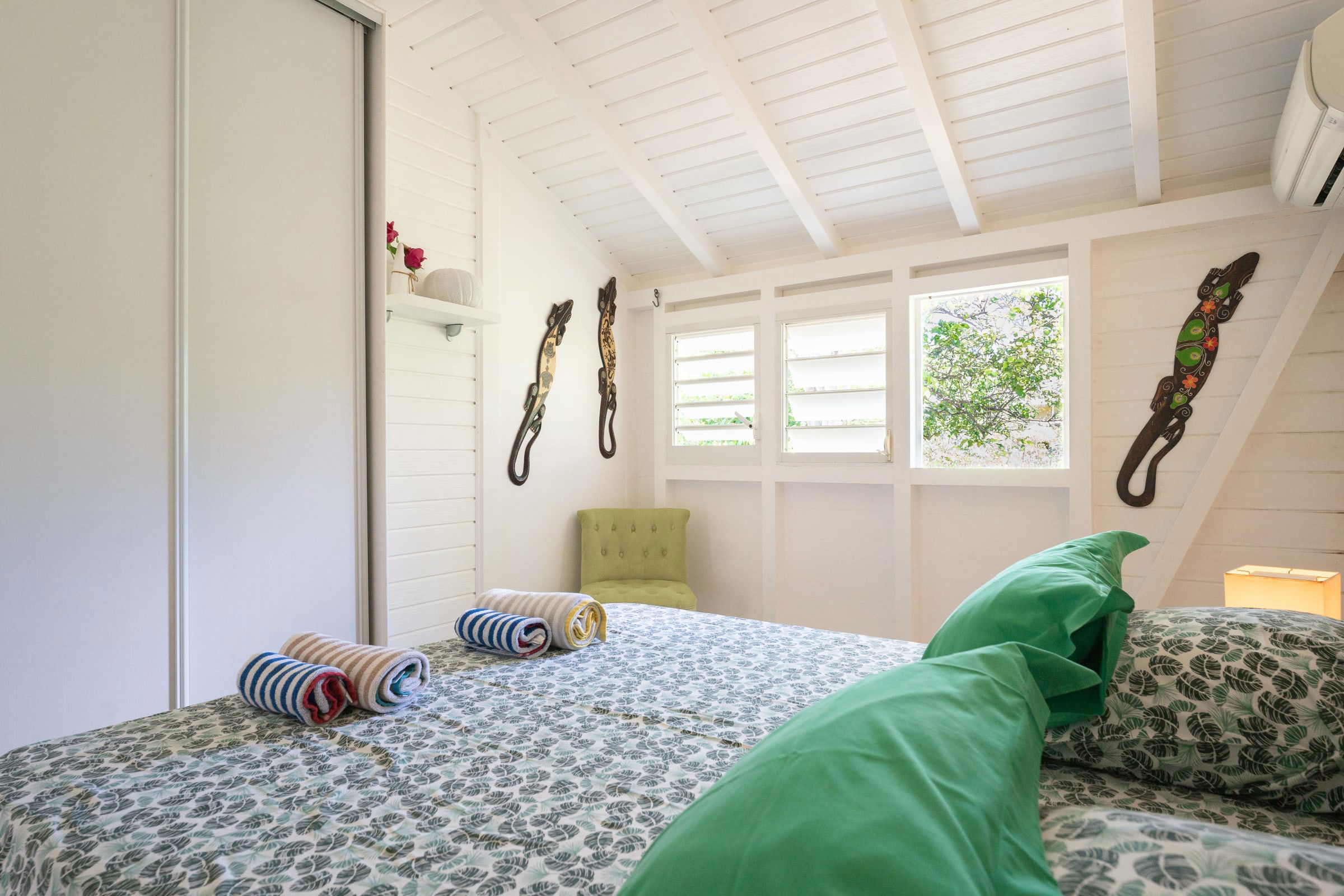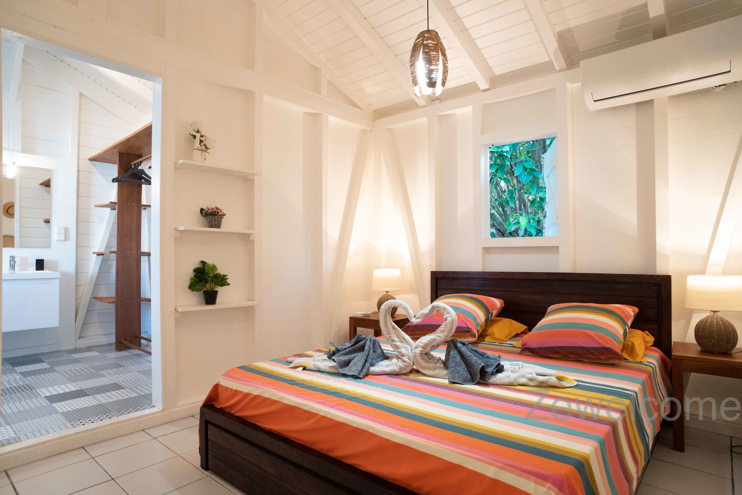 Ventilated and luminous thanks to a design thought for life in the tropics. Wide open living room facing the two terraces and the pool on deck. American kitchen. 4 air-conditioned bedrooms furnished with 160cm bedding for 3 of them and 2 140cm beds for the fourth. 3 spacious bathrooms, nicely planted with fruit trees and flowers. Rest in peace and enjoy the sweetness of life in the tropics.