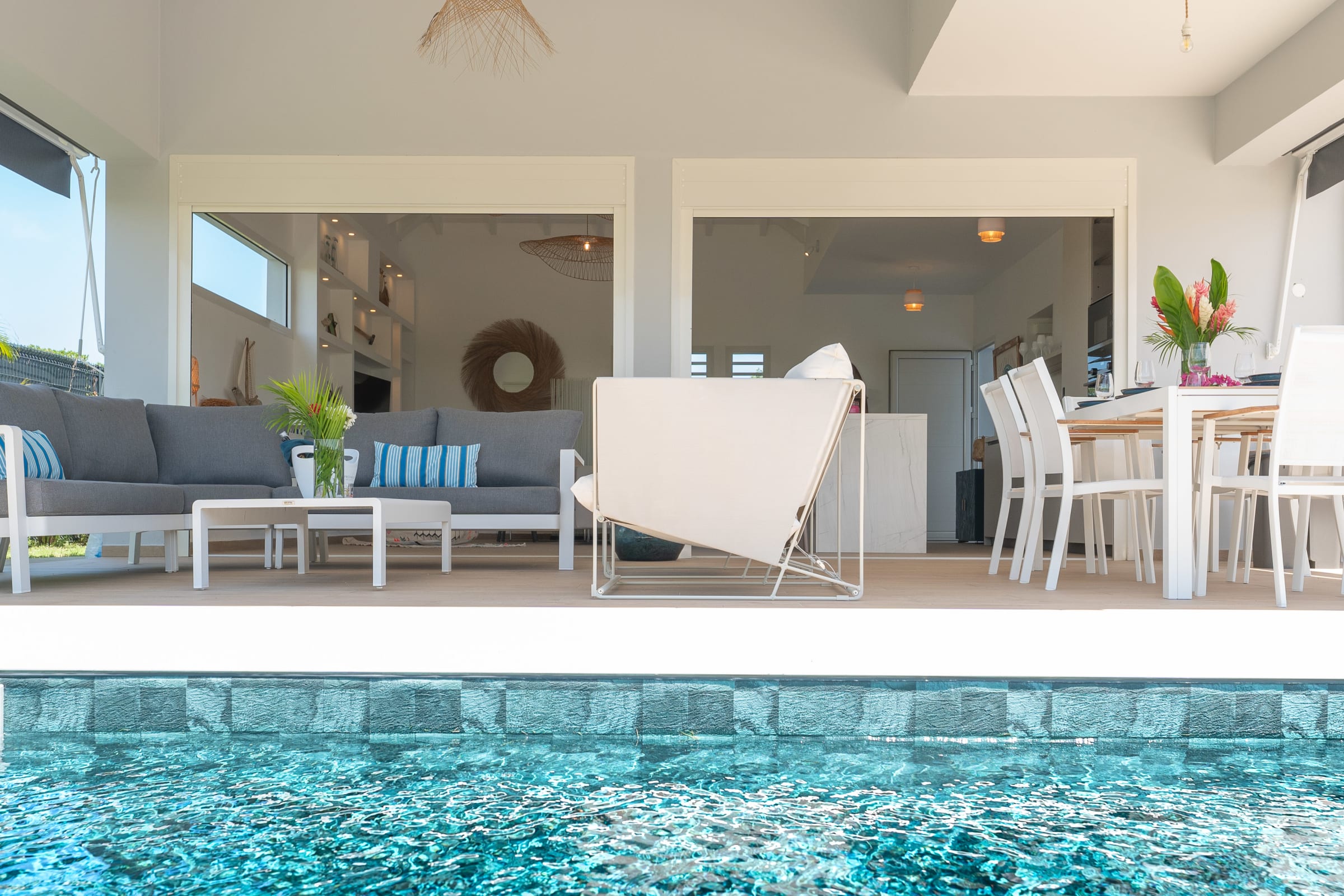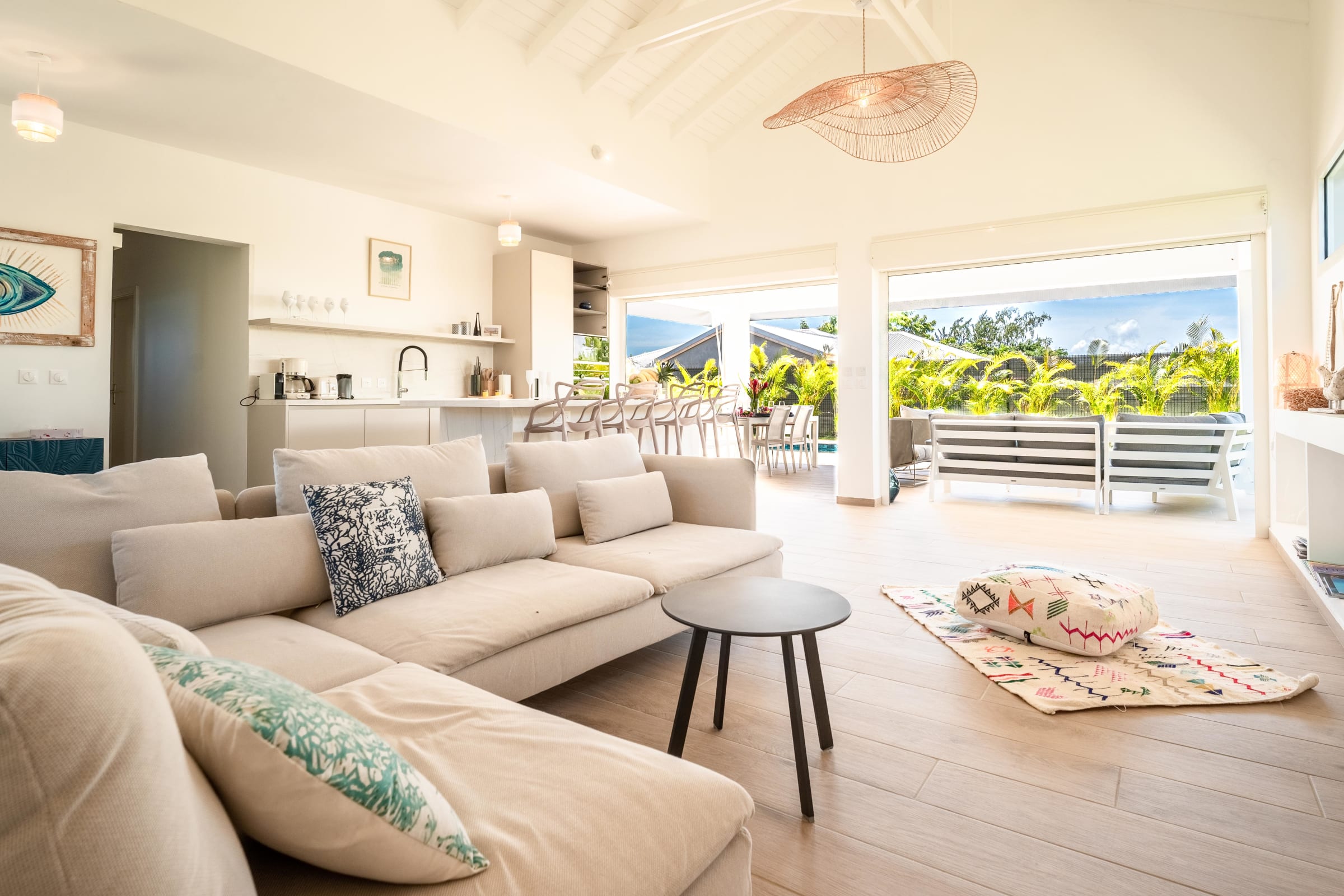 Discover Villa Soleone, an oasis of tranquility and comfort on the outskirts of Saint-François. Located in the heart of Guadeloupe, this 130 m² villa invites you to indulge the West Indian art of living, all just a few steps from the superb Raisins Clairs and Rouleaux beaches.
