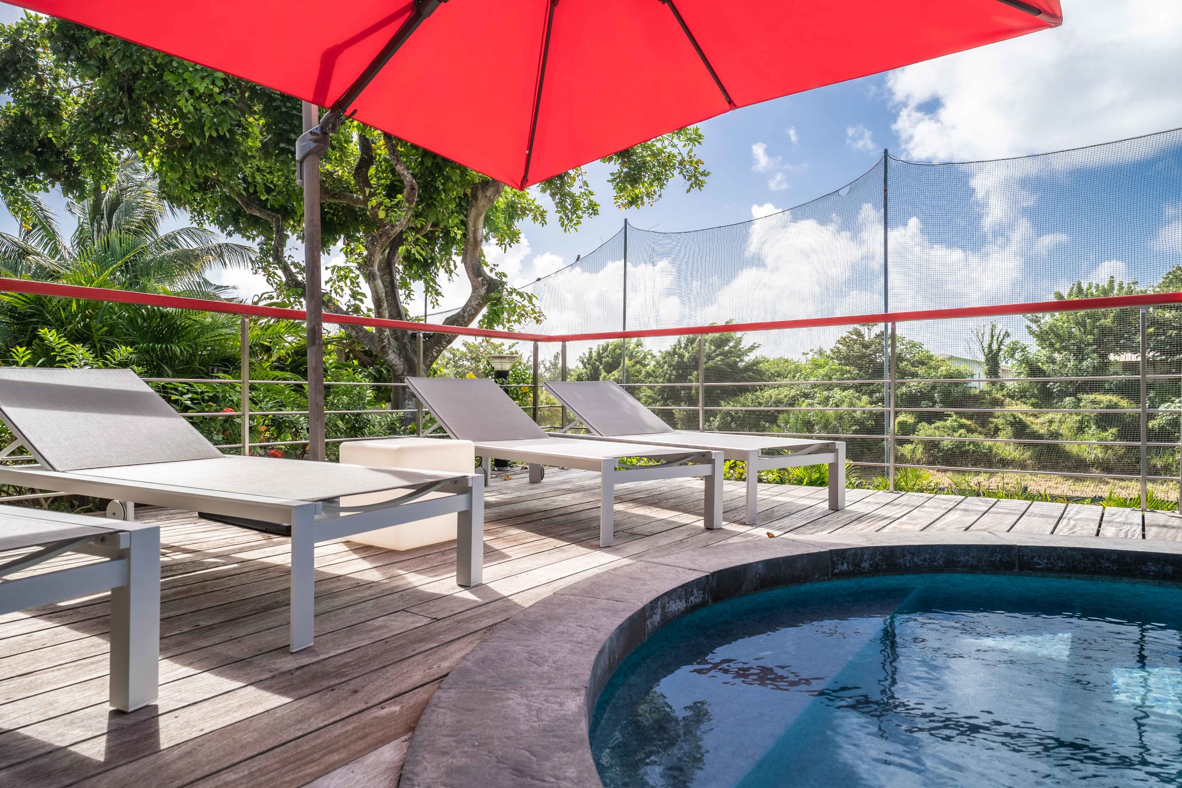 At 800m walking distance from Saint François located in the heart of the private luxury housing estate "Les Hauts de Saint-François", this upmarket creole villa with private swimming pool (10x5m), garden with trees (1200 m²), is an ideal accommodation to spend unforgettable vacations.
