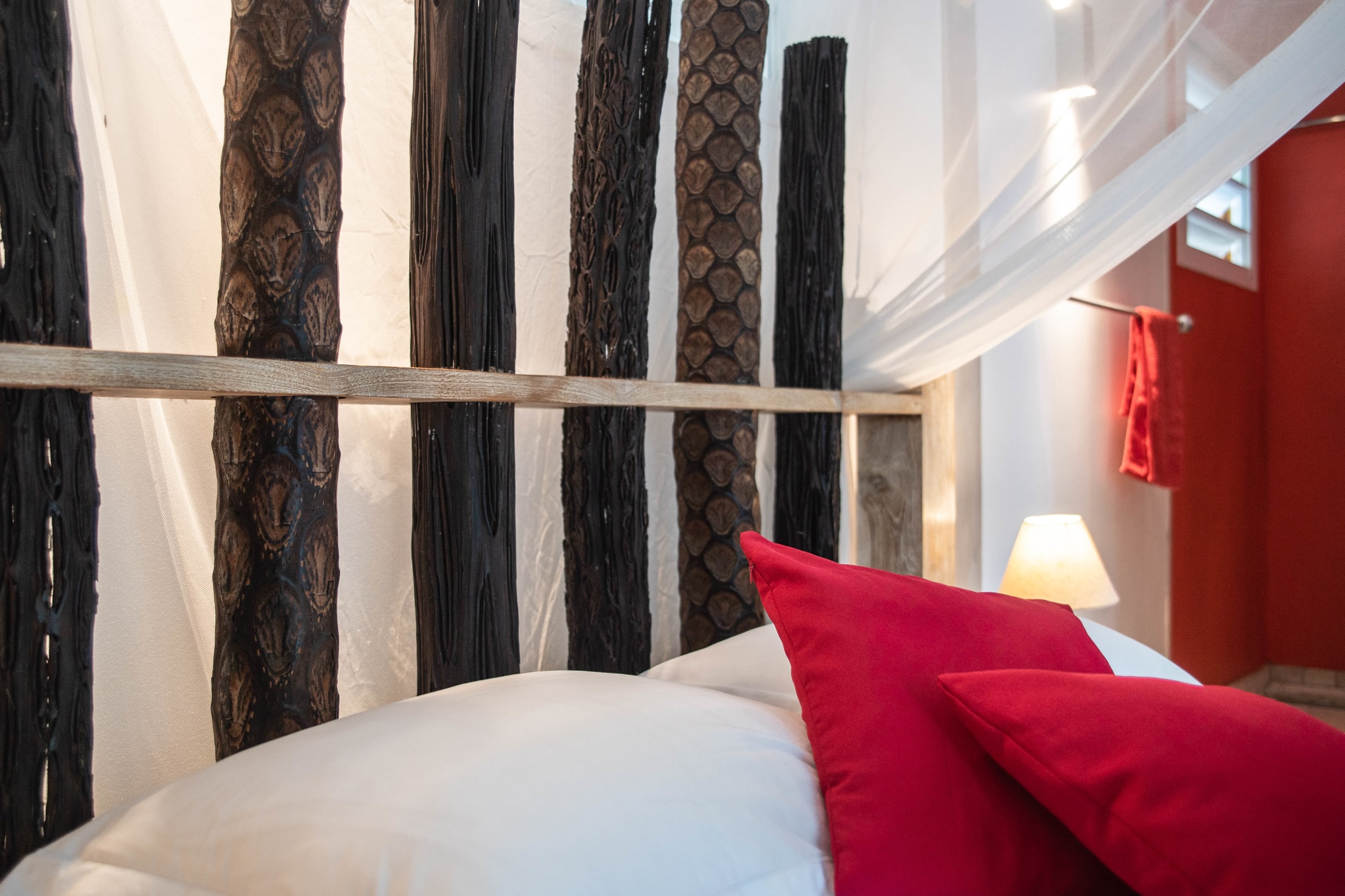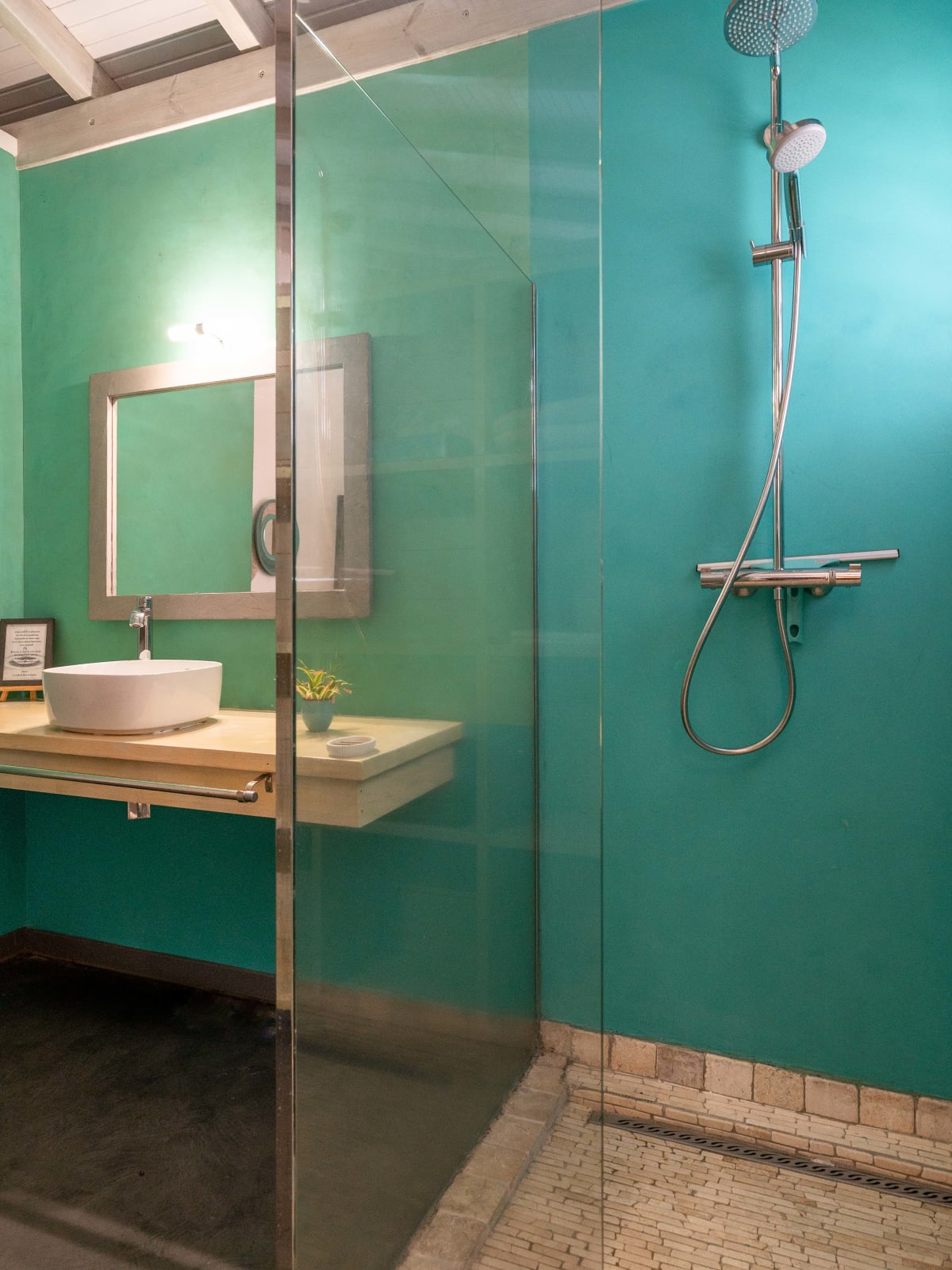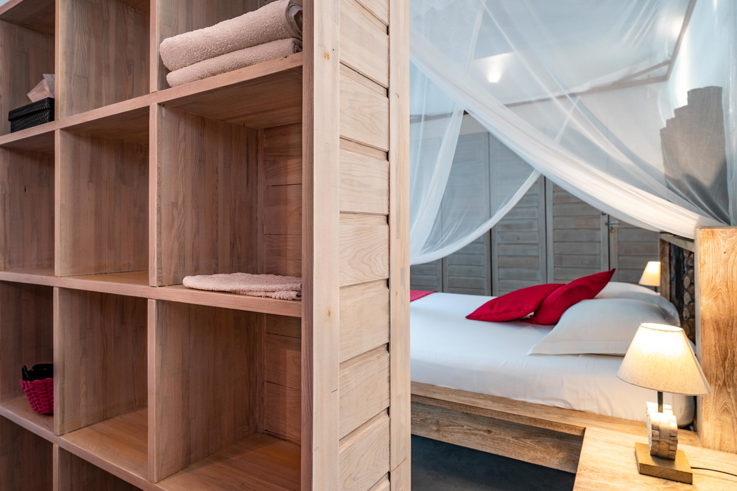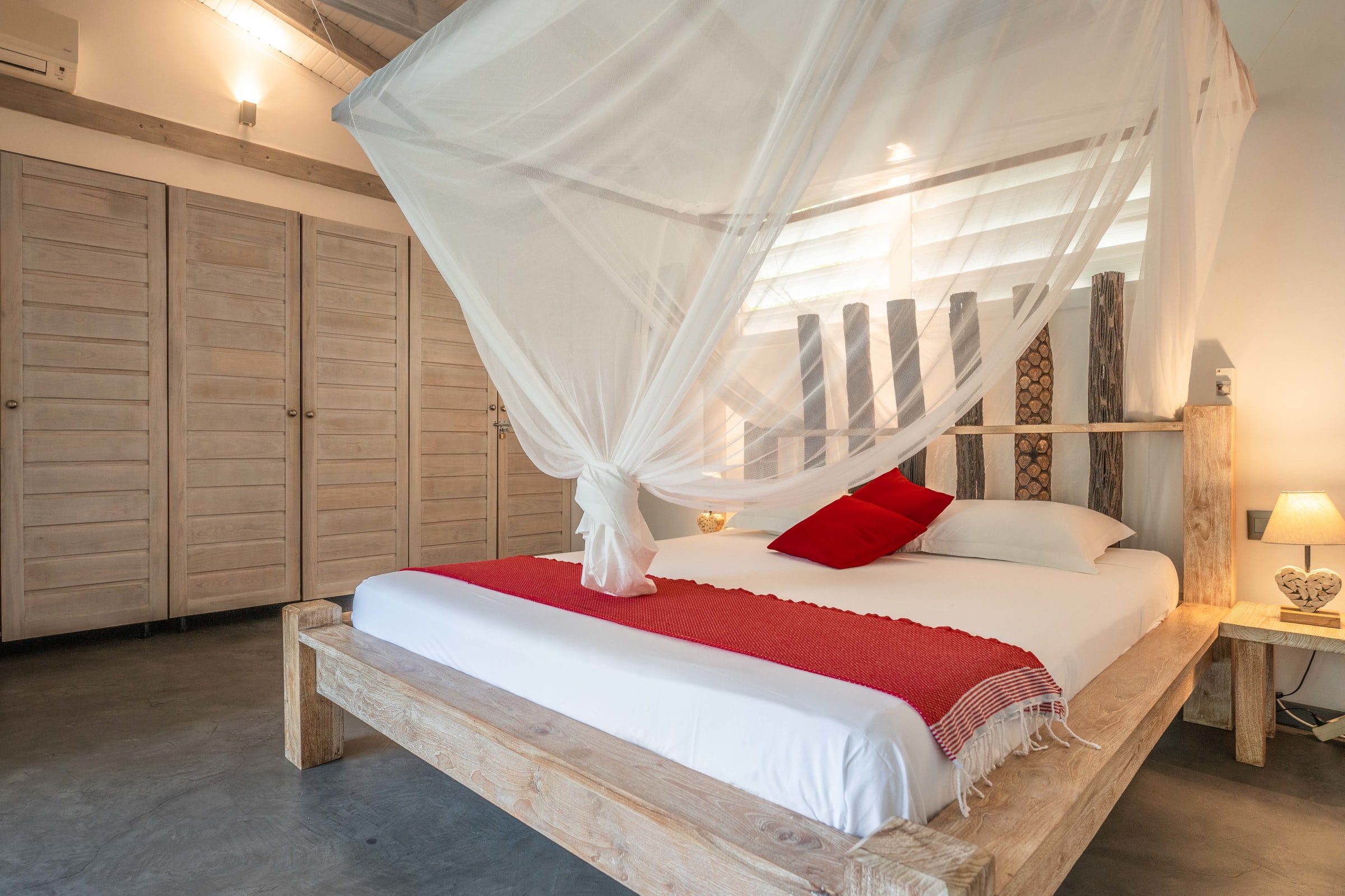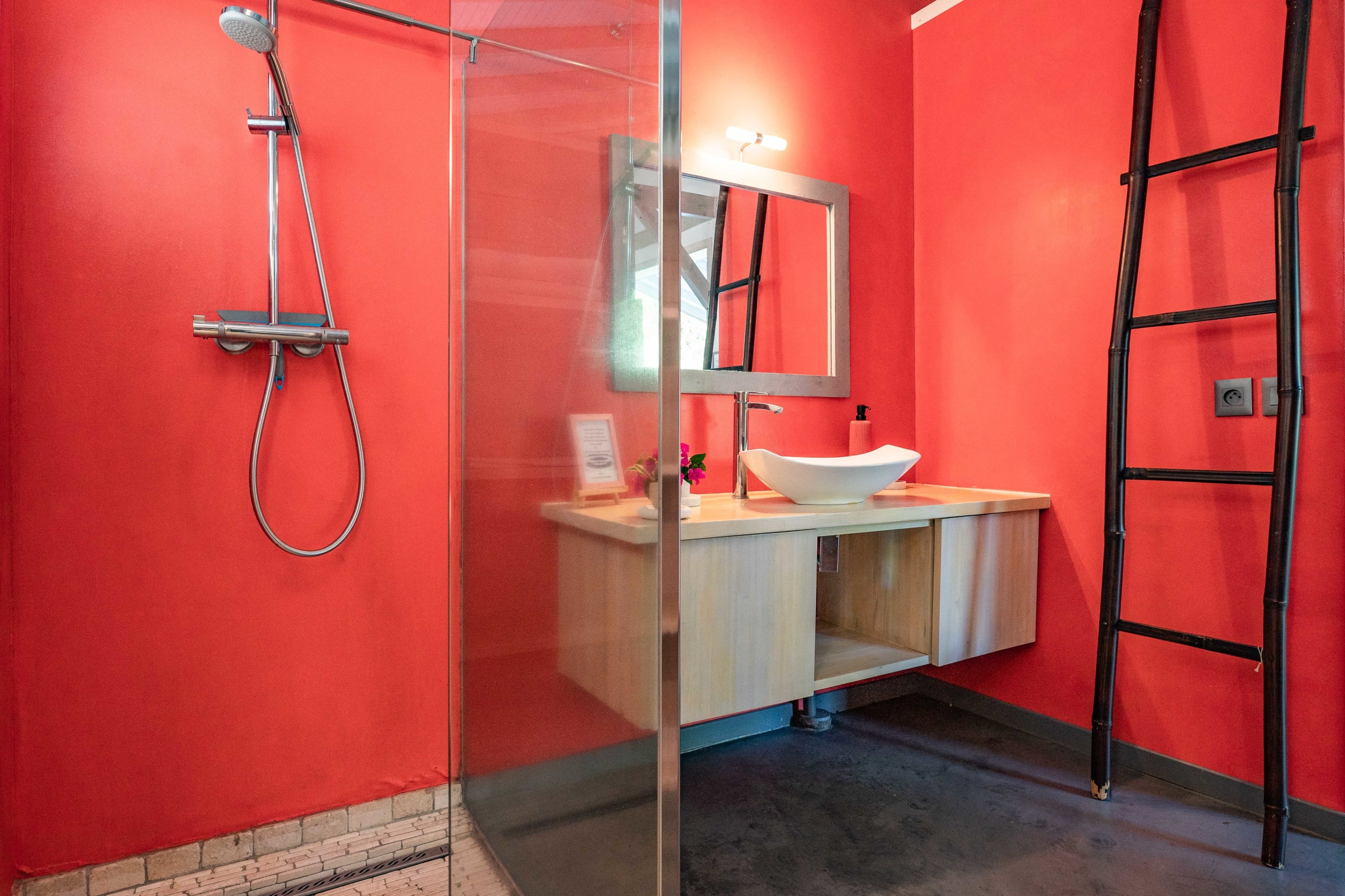 The villa Bouddha 1 is resolutely Creole with Balinese inspirations. Intimate, the living and sleeping areas are turned towards the beautiful covered and ventilated terrace and the pool. A perfectly equipped American kitchen with a large flat pass opening on the terrace, and a bar on the small audio visual living room. Two large air-conditioned bedrooms furnished with taste. Bed in 160 for one and Queen size for the other. They have both, their beautiful Italian shower room, with private toilets,