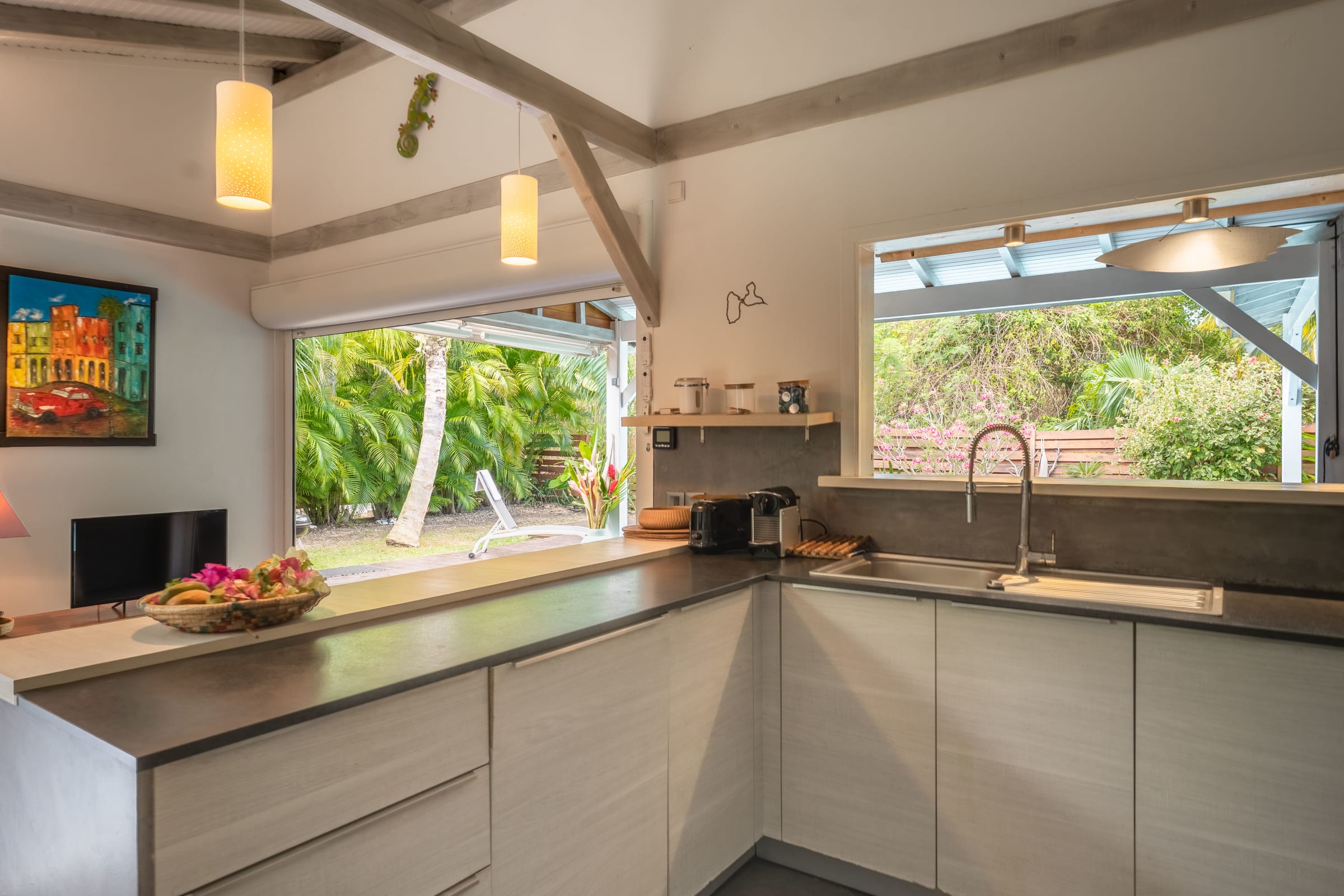 The villa is about 10 minutes drive from one of the most visited sites of Guadeloupe: Pointe-des-Châteaux facing the island of Désirade.