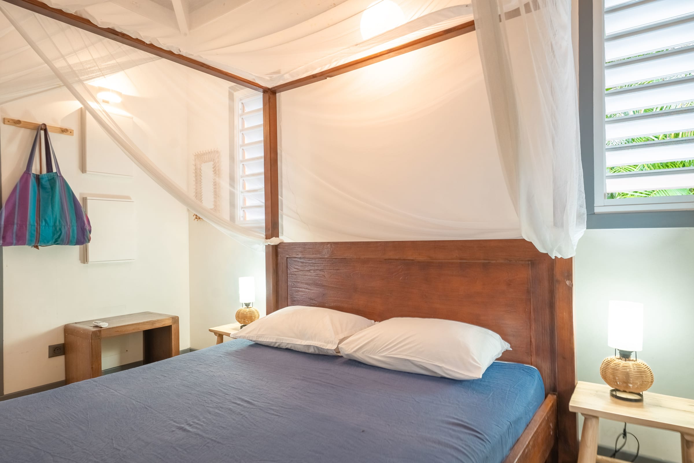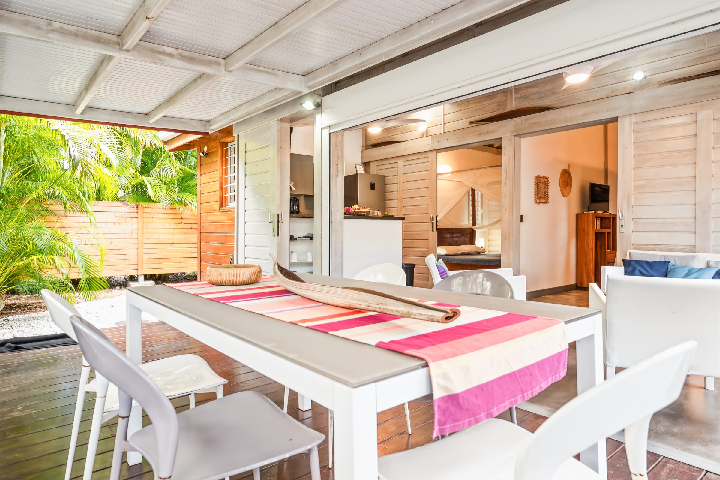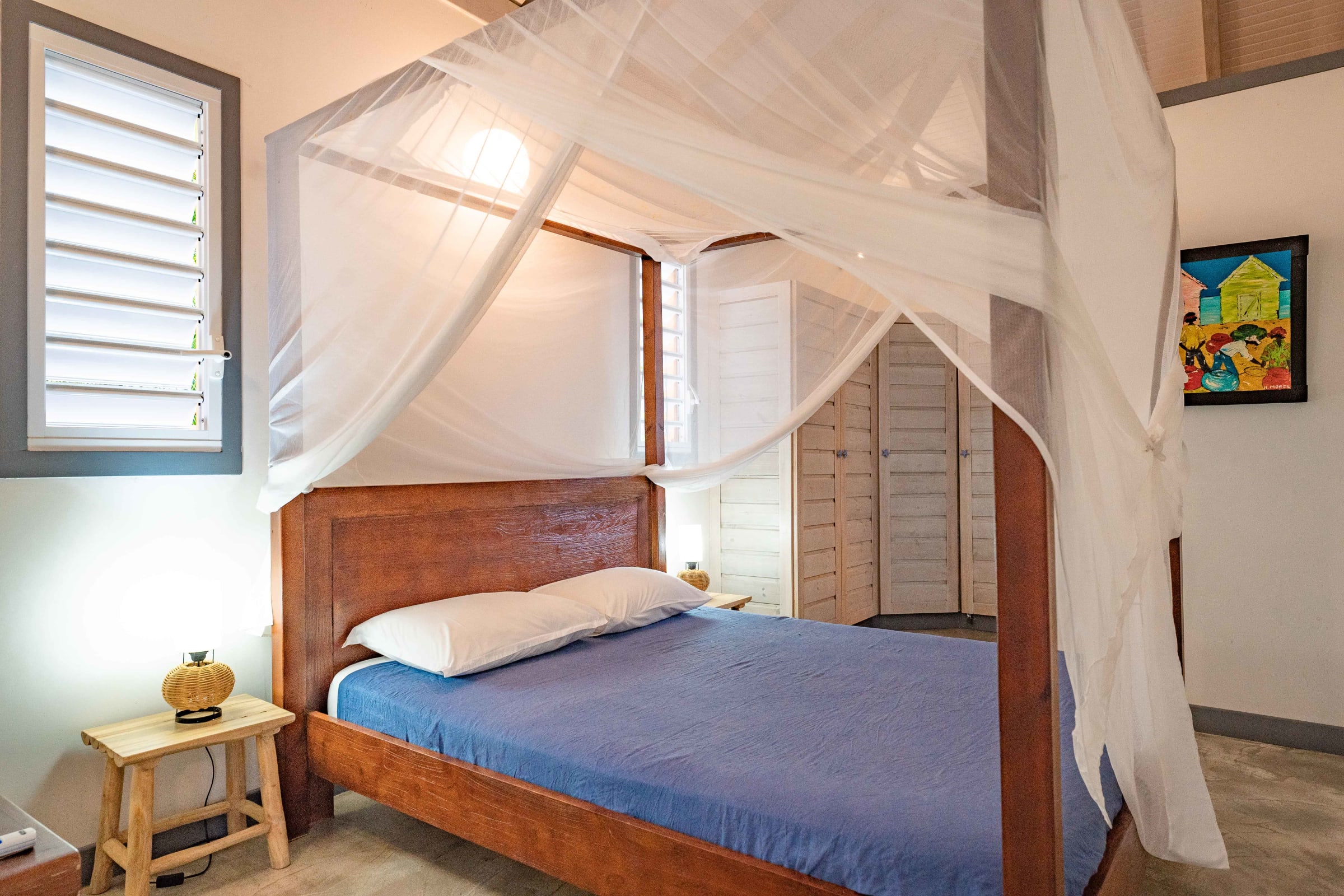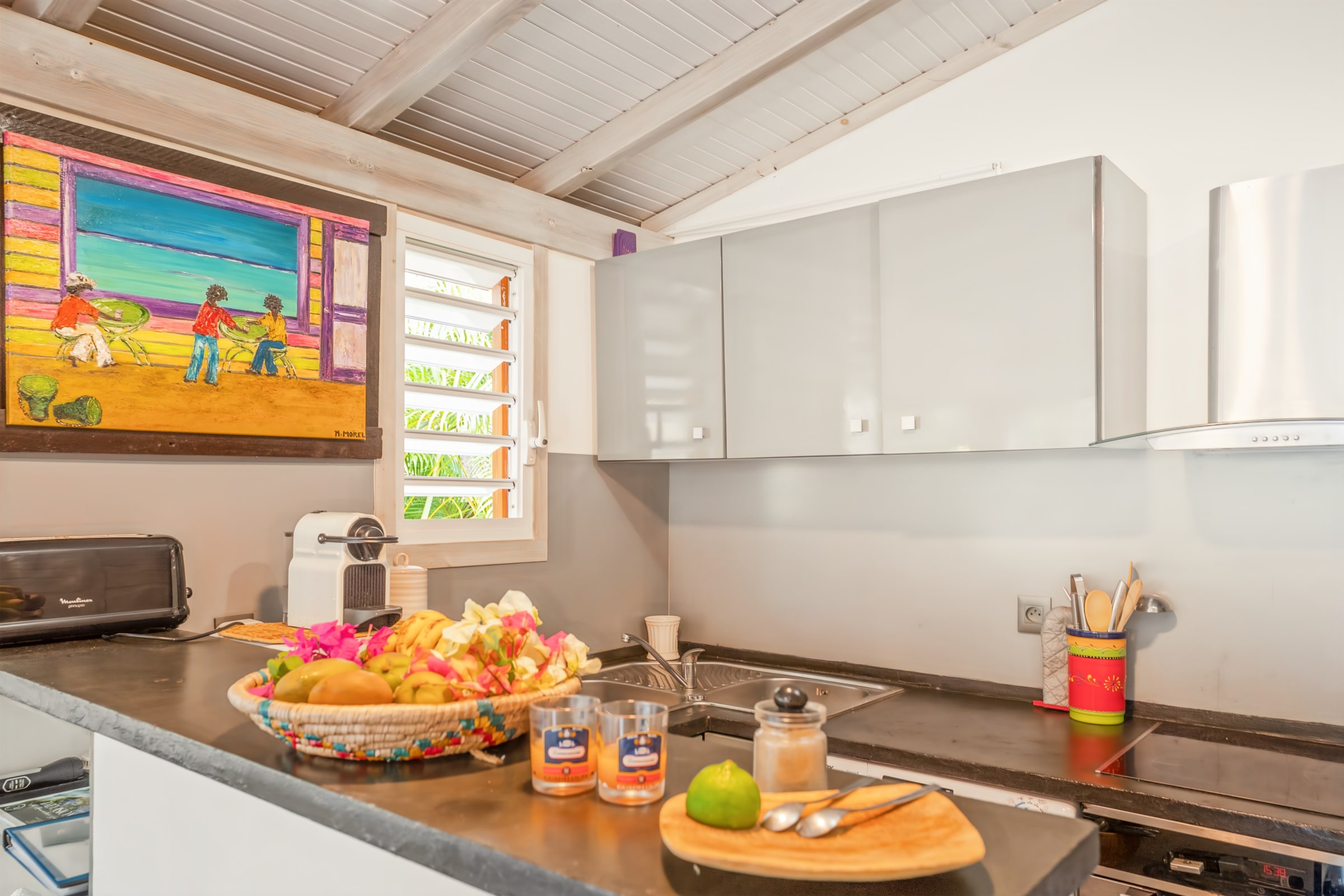 The villa Bouddha 2 a real cocoon, nestled in the heart of a tropical garden. You will bask in the jacuzzi without opposite under the stars of the Caribbean. Spacious terrace partially covered with dining area and relaxation area. American kitchen with a friendly bar open to the living room audio visual. The two beautiful air-conditioned bedrooms are furnished with taste (quality bedding in 160 and 140) and share a pleasant bathroom.