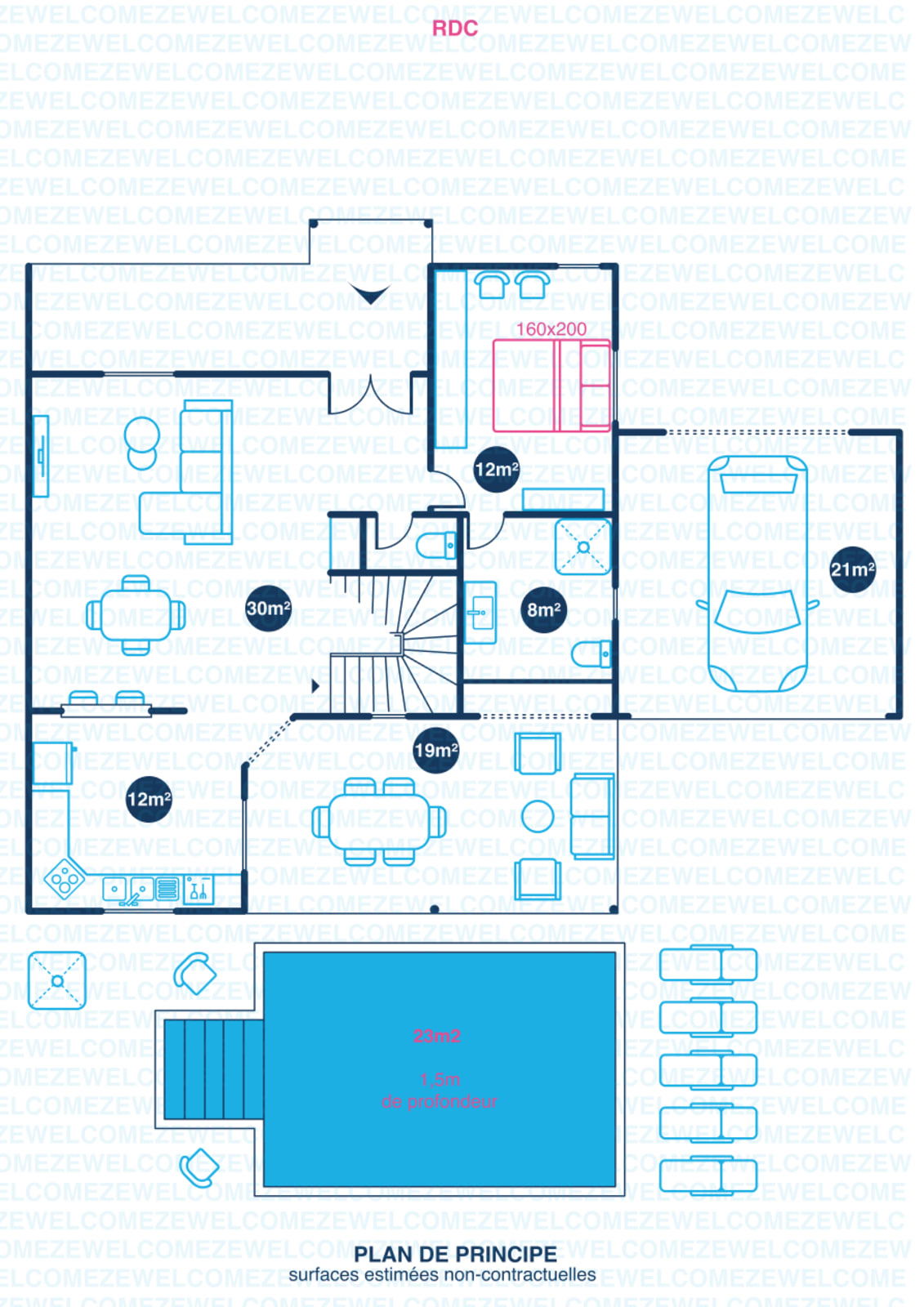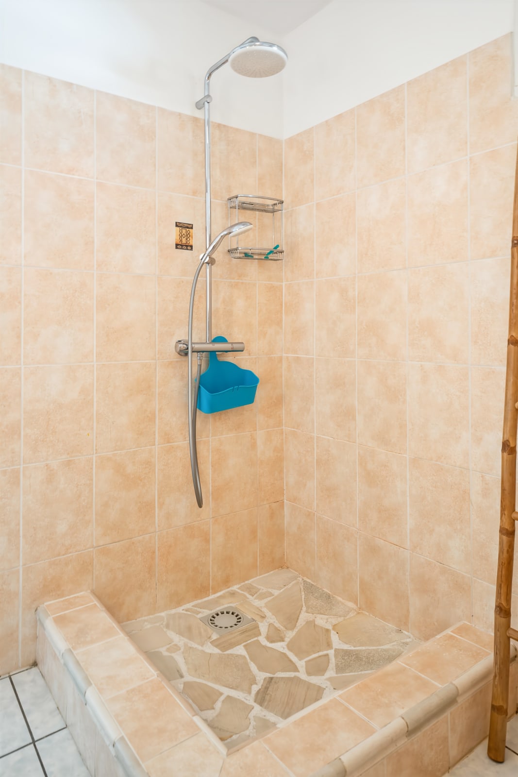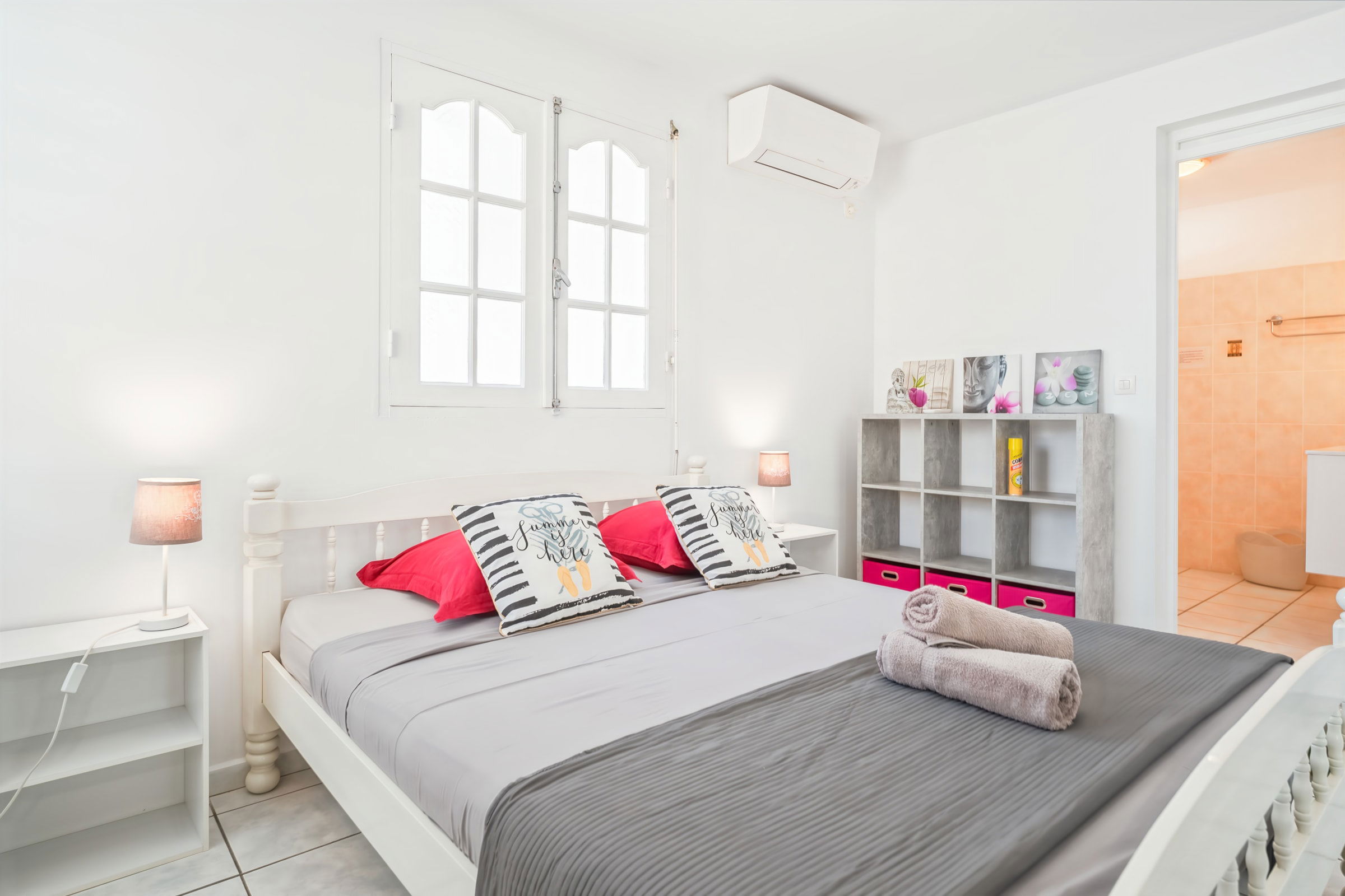 The house in detail: 3 air-conditioned bedrooms with 160 cm beds, including: 1 master suite on the ground floor with en suite shower room, 2 bedrooms upstairs and 1 additional shower room upstairs.