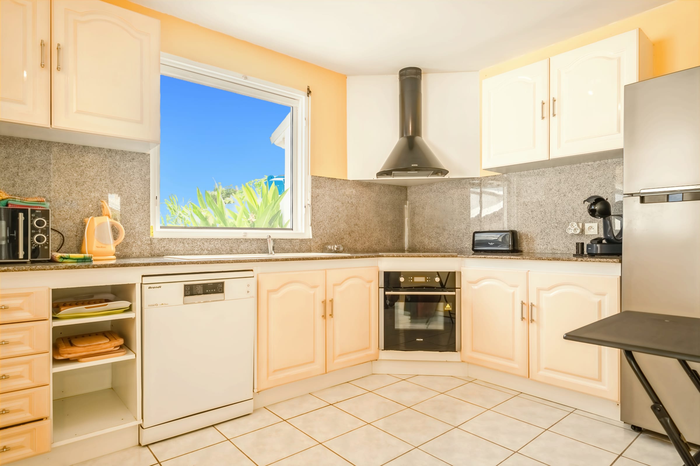 The fully-equipped kitchen (oven, dishwasher, microwave, Dolce Gusto filter and capsule coffee maker, etc.) opens onto the living room and the outdoors.
