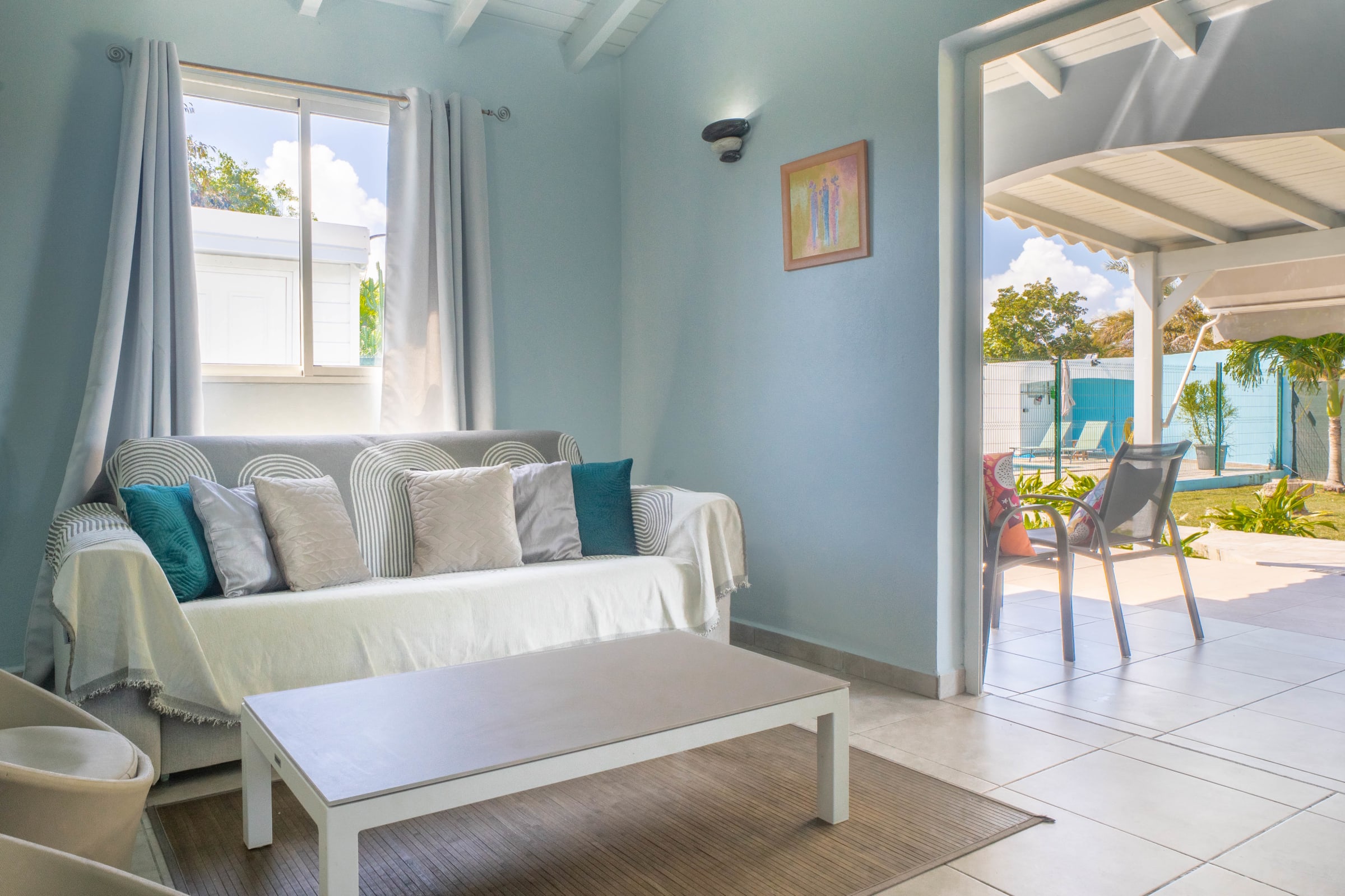 The villa is located in the town of Saint-François, on the island of Grande-Terre, 45 minutes from Pointe-à-Pitre airport. In just 3 minutes, you can reach the lively town of Saint-François, where you will find all the amenities you need: supermarkets, bakeries, pharmacies, and local markets for your shopping and souvenir purchases. The marina invites you to stroll around its many shops and varied restaurants.